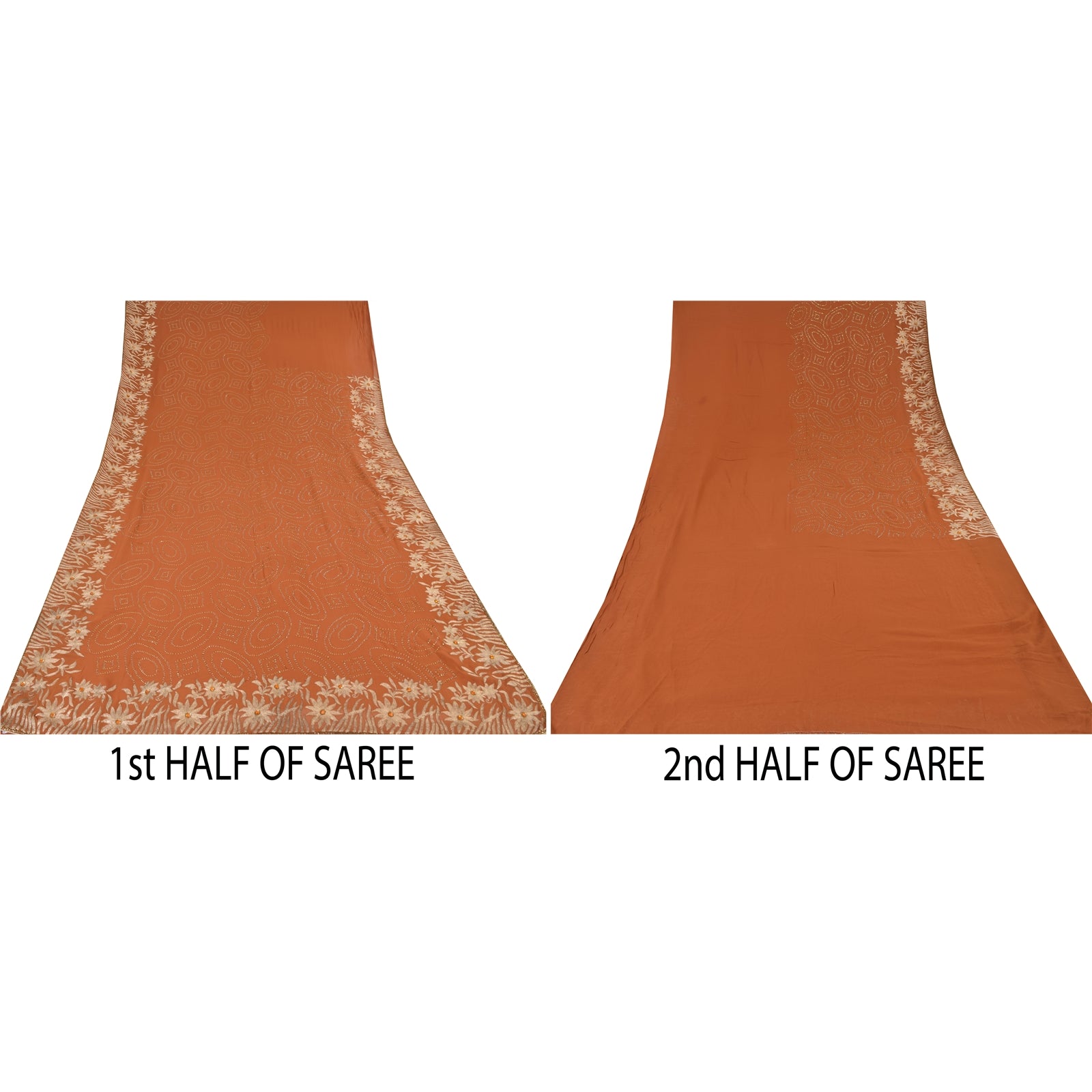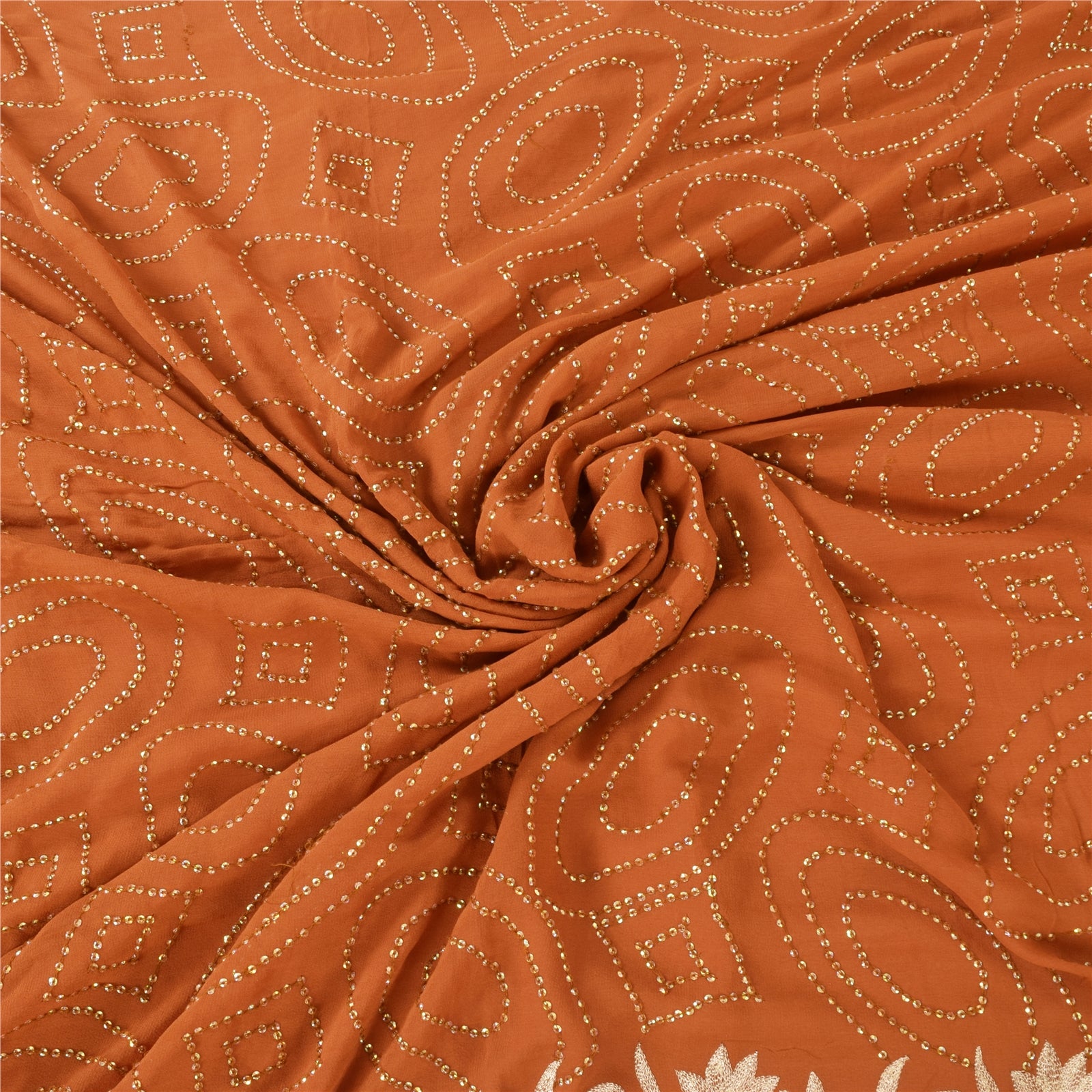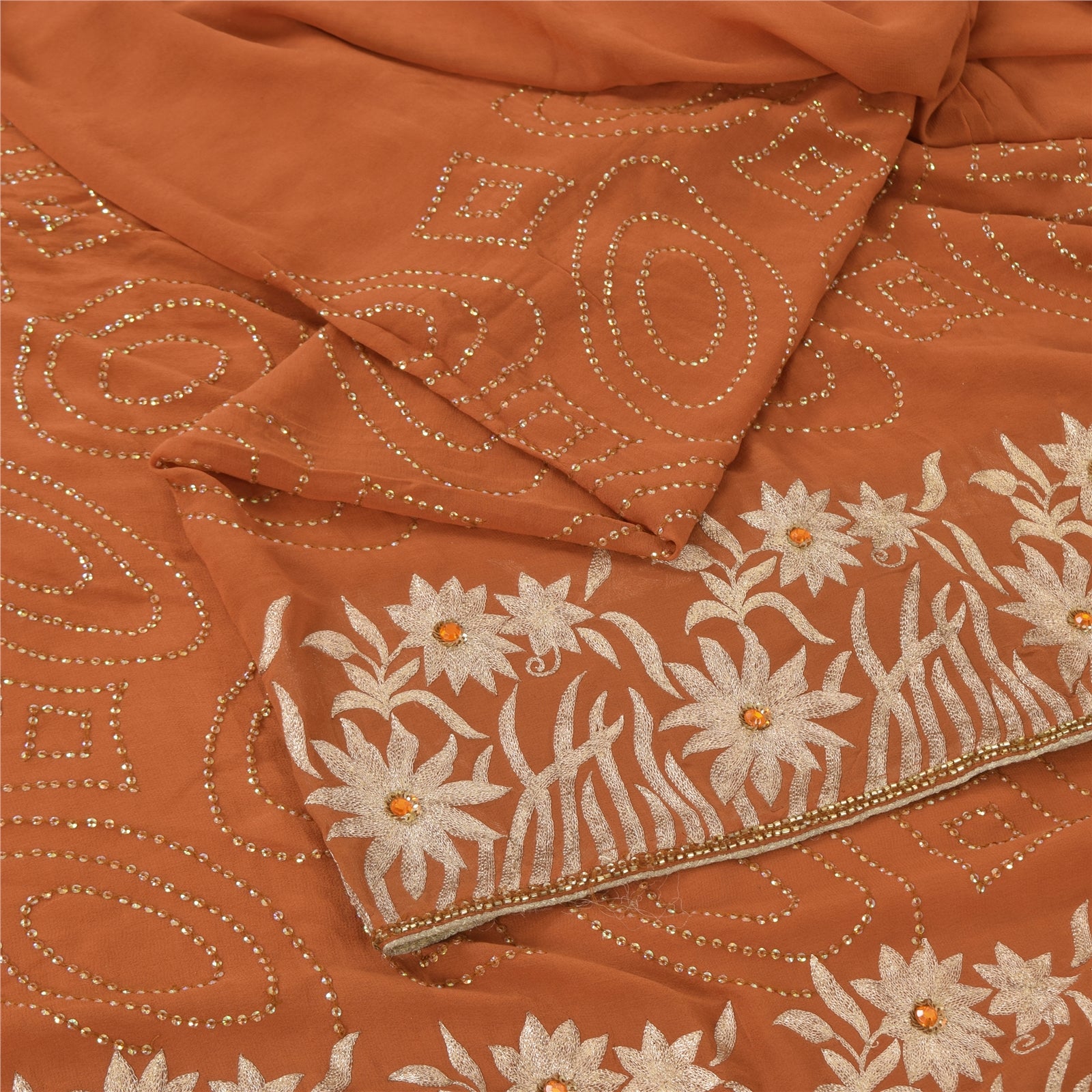 Sanskriti Vintage Rust Sarees Pure Georgette Hand Beaded Premium Sari 5yd Sustainable Fabric