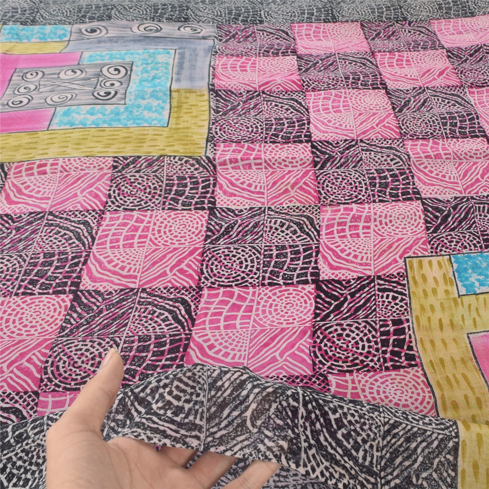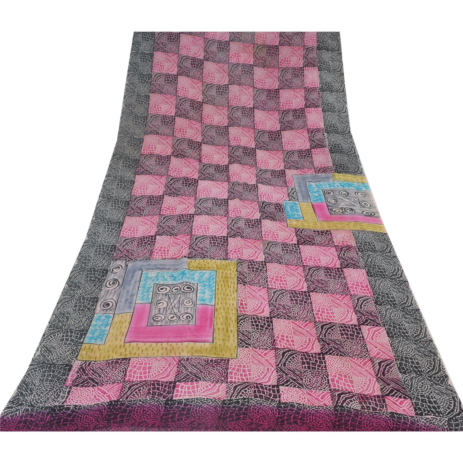 Sanskriti Vintage Saree Black & Pink Pure Georgette Print Sari 5+YD Craft Fabric
