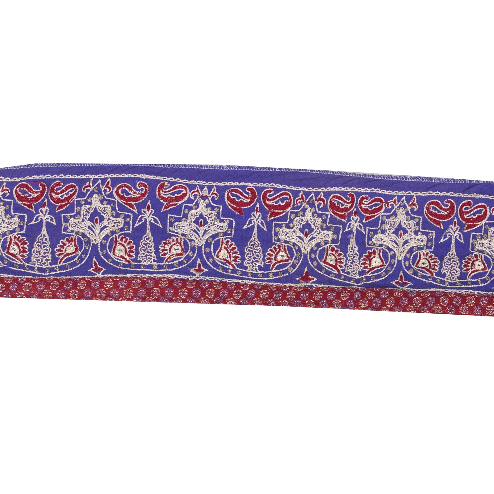 Beautiful pure crepe silk hand embroidered sari border. Further embellished by red/cream thread work, gold zari work. Also, you can see gold dori work along with floral & paisley design on blue base fabric. 1 quantity = 1 yard. International buyers please note: Import duties, taxes, and charges are not included in the item price or postage cost. These charges are the buyer's responsibility. Please check with your country's customs office to determine what these additional costs will be prior to bidding or buying. Buyer will pay custom duty/tax. It is calculated and charged differently by every country. As a seller I do not have any control over it.VAT or sales tax is calculated by the platform at the time of checkout. Customs charge is payable at the time of delivery. B-9854