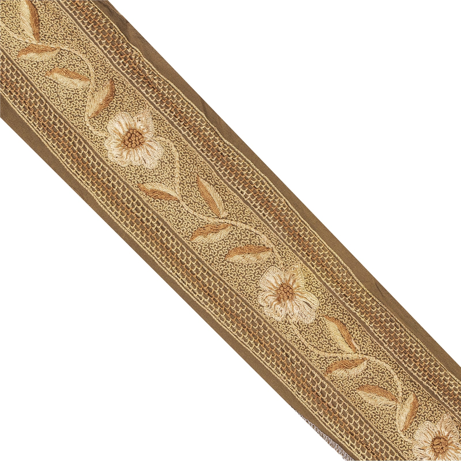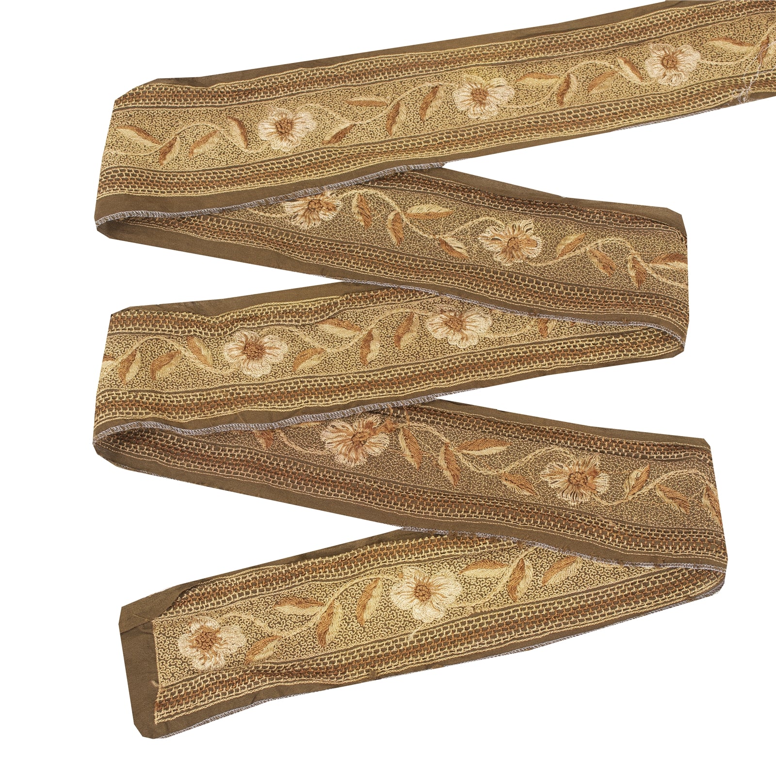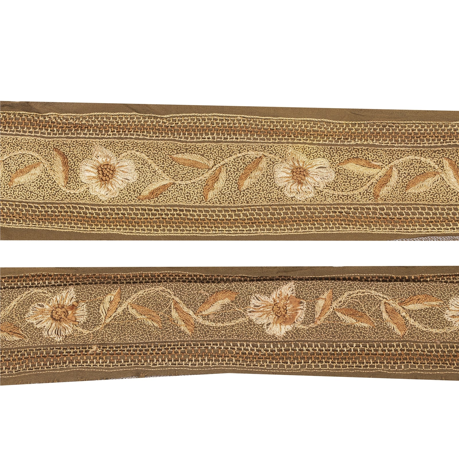 Sanskriti Vintage Saree Border Indian Trim Hand Embroidered 1Yd Craft Brown Lace