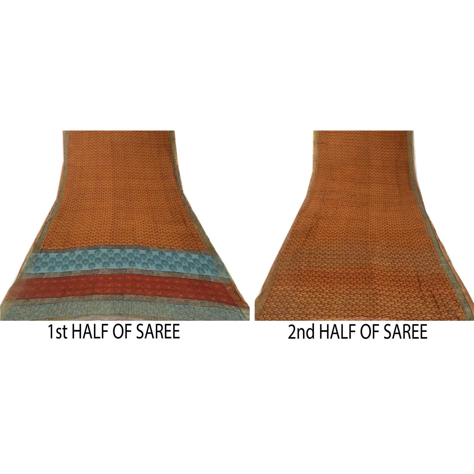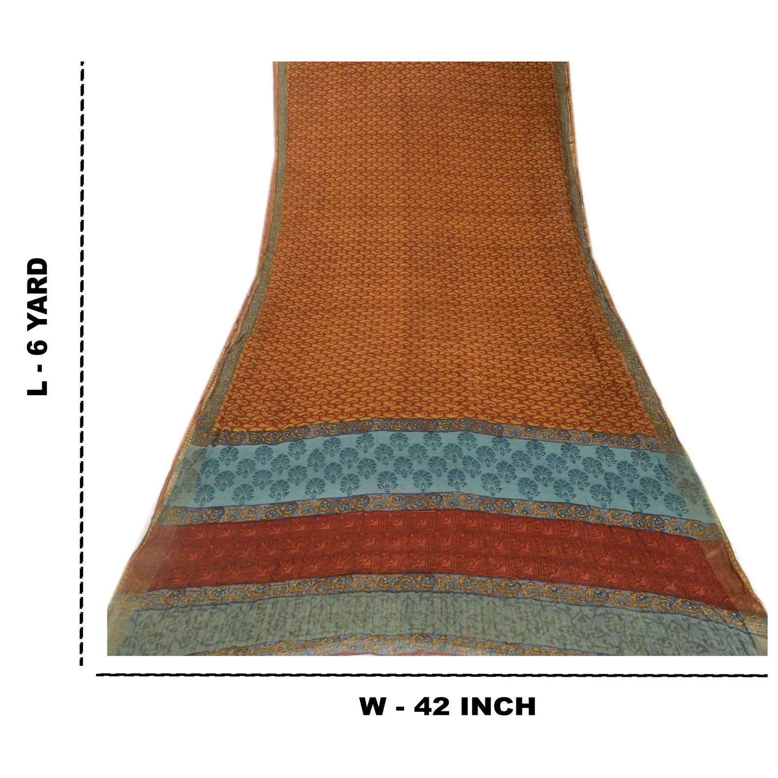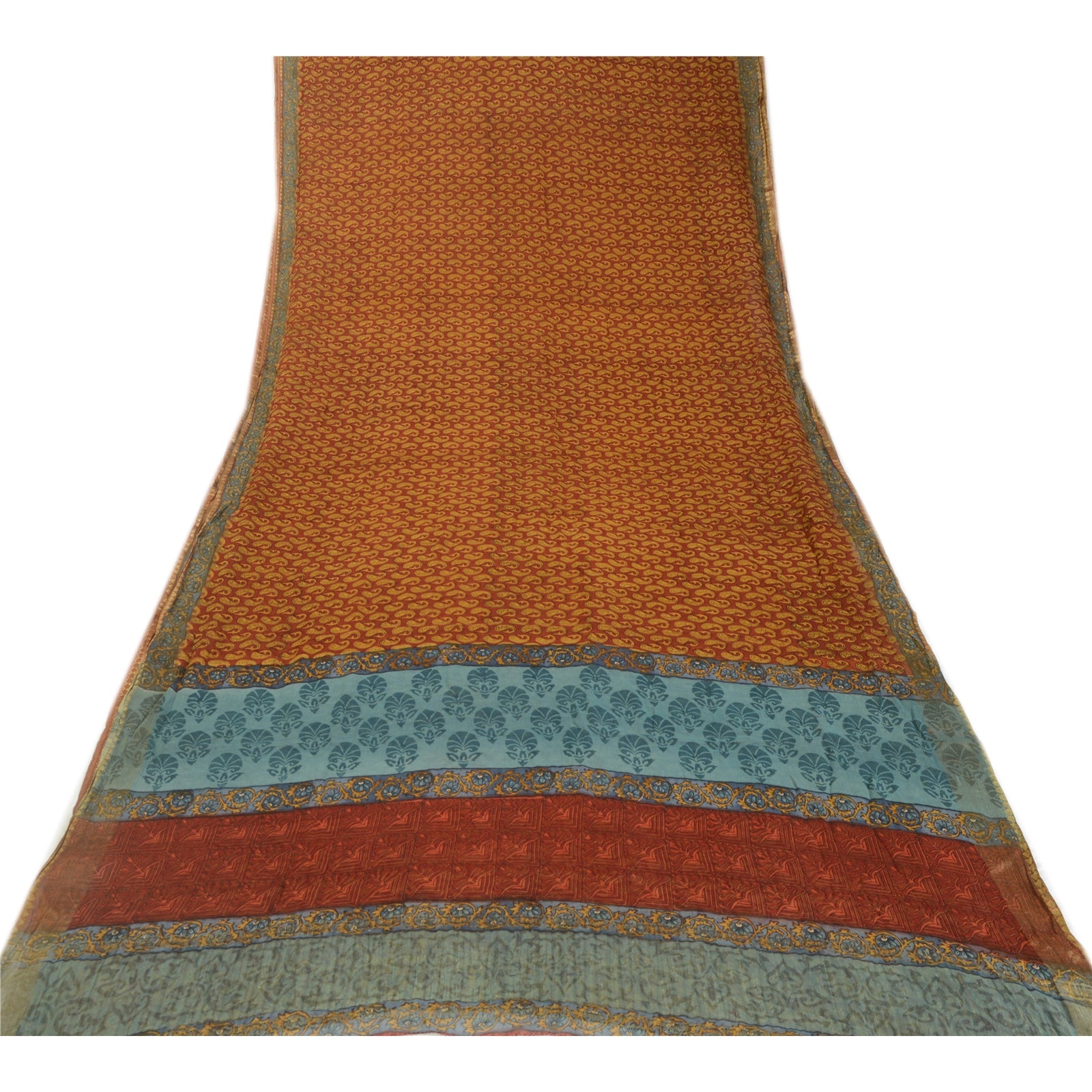 Sanskriti Vintage Saree Dark Red Pure Chiffon Silk Printed Sari Craft Fabric
