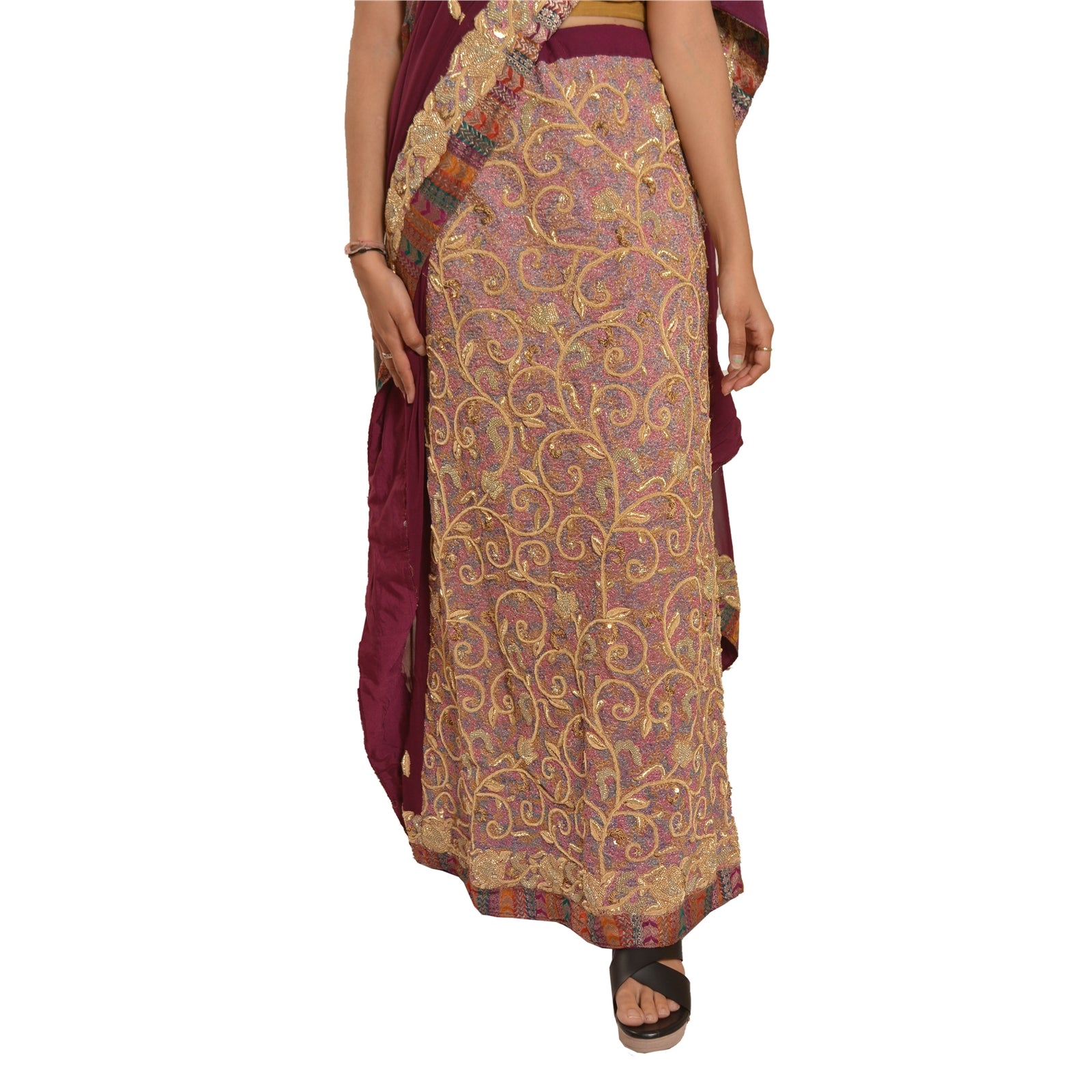 Sanskriti Vintage Saree Pure Georgette Silk Pre Stitched Lehenga Party 5+YARD Sari