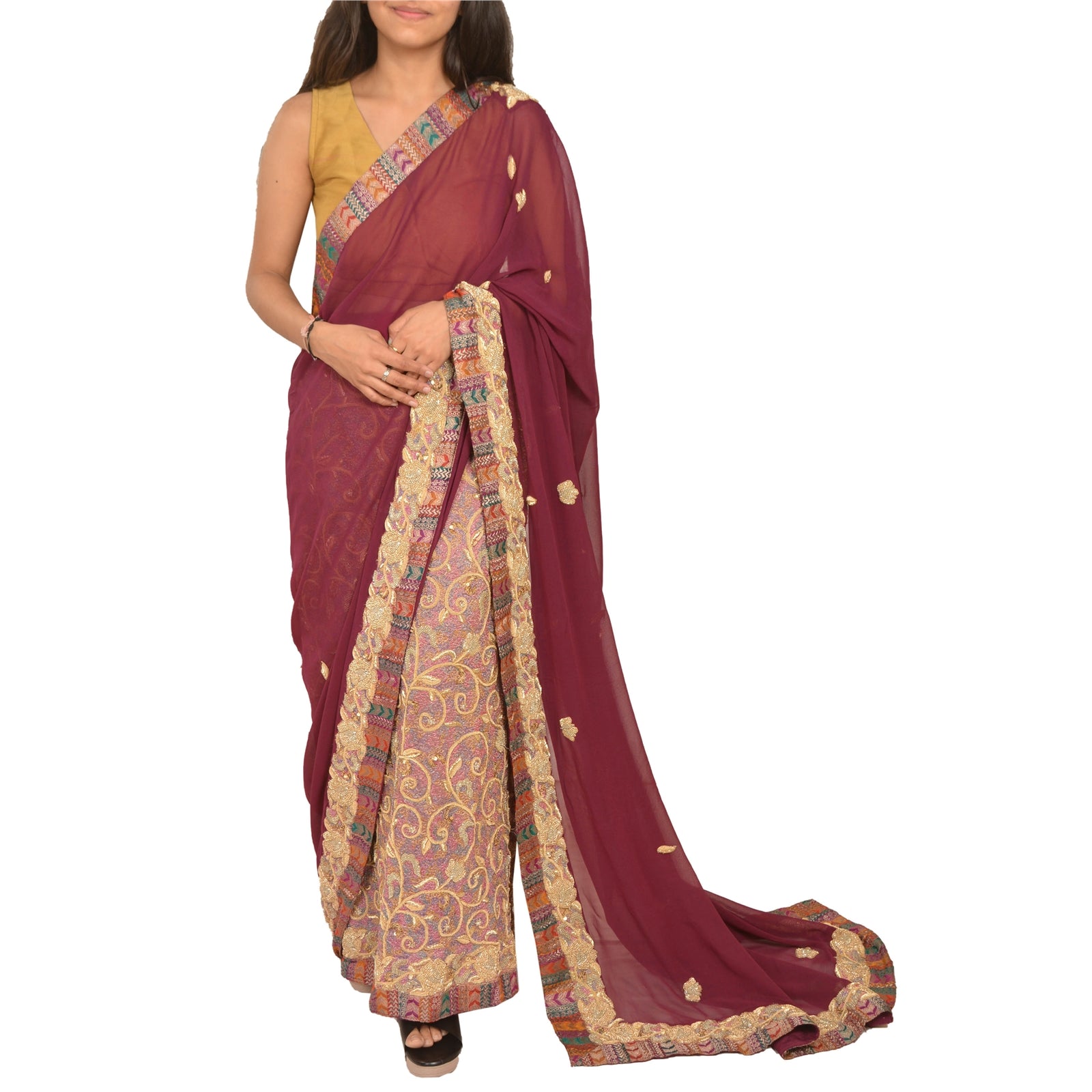 'THE ITEM COLOR OR SHADE MAY BE DARKER OR LIGHTER THAN THE PICTURE.' What a stunning lehenga saree in pure georgette silk Sustainable Fabric. Full hand beaded design with multi color Sustainable Fabric patch work on border design is truly making it a unique saree. Base Sustainable Fabric in purple & pink embellished with amazing silver & golden zardozi and dori work is done which is making the whole look very special. Thread work which is giving different shades of color is very attractive and eye catching. Sparkling gold/silver sequins and white rhinestone work is looking great. Overall if you talk about the color, beauty embroidery work - its all in one a masterpiece. As the item is Vintage, some minor stains and defects are expected. This is a readymade lehenga saree which anyone can wear very easily. Just wear it like a skirt as the dupatta/pallu is attached to the skirt and pleats are pre stitched. After wearing the skirt just adjust the dupatta/pallu as per your style. 'International buyers please note: Import duties, taxes, and charges are not included in the item price or postage cost. These charges are the buyer's responsibility. Please check with your country's customs office to determine what these additional costs will be prior to bidding or buying. Buyer will pay custom duty/tax. It is calculated and charged differently by every country. As a seller I do not have any control over it. VAT or sales tax is calculated by the platform at the time of checkout. Customs charge is payable at the time of delivery.