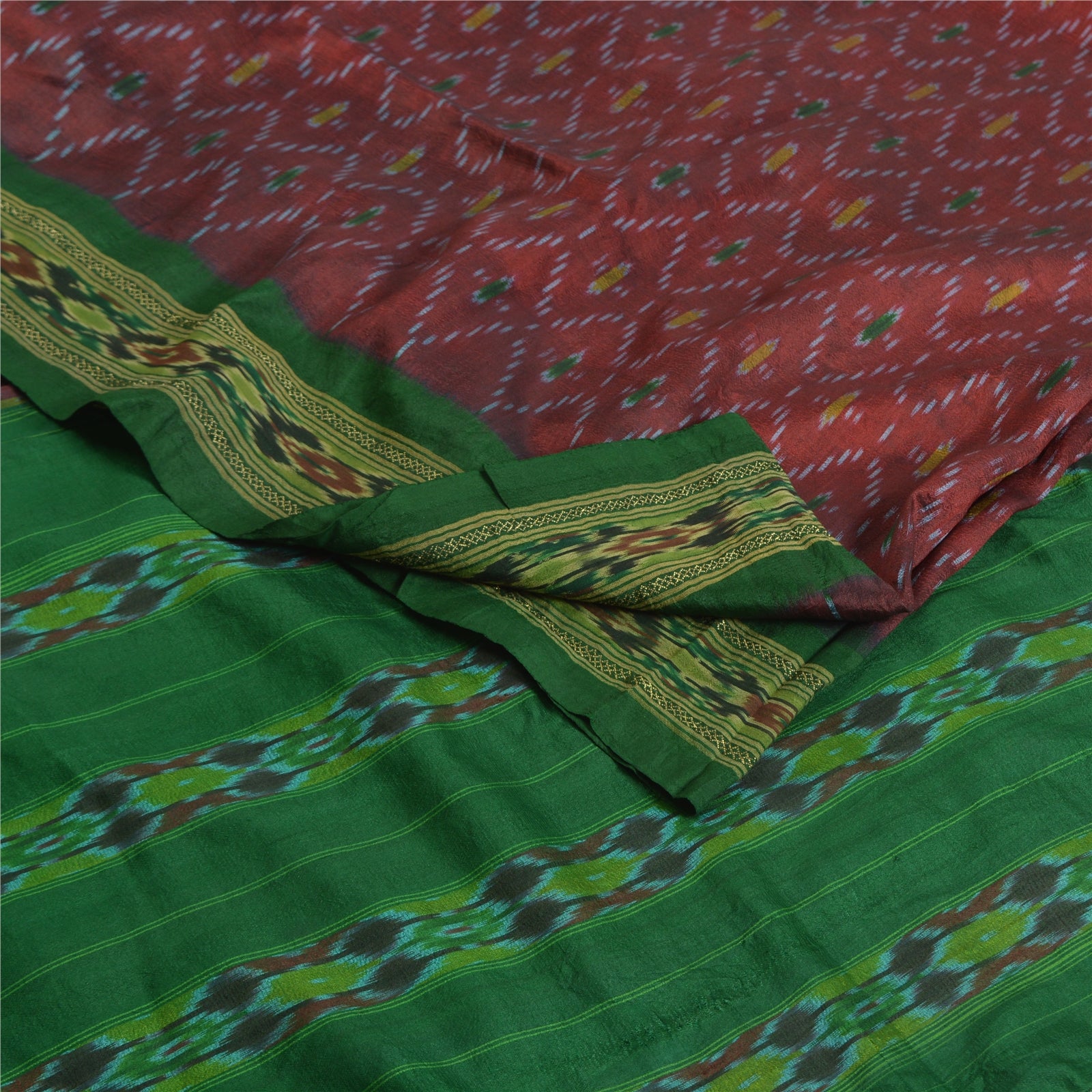 Sanskriti Vintage Saree Red Sambhalpuri Hand Woven Ikat Pure Silk Sari Fabric