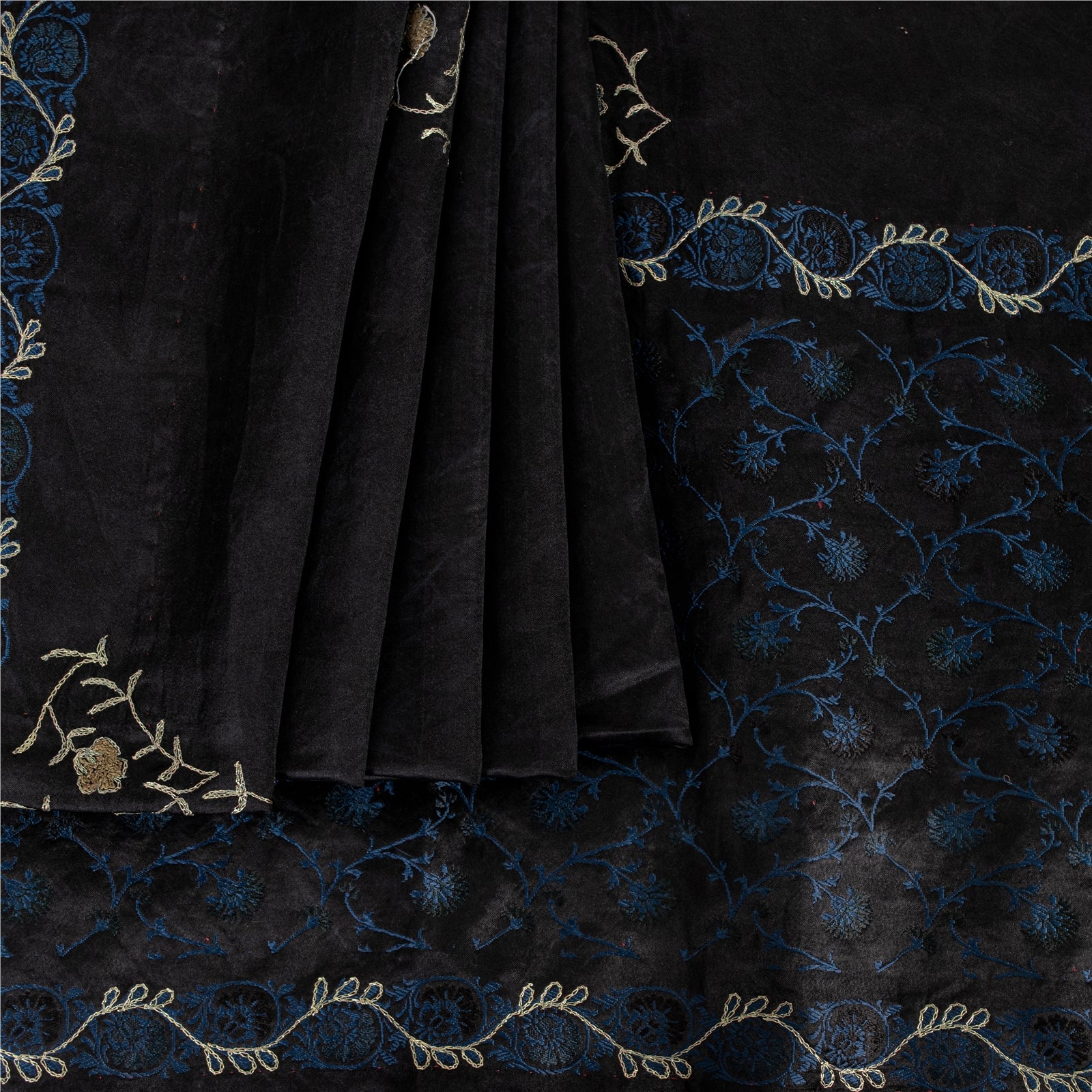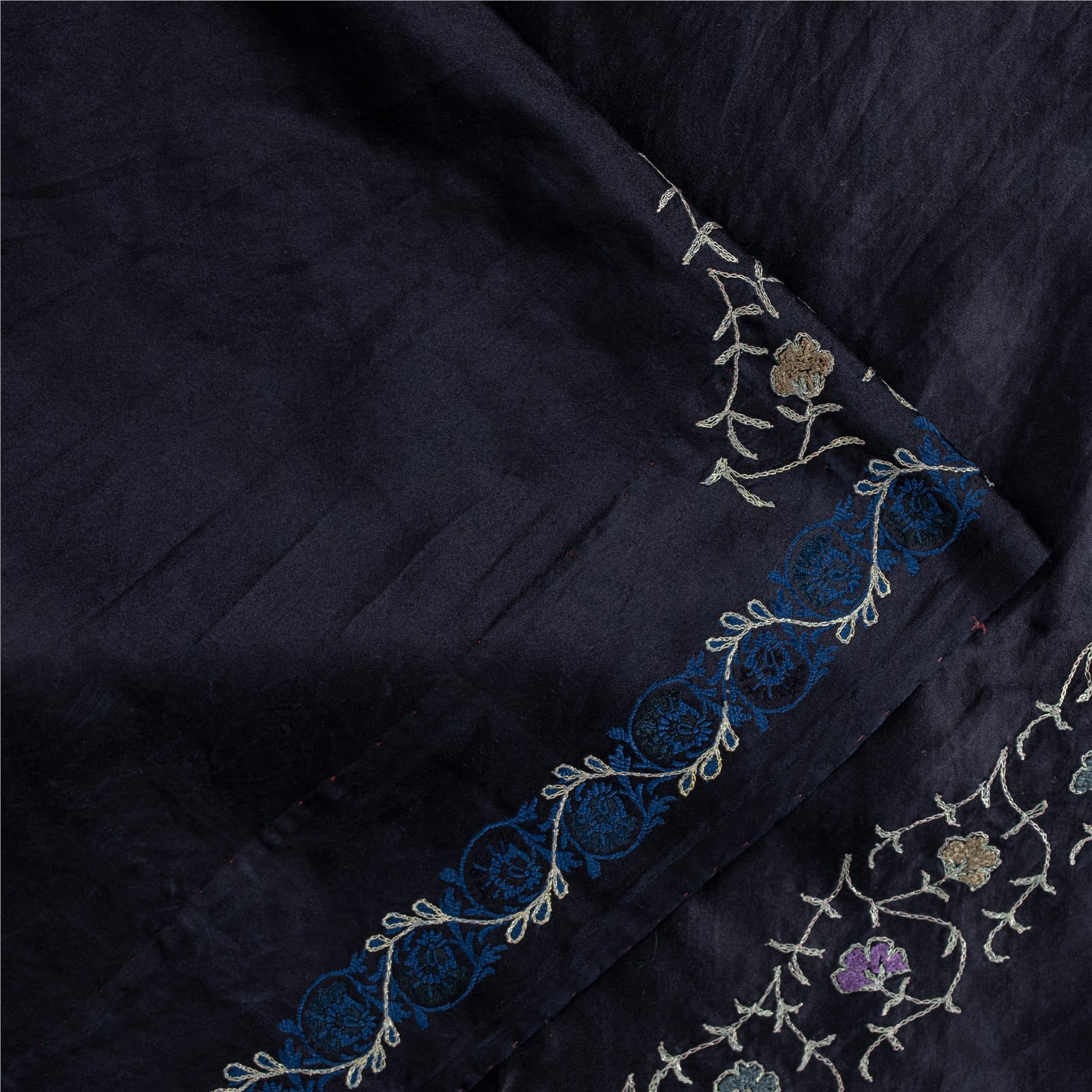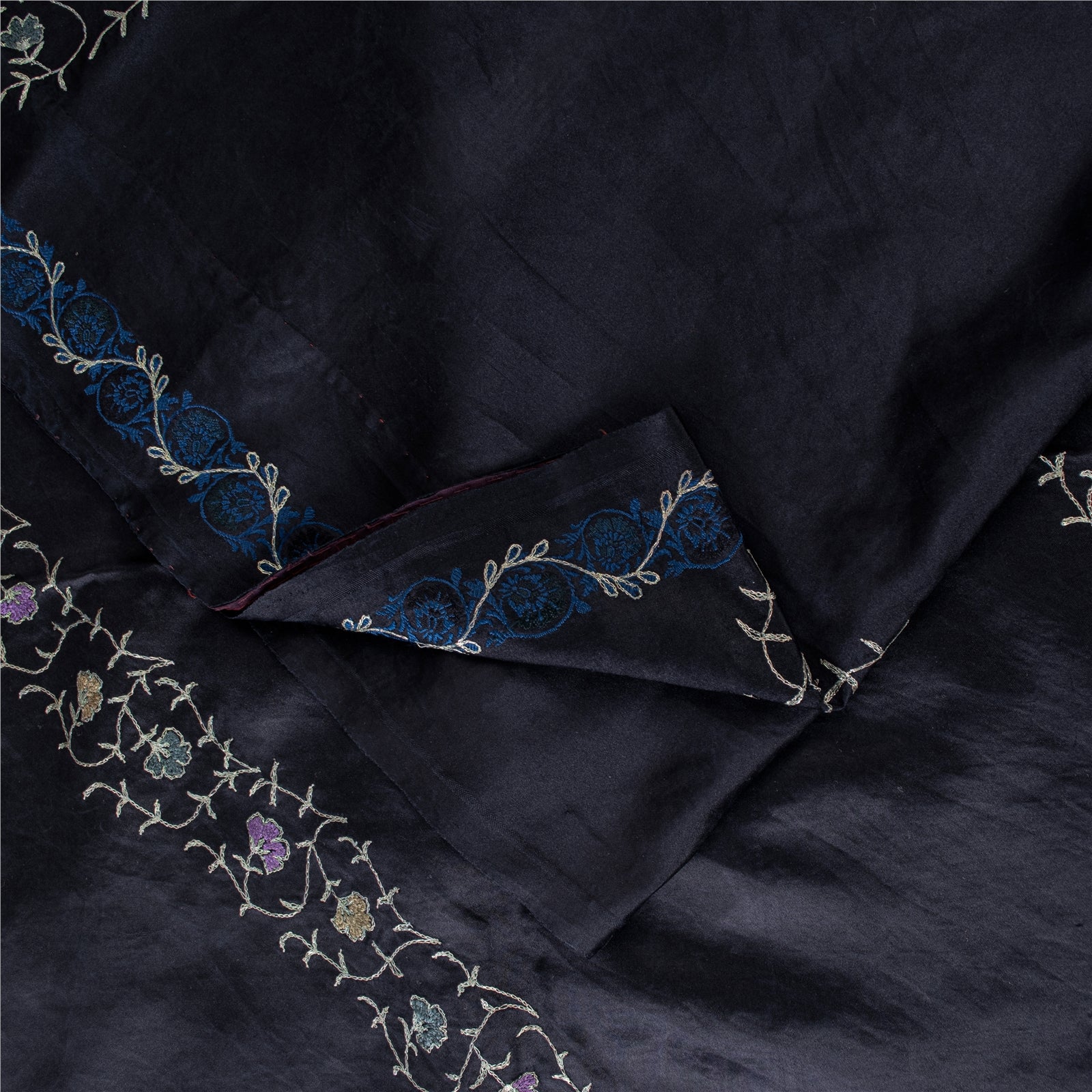 Sanskriti Vintage Sarees Black Embroidered Thread Pure Satin 5+yd Craft Fabric Banarasi Sari
