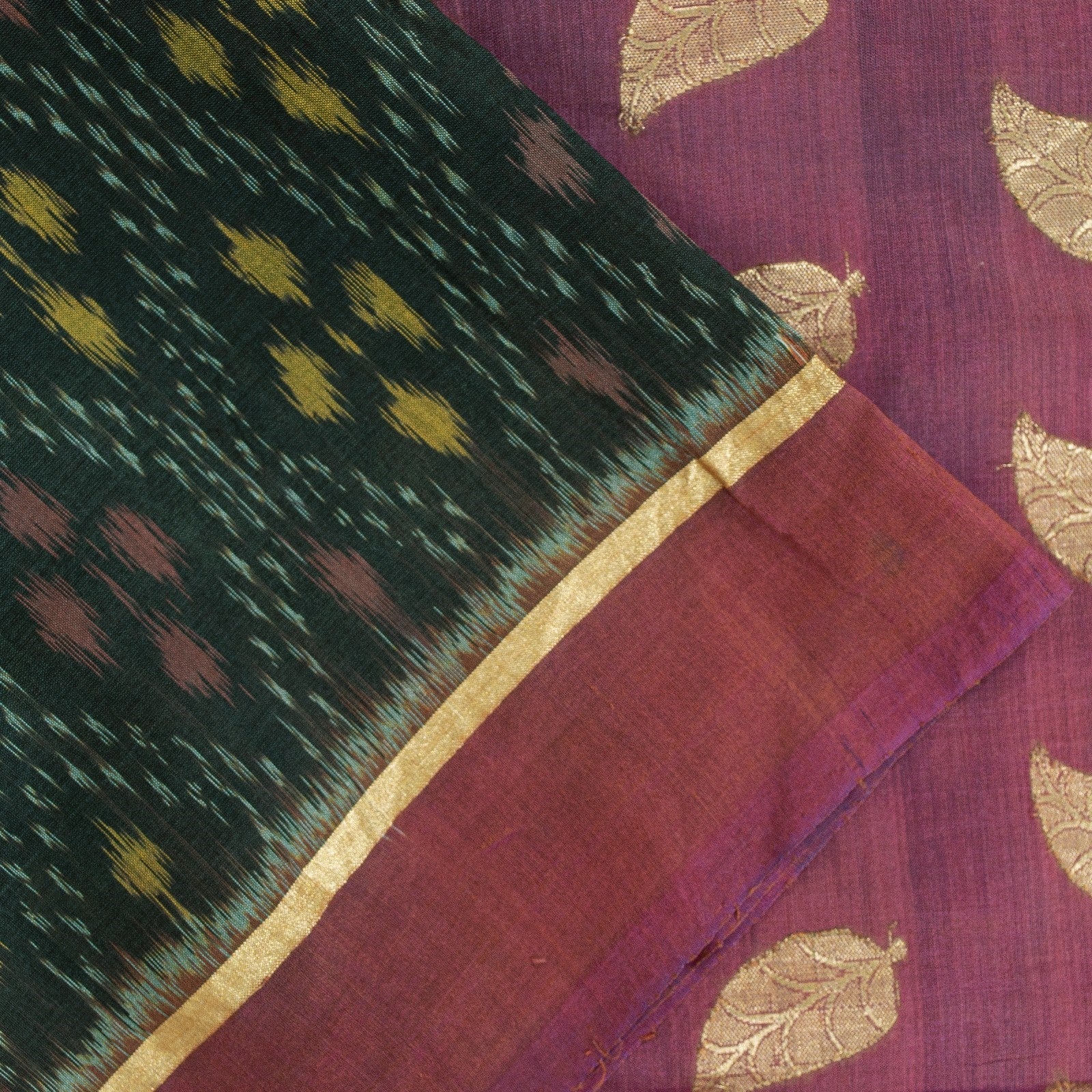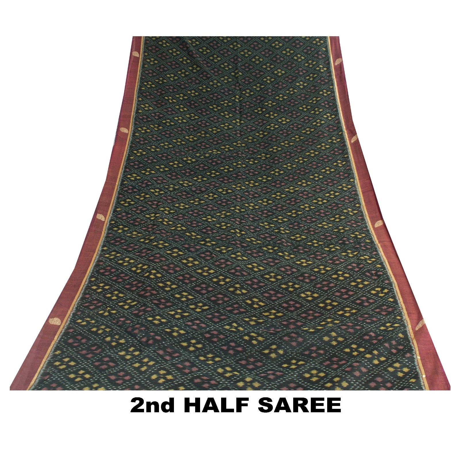 Traditional black colored pure cotton ikat woven & zari woven saree. Leaf design with golden woven work on pallu, border, & Ikat woven in center part of saree. Uses-Crafting, Repurpose, Breathable fabric, Creative Sewing Project, Dressmaking, Kaftans, Use It As A Sari, Window Dressing, Upcycling, Sarongs, Throw,Table Linen,Decorative Fabric, Sustainable Indian Fabric. THE ITEM COLOR OR SHADE MAY BE DARKER OR LIGHTER THAN THE PICTURE.' International buyers please note: Import duties, taxes, and charges are not included in the item price or postage cost. Buyer will pay custom duty/tax,VAT, and any applicable charges at the time of delivery. PCS-7295