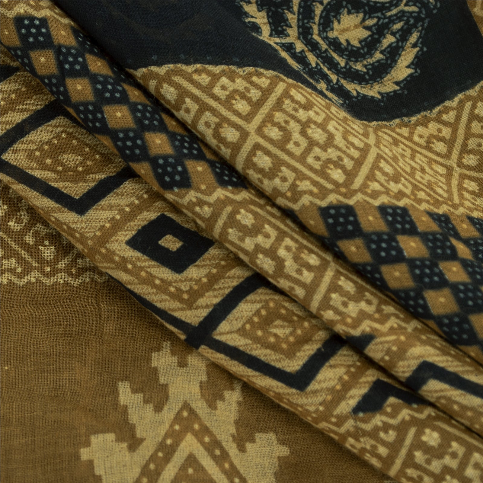 THE ITEM COLOR OR SHADE MAY BE DARKER OR LIGHTER THAN THE PICTURE. Attractive black colored pure cotton printed sari. Pallu & Border has printed floral design & golden woven work. Similar design in center part of saree.. This unique vintage saree can be used for various crafting ideas even if you don't want to use it as a sari. Design a dress, use it as a as window dressing, upholstery, sarongs, throw, dress making and table linen much more. Let your creative juices flow and use this decorated fabric in multiple fashion. Shipping Note: 'International buyers please note: Import duties, taxes, and charges are not included in the item price or postage cost. These charges are the buyer's responsibility. Please check with your country's customs office to determine what these additional costs will be prior to bidding or buying. Buyer will pay custom duty/tax. It is calculated and charged differently by every country. As a seller I do not have any control over it. VAT or sales tax is calculated by the platform at the time of checkout. Customs charge is payable at the time of delivery.' PCS-7377