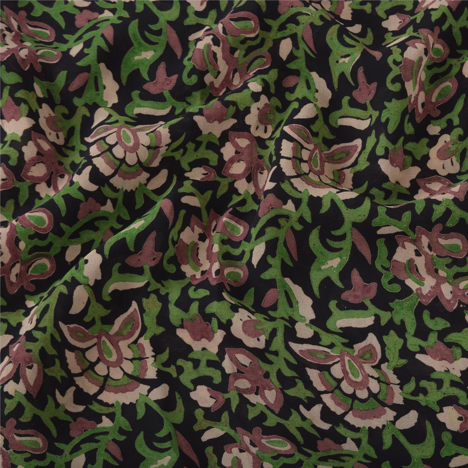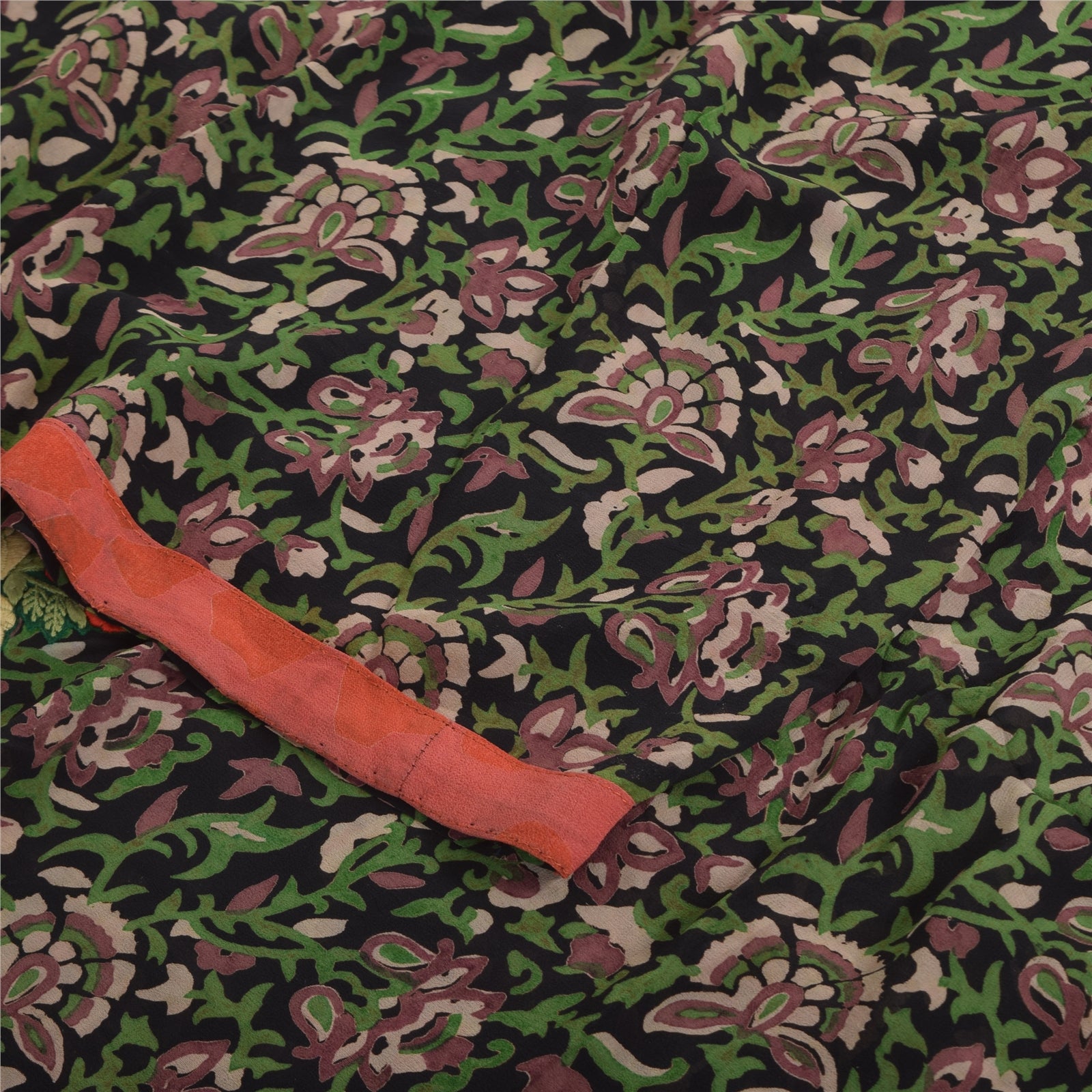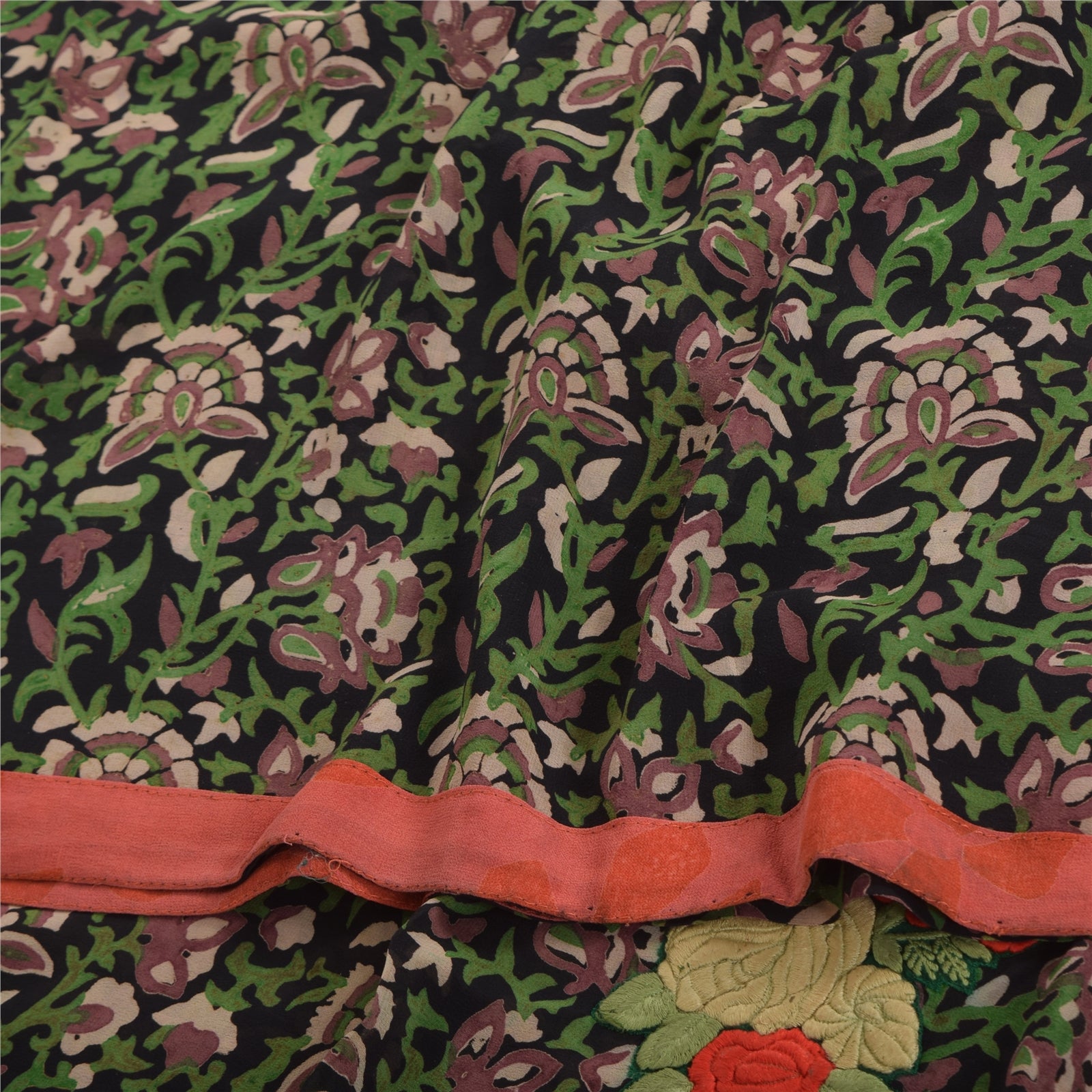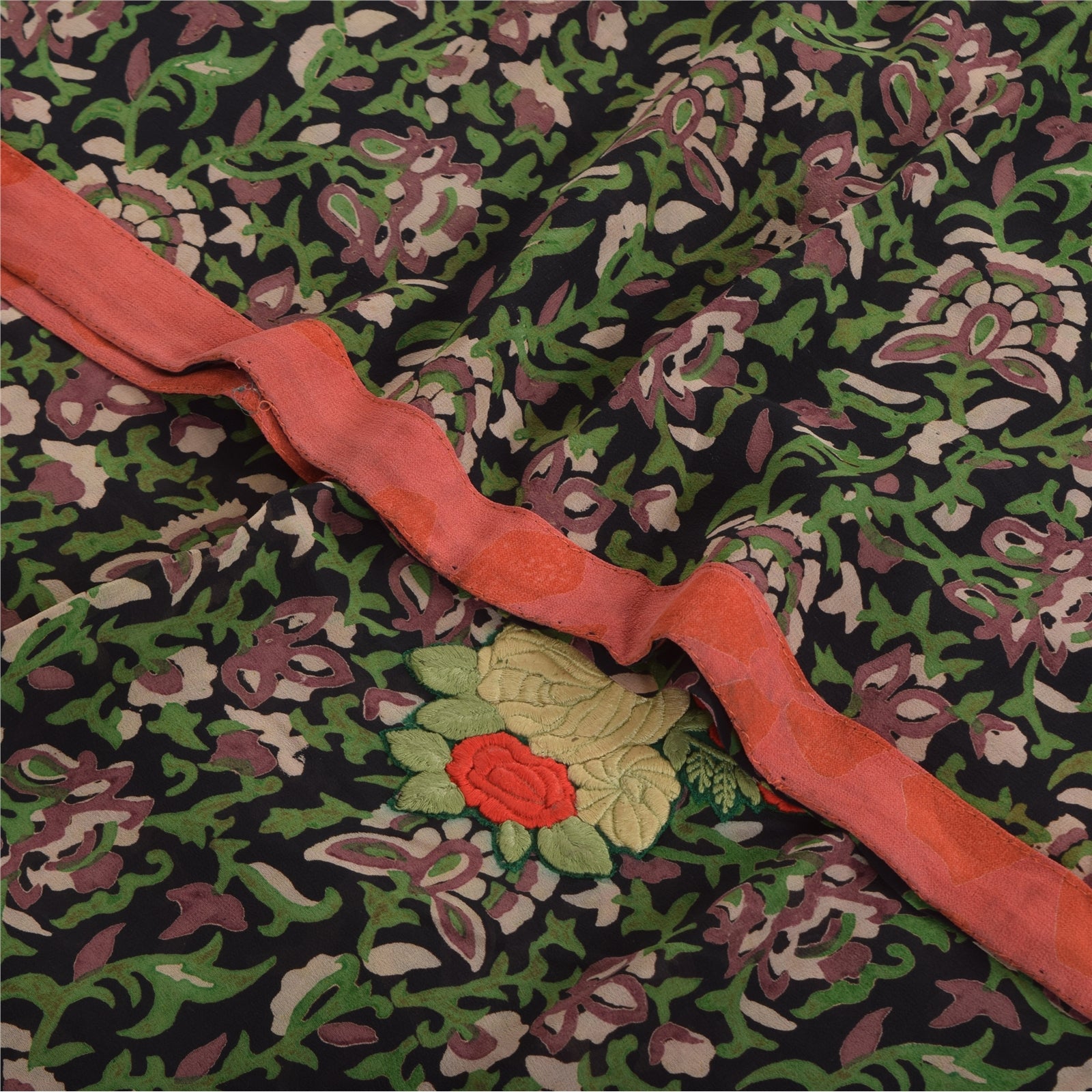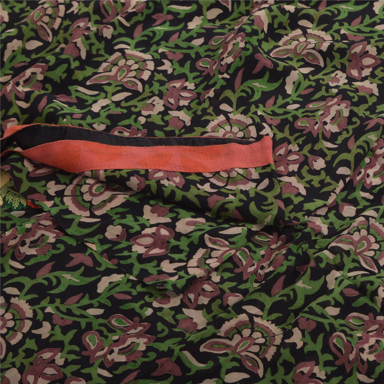 Sanskriti Vintage Sarees Black Pure Georgette Silk Printed Sari 5yd Craft Sustainable Fabric