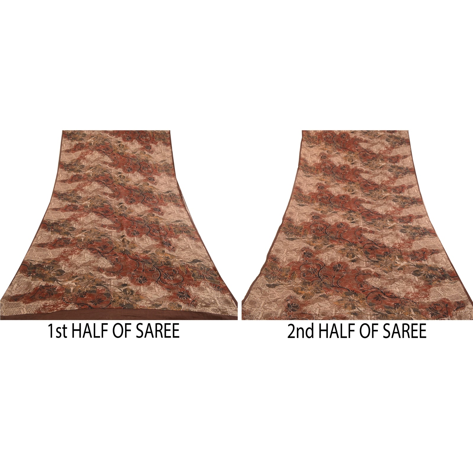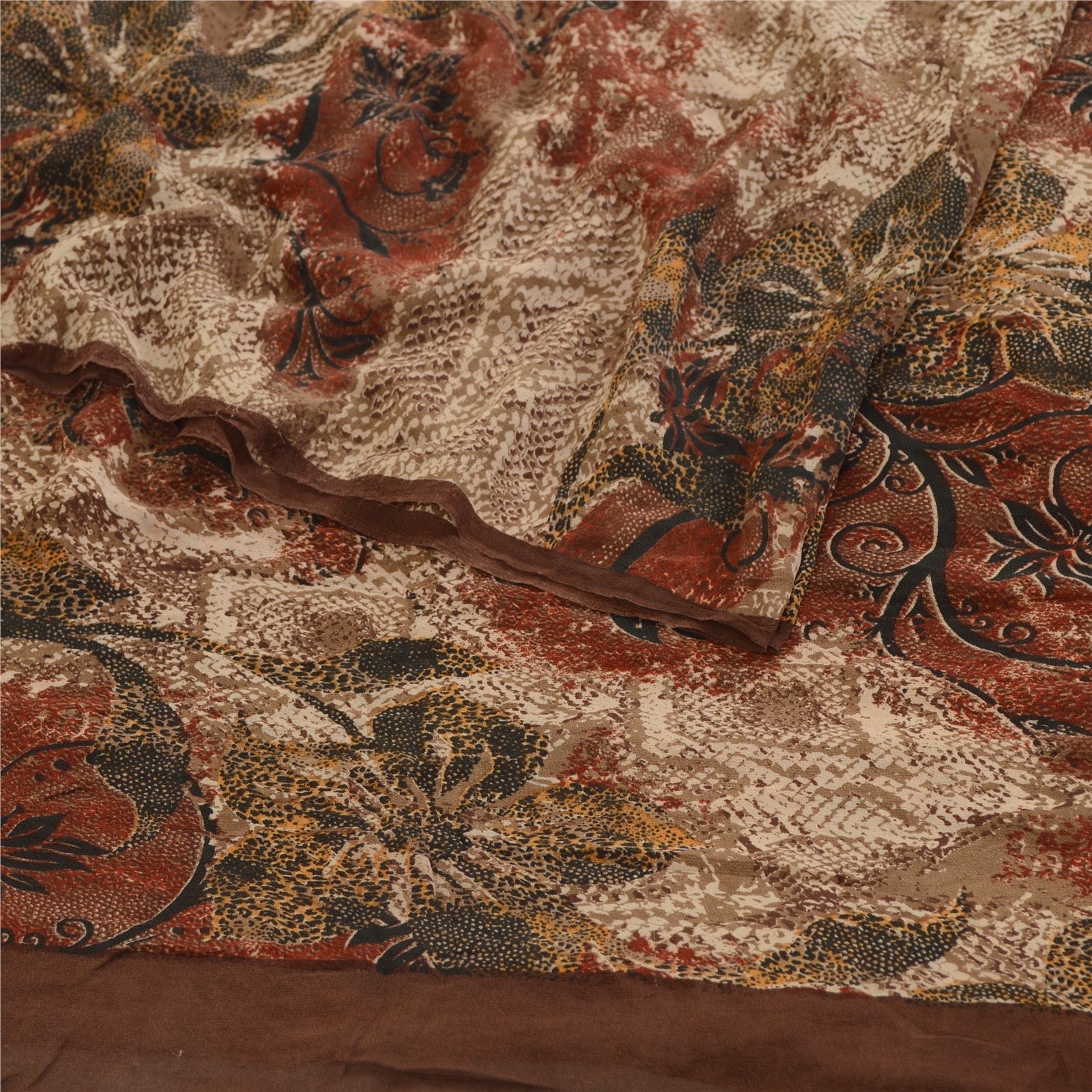 Sanskriti Vintage Sarees Brown Pure Georgette Silk Printed Sari 5yd Craft Sustainable Fabric
