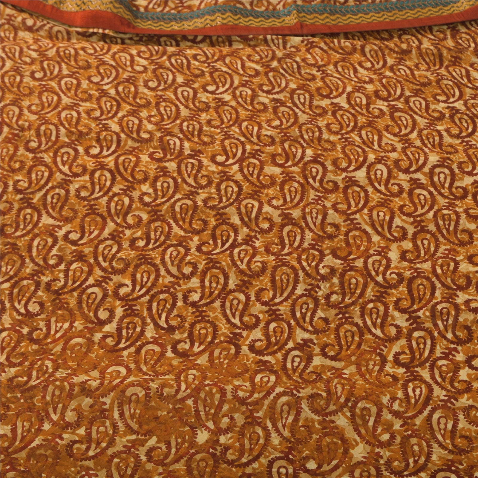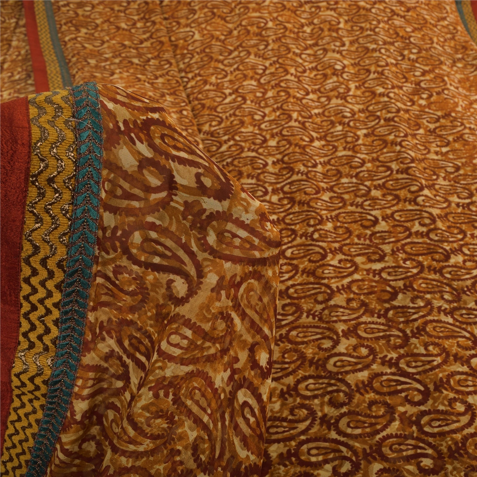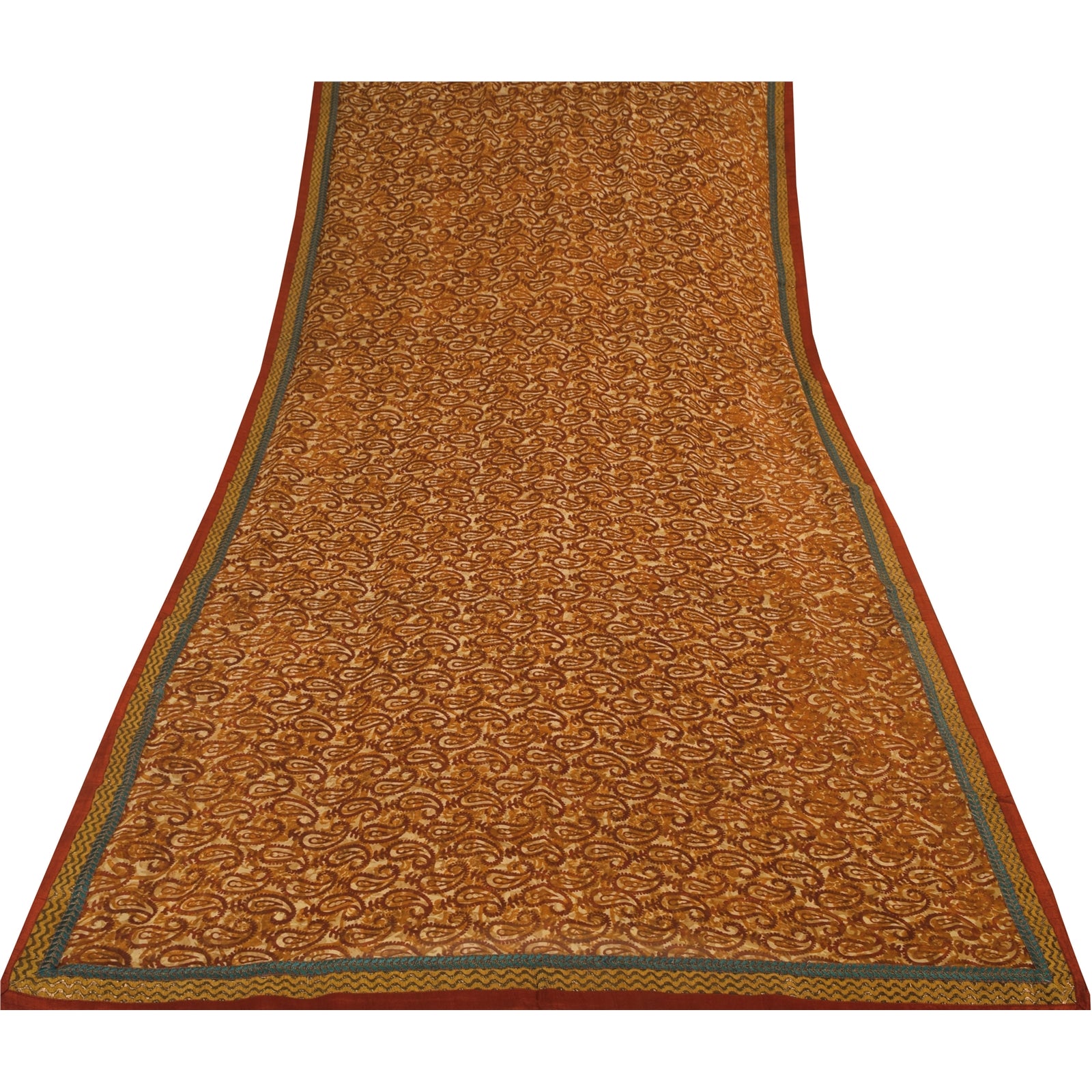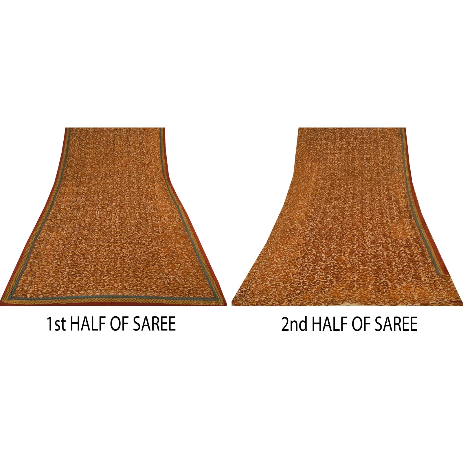 Sanskriti Vintage Sarees Brown Pure Georgette Silk Printed Sari 5yd Craft Sustainable Fabric
