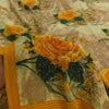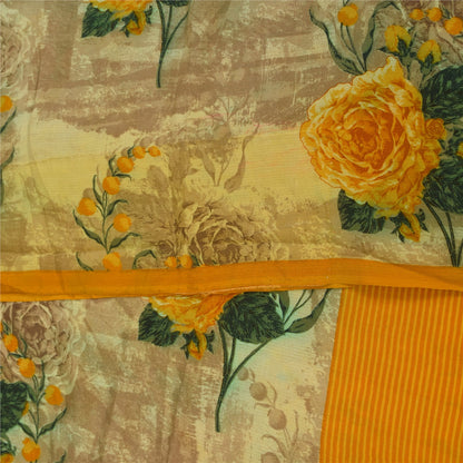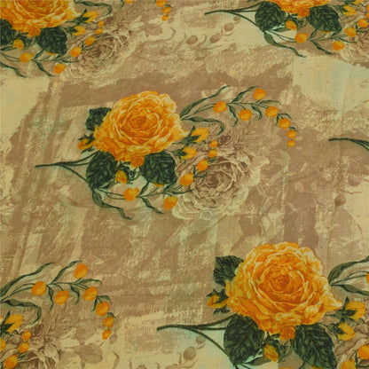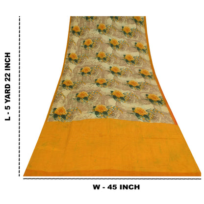 Sanskriti Vintage Sarees Cream Pure Crepe Silk Printed Sari 5+yd Craft Fabric