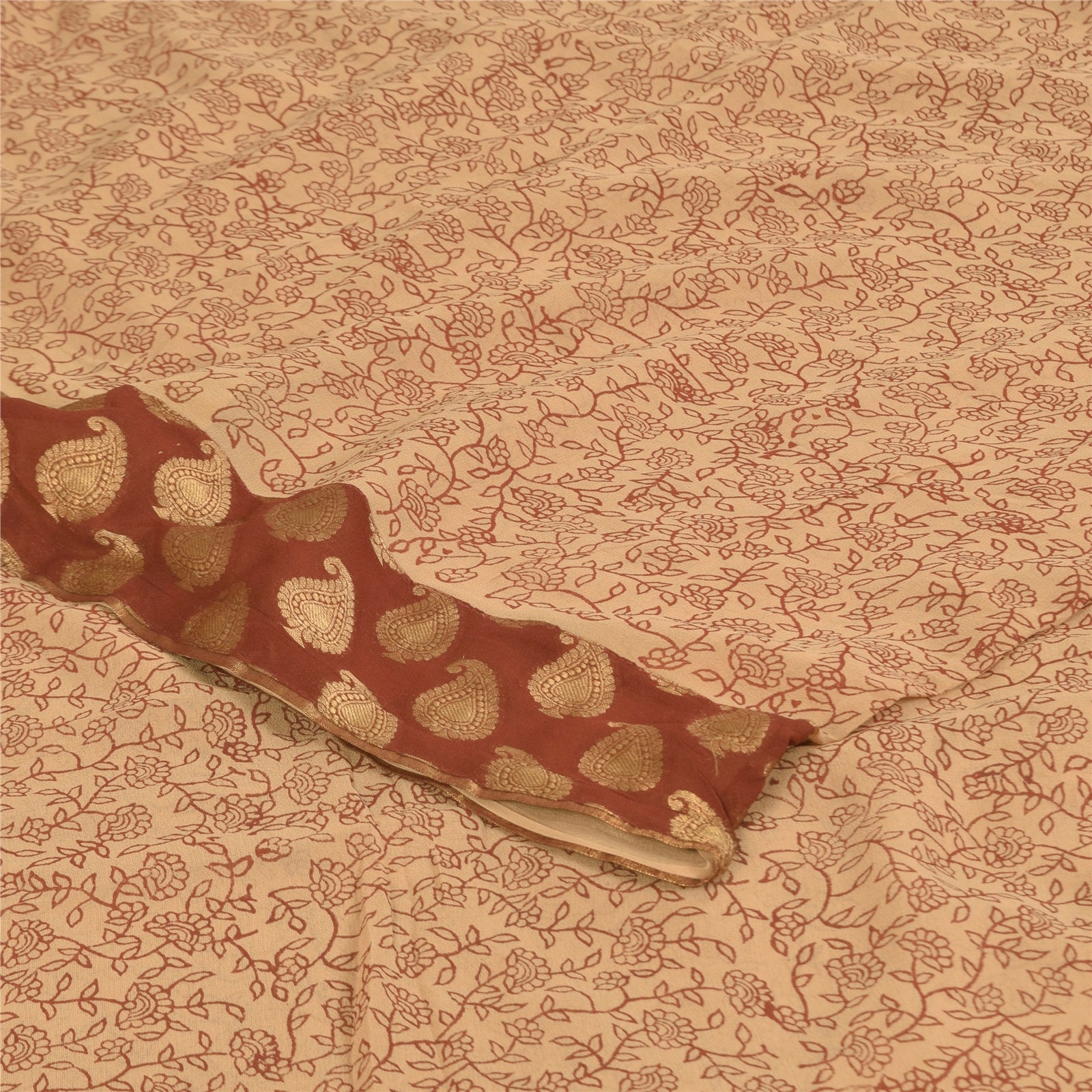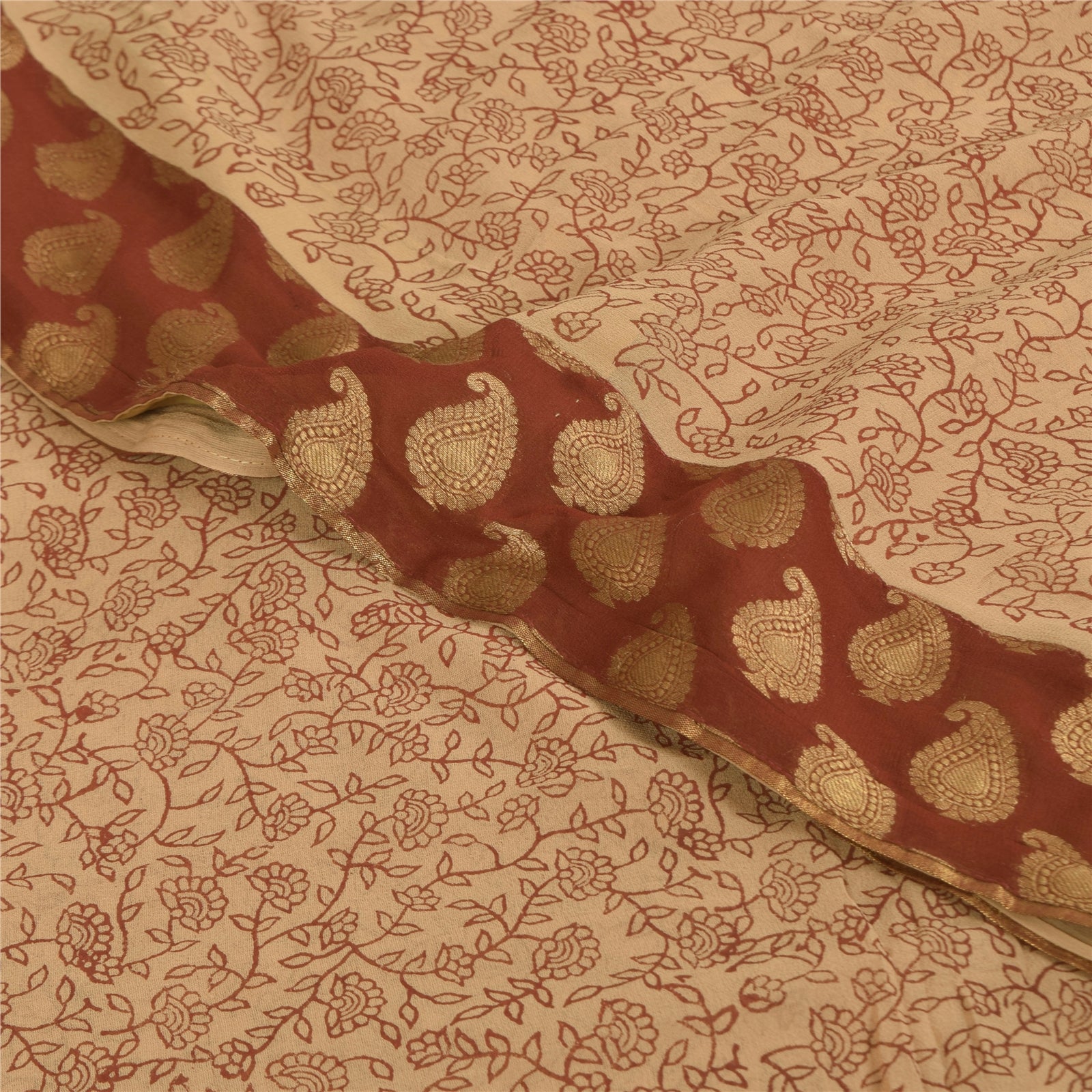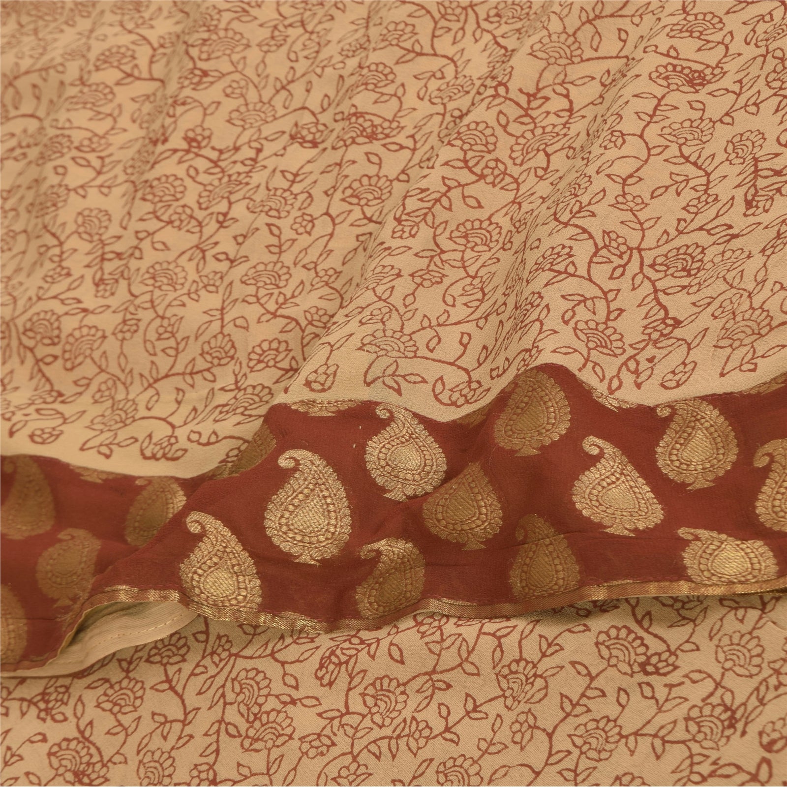 THE ITEM COLOR OR SHADE MAY BE DARKER OR LIGHTER THAN THE PICTURE.' Beautiful cream colored pure georgette silk printed & woven saree. Border has floral design with golden woven work. Printed floral design in center part of saree. What is special about this saree? Brilliant design on soft Sustainable Fabric is really enhancing the beauty of the saree. This unique vintage saree can be used for various crafting ideas even if you don't want to use it as a sari. Design a dress, use it as a as window dressing, upholstery, sarongs, throw, dress making and table linen much more. Let your creative juices flow and use this decorated Sustainable Fabric in multiple fashion. International buyers please note: Import duties, taxes, and charges are not included in the item price or postage cost. These charges are the buyer's responsibility. Please check with your country's customs office to determine what these additional costs will be prior to bidding or buying.Buyer will pay custom duty/tax. It is calculated and charged differently by every country. As a seller I do not have any control over it. VAT or sales tax is calculated by the platform at the time of checkout. Customs charge is payable at the time of delivery. prg-14400