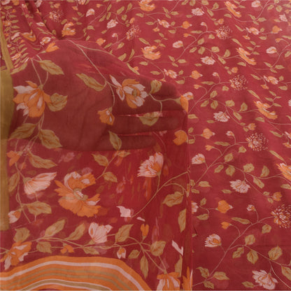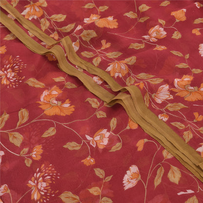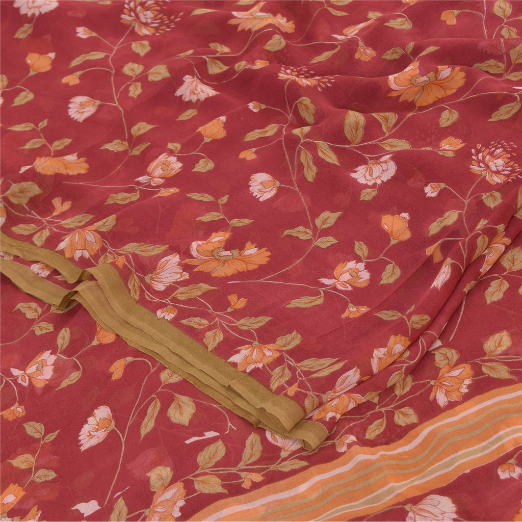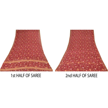 Sanskriti Vintage Sarees Dark Red Pure Georgette Silk Printed Sari Craft Sustainable Fabric