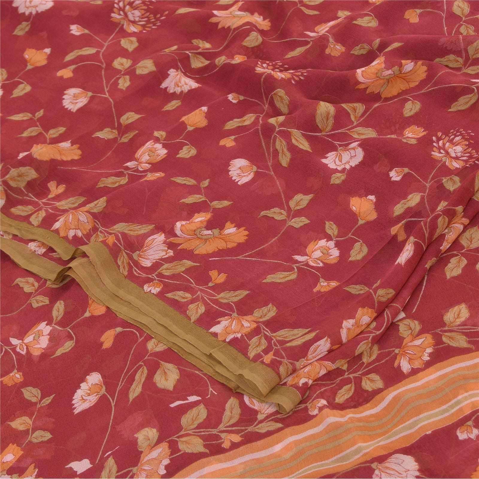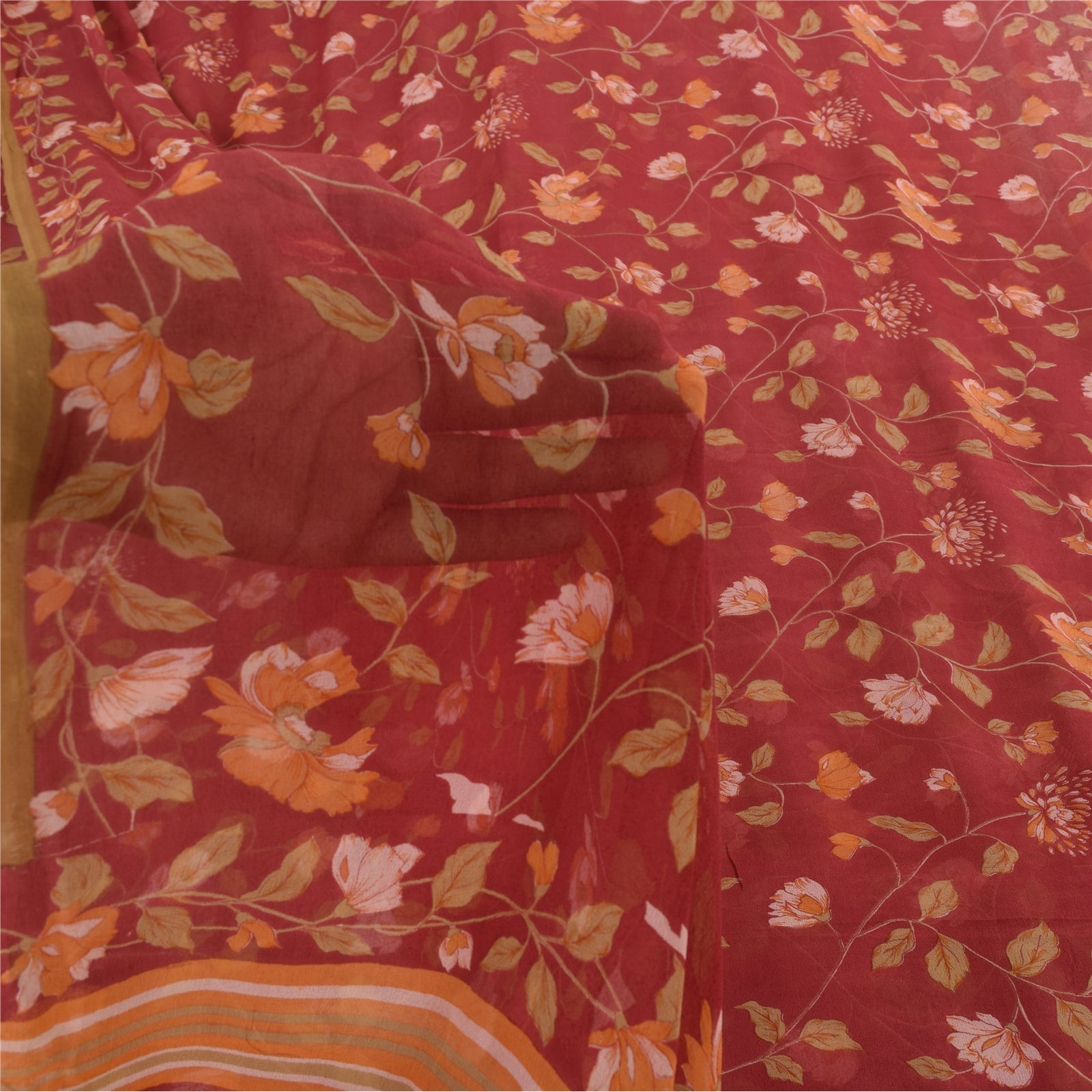 THE ITEM COLOR OR SHADE MAY BE DARKER OR LIGHTER THAN THE PICTURE.' Beautiful dark red colored pure georgette silk printed saree. Pallu & Border has printed floral design. Similar design in center part of saree. What is special about this saree? Brilliant design on soft Sustainable Fabric is really enhancing the beauty of the saree. This unique vintage saree can be used for various crafting ideas even if you don't want to use it as a sari. Design a dress, use it as a as window dressing, upholstery, sarongs, throw, dress making and table linen much more. Let your creative juices flow and use this decorated Sustainable Fabric in multiple fashion. International buyers please note: Import duties, taxes, and charges are not included in the item price or postage cost. These charges are the buyer's responsibility. Please check with your country's customs office to determine what these additional costs will be prior to bidding or buying.Buyer will pay custom duty/tax. It is calculated and charged differently by every country. As a seller I do not have any control over it. VAT or sales tax is calculated by the platform at the time of checkout. Customs charge is payable at the time of delivery. PRG-14267