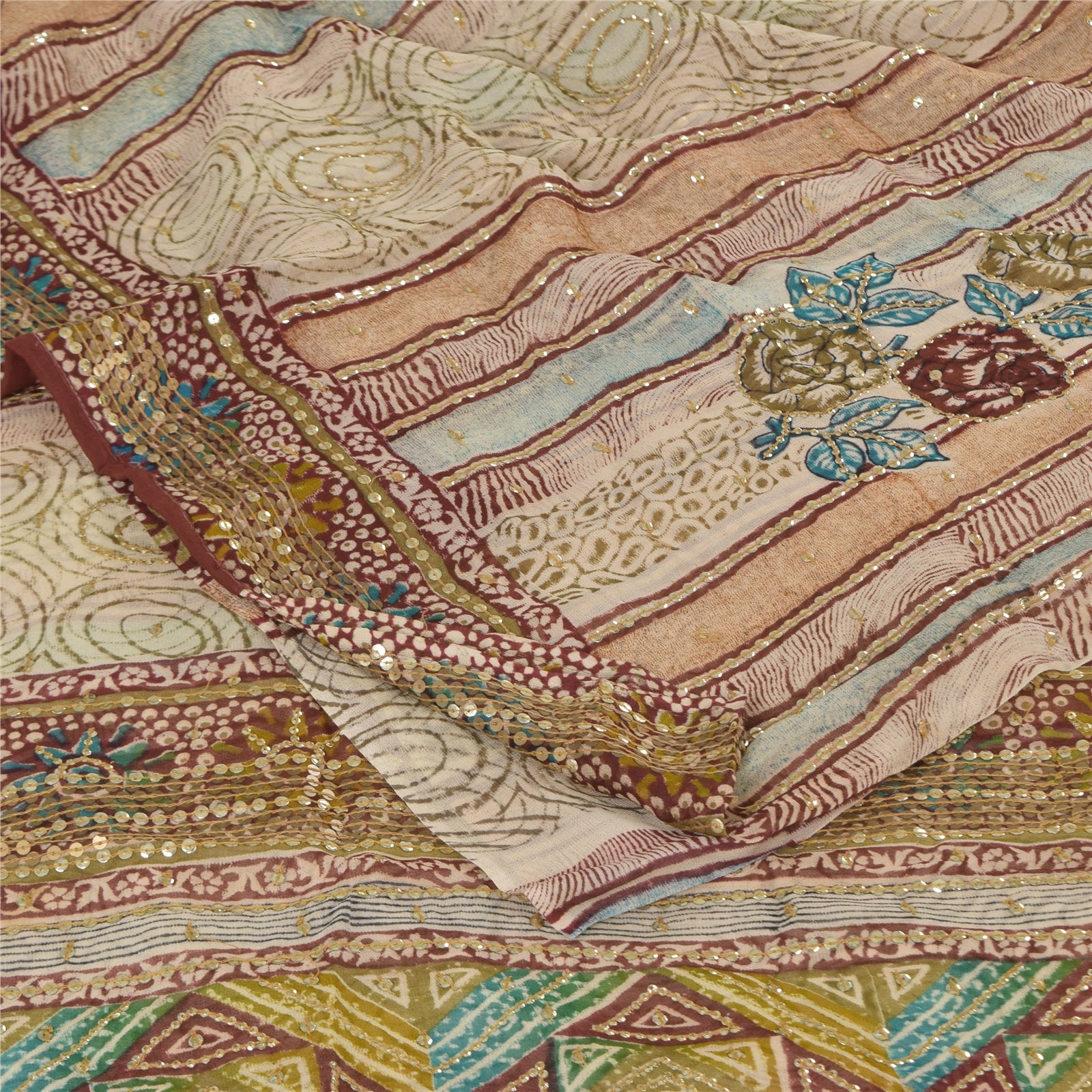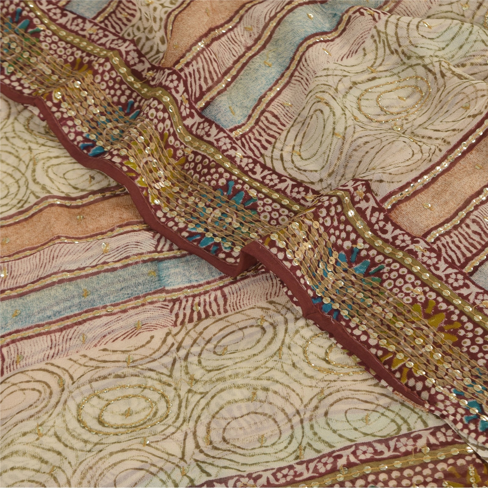 THE ITEM COLOR OR SHADE MAY BE DARKER OR LIGHTER THAN THE PICTURE.' Beautiful cream colored pure georgette silk printed & embroidered saree. Pallu & Border has printed floral & geometric design with sequins work. Similar work in center part of saree. What is special about this saree? Brilliant design on soft Sustainable Fabric is really enhancing the beauty of the saree. This unique vintage saree can be used for various crafting ideas even if you don't want to use it as a sari. Design a dress, use it as a as window dressing, upholstery, sarongs, throw, dress making and table linen much more. Let your creative juices flow and use this decorated Sustainable Fabric in multiple fashion. International buyers please note: Import duties, taxes, and charges are not included in the item price or postage cost. These charges are the buyer's responsibility. Please check with your country's customs office to determine what these additional costs will be prior to bidding or buying.Buyer will pay custom duty/tax. It is calculated and charged differently by every country. As a seller I do not have any control over it. VAT or sales tax is calculated by the platform at the time of checkout. Customs charge is payable at the time of delivery. prg-14537