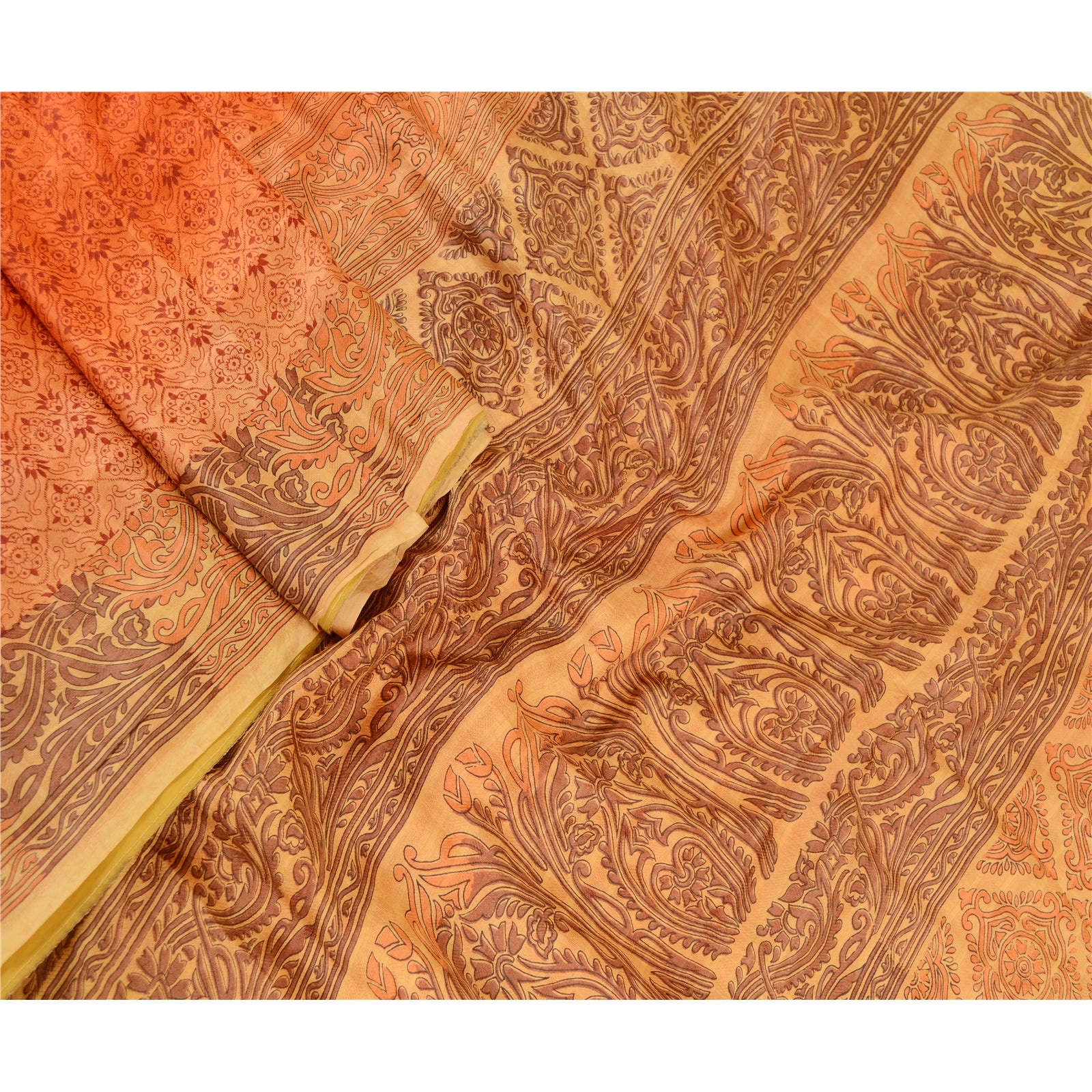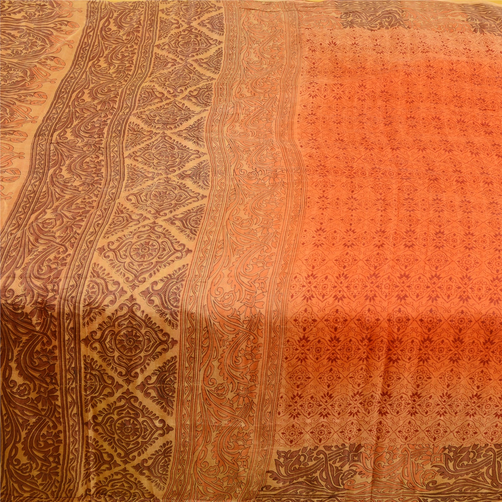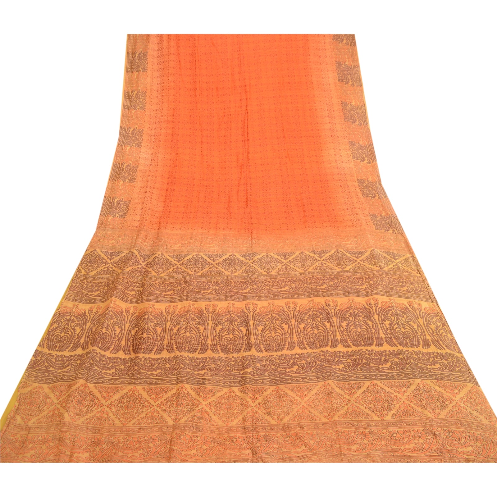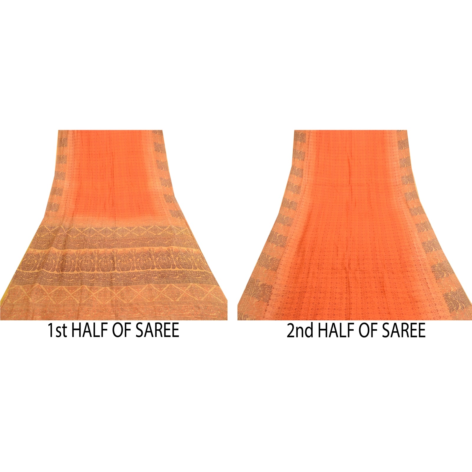 Sanskriti Vintage Sarees From India Orange Printed Pure Silk Sari Craft Sustainable Fabric