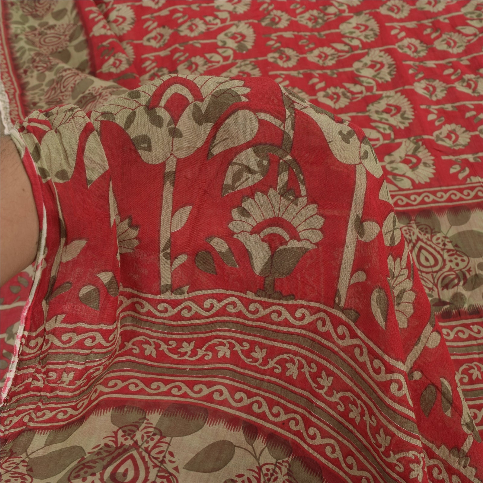 Sanskriti Vintage Sarees From India Red Pure Cotton Print Sari 5yd Craft Fabric