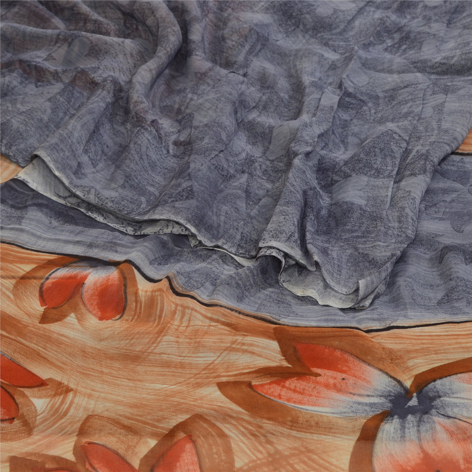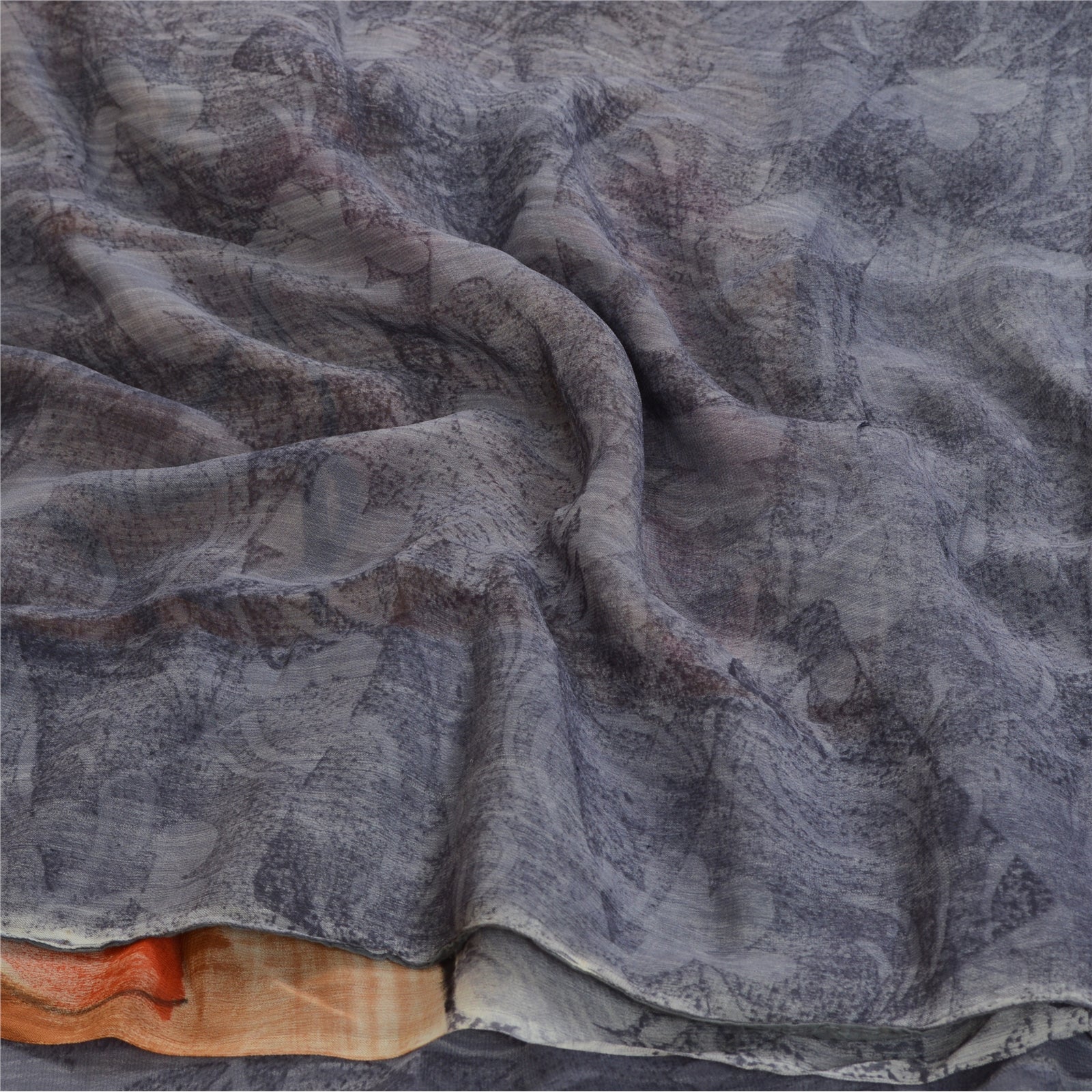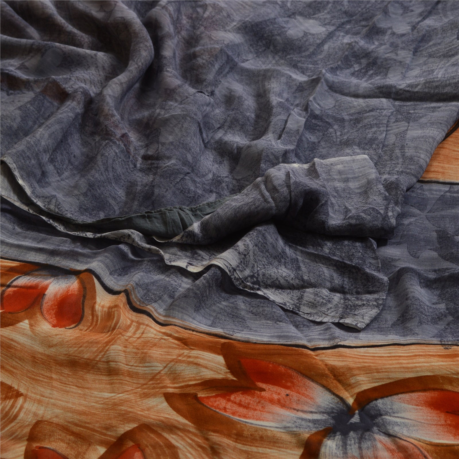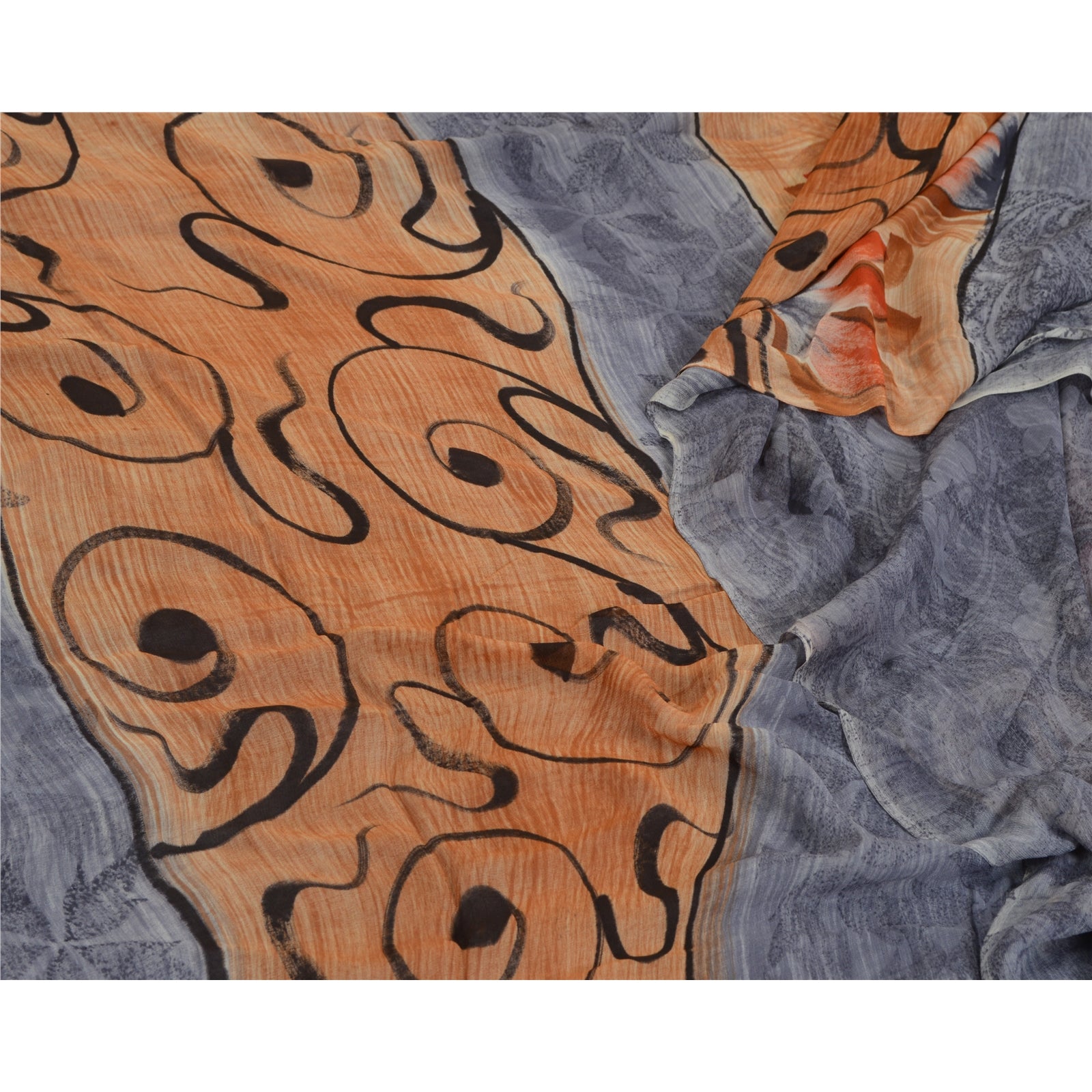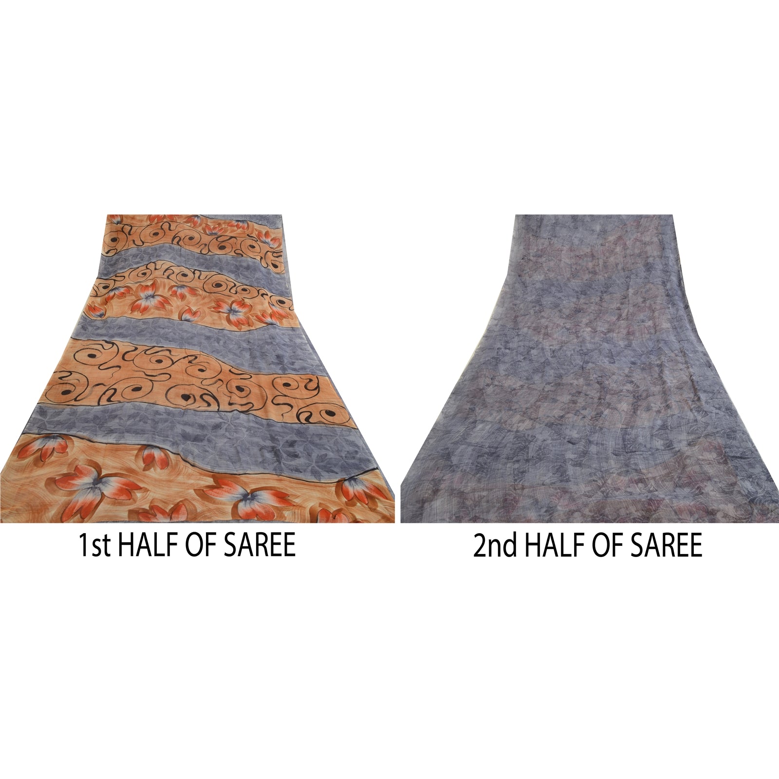 Sanskriti Vintage Sarees Gray/Brown Blend Georgette Printed Sari Craft Sustainable Fabric