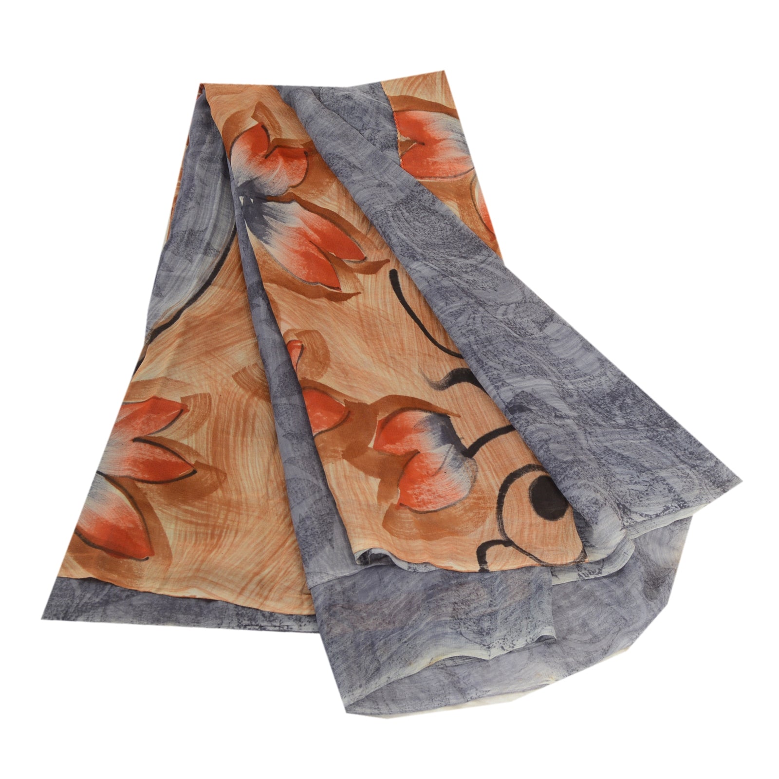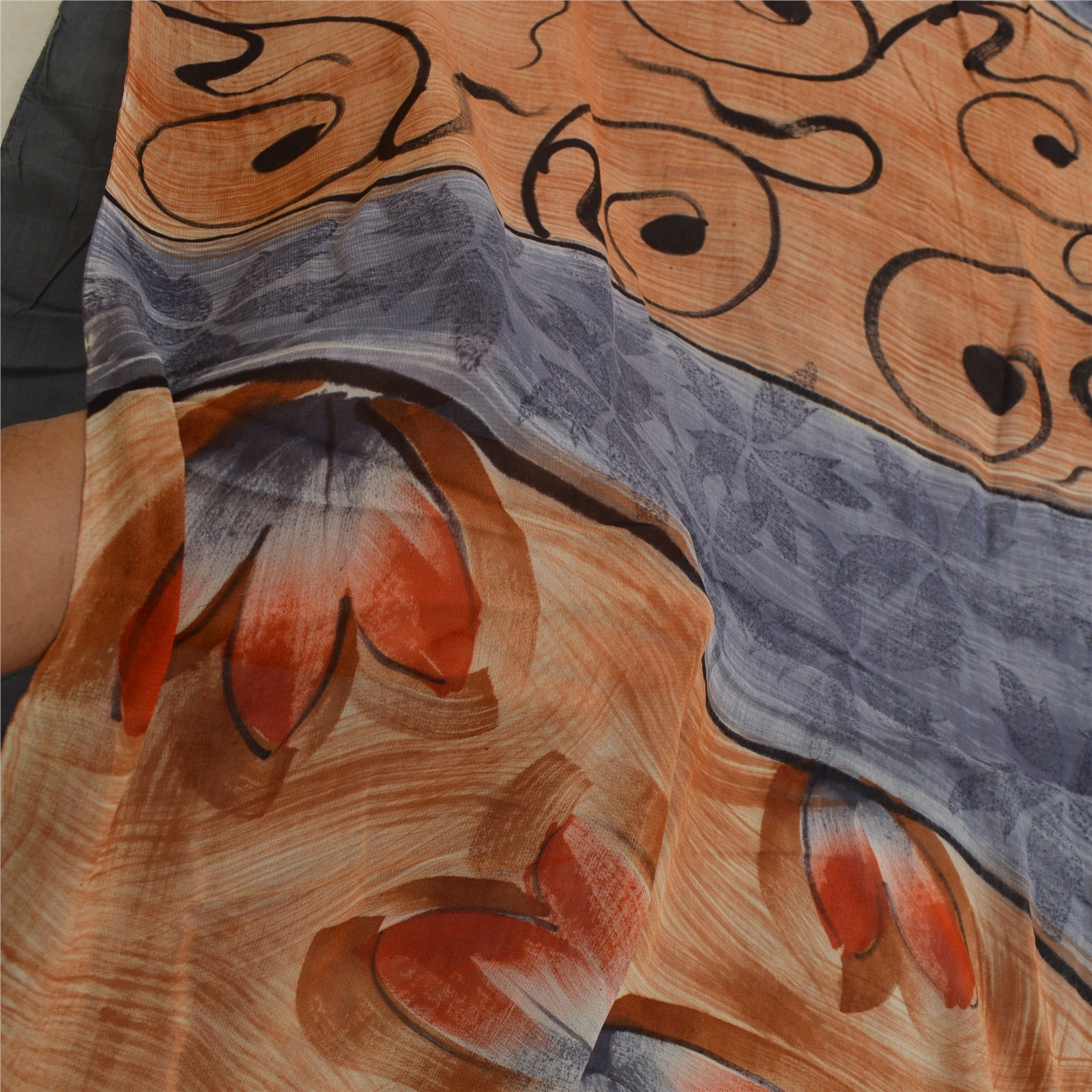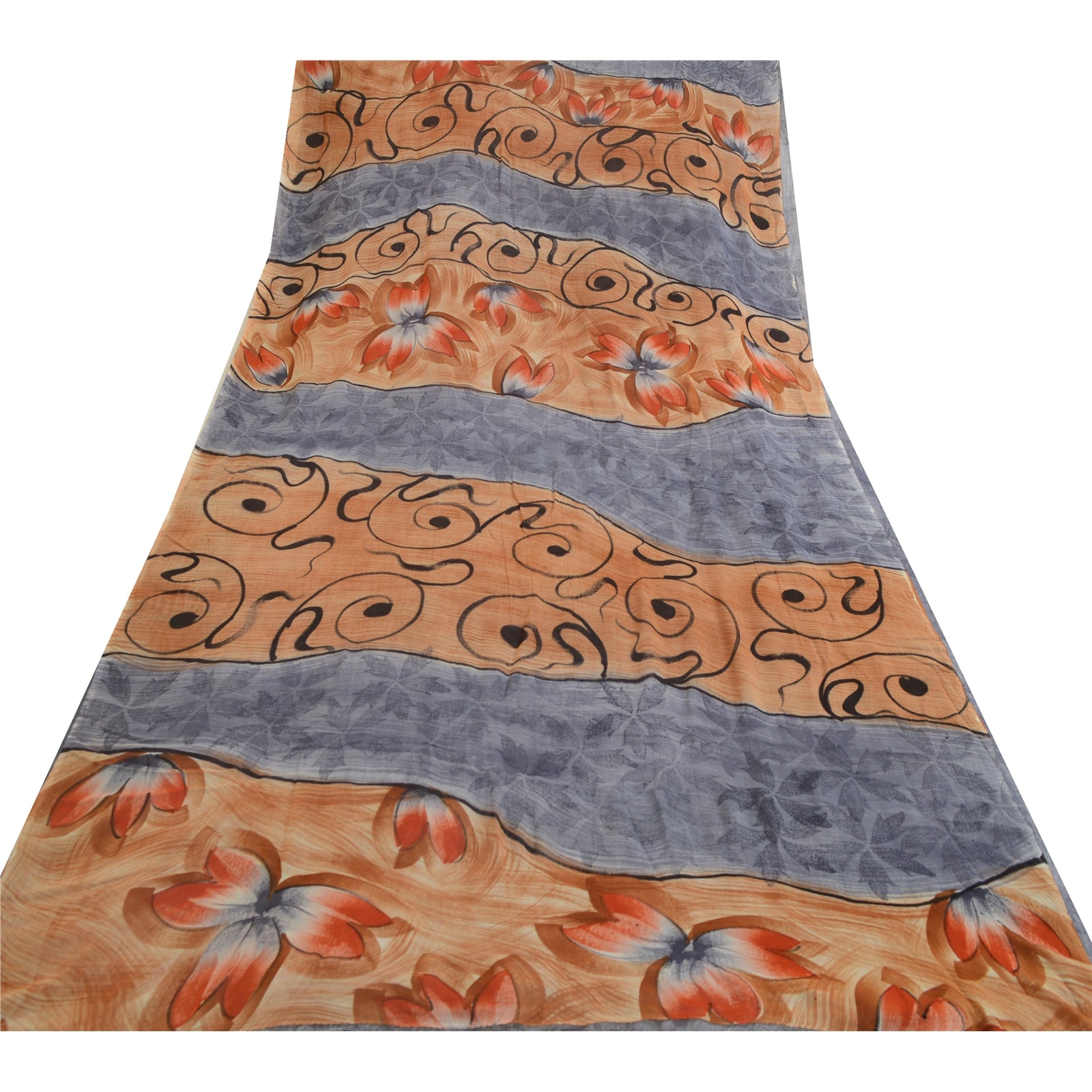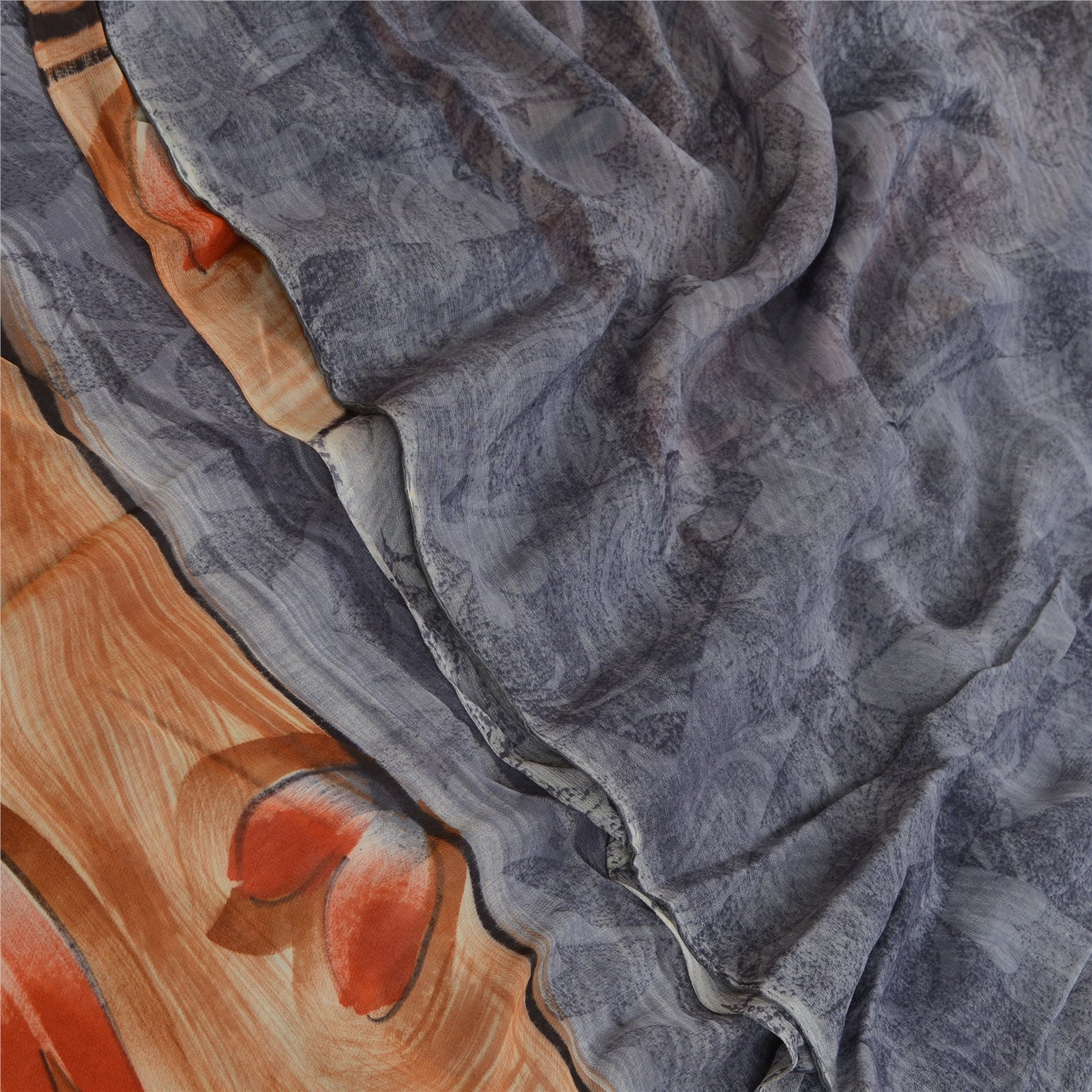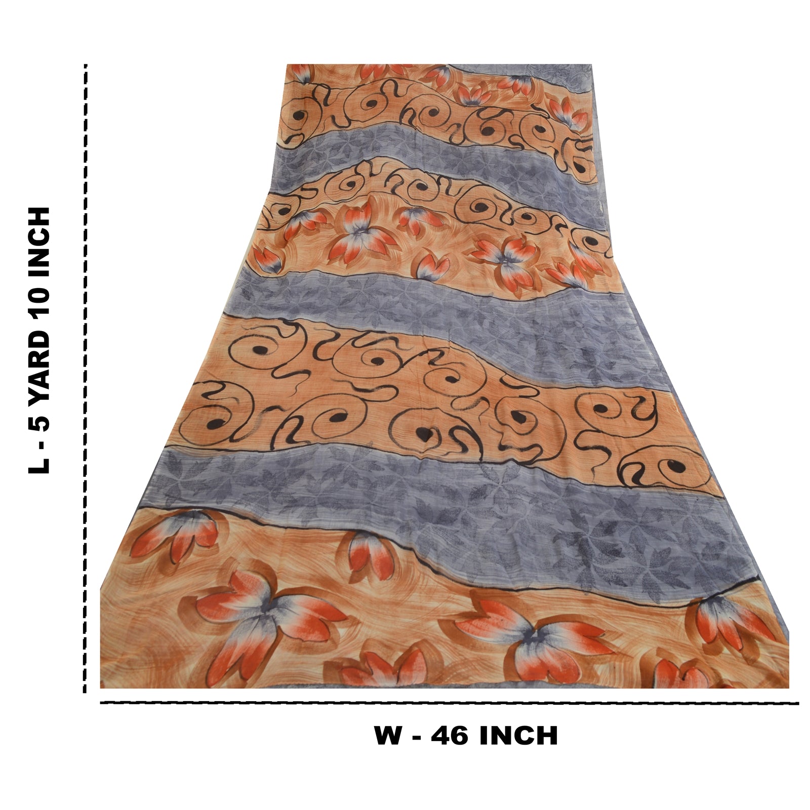 Sanskriti Vintage Sarees Gray/Brown Blend Georgette Printed Sari Craft Sustainable Fabric