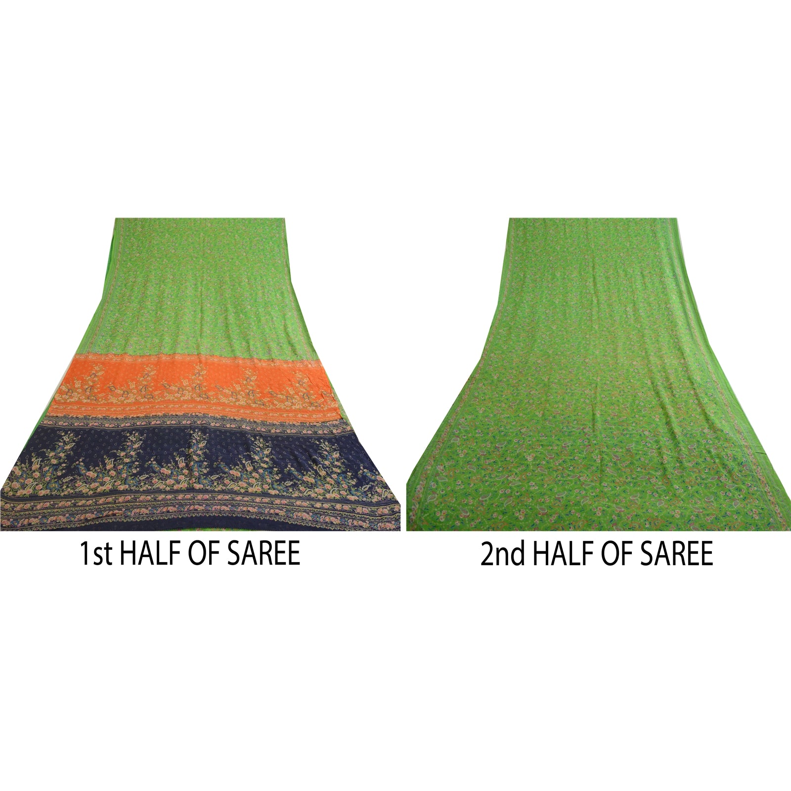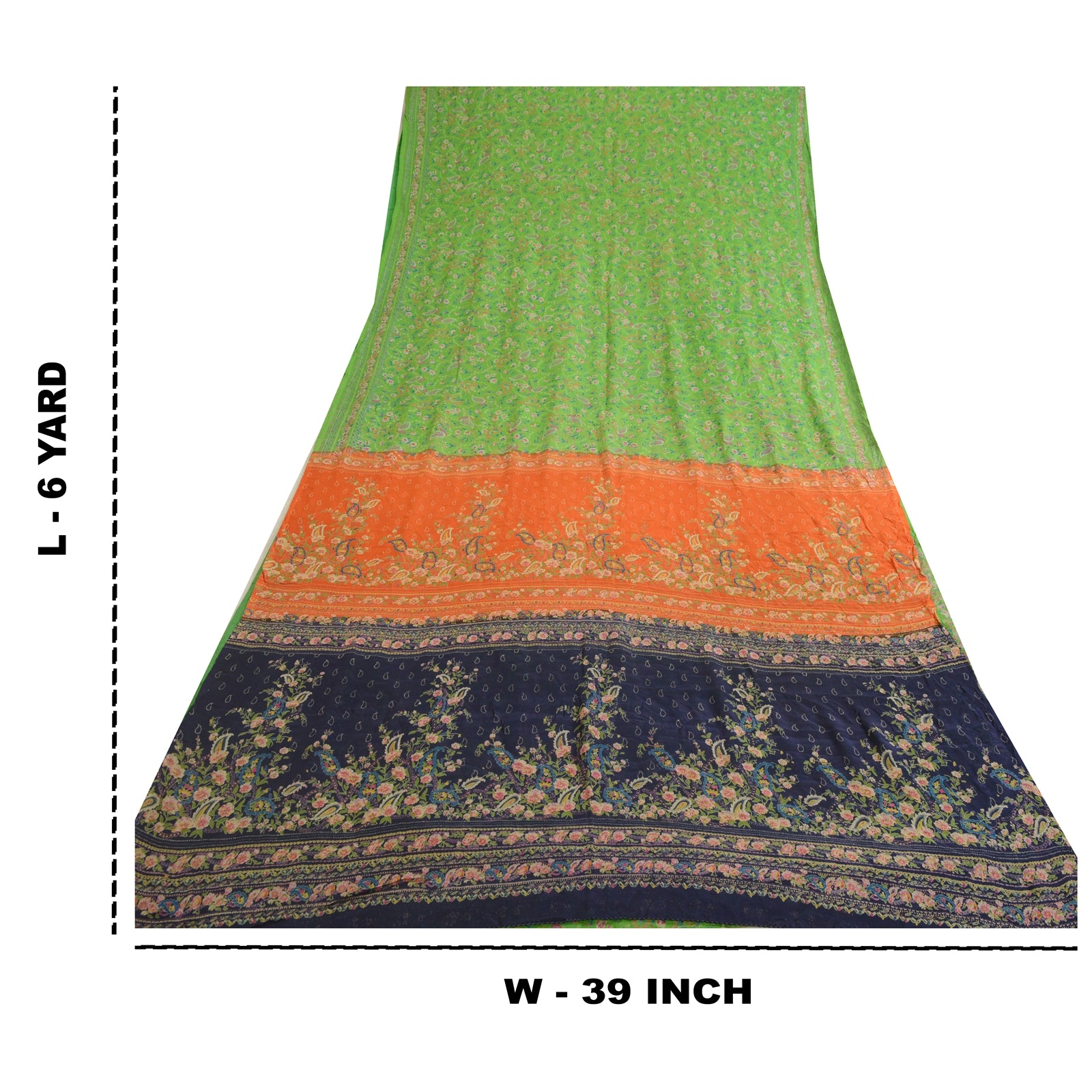 THE ITEM COLOR OR SHADE MAY BE DARKER OR LIGHTER THAN THE PICTURE.' Beautiful green colored pure silk printed saree. Pallu & Border has printed floral design. Similar design in center part of saree. What is special about this saree? Fabulous design is really enhancing the beauty of the saree.This unique vintage saree can be used for various crafting ideas even if you don't want to use it as a sari. Design a dress, use it as window, dressing, upholstery, sarongs, throw, dress making and table linen much more. Let your creative juices flow and use this decorated Sustainable Fabric in multiple fashion. International buyers please note: Import duties, taxes, and charges are not included in the item price or postage cost. These charges are the buyer's responsibility. Please check with your country's customs office to determine what these additional costs will be prior to bidding or buying. Buyer will pay custom duty/tax. It is calculated and charged differently by every country. As a seller I do not have any control over it. VAT or sales tax is calculated by the platform at the time of checkout. Customs charge is payable at the time of delivery.'