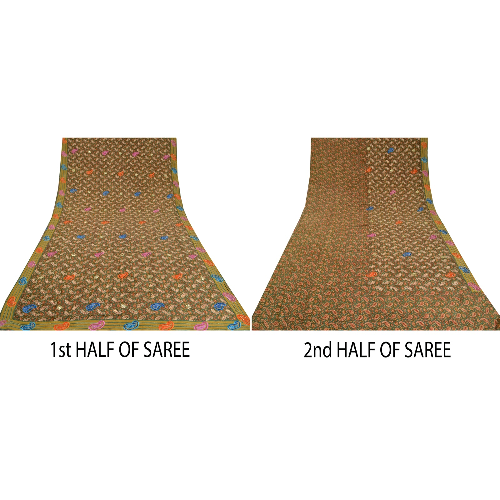 THE ITEM COLOR OR SHADE MAY BE DARKER OR LIGHTER THAN THE PICTURE.' Beautiful green colored pure crepe silk printed & embroidered saree. Border has paisley design with thread work. Printed floral desing with thread work in center part of saree. What is special about this saree? Fabulous design is really enhancing the beauty of the saree. This unique vintage saree can be used for various crafting ideas even if you don't want to use it as a sari. Design a dress, use it as window,dressing, upholstery, sarongs, throw, dress making and table linen much more. Let your creative juices flow and use this decorated Sustainable Fabric in multiple fashion. International buyers please note: Import duties, taxes, and charges are not included in the item price or postage cost. These charges are the buyer's responsibility. Please check with your country's customs office to determine what these additional costs will be prior to bidding or buying.Buyer will pay custom duty/tax. It is calculated and charged differently by every country. As a seller I do not have any control over it.VAT or sales tax is calculated by the platform at the time of checkout. Customs charge is payable at the time of delivery.