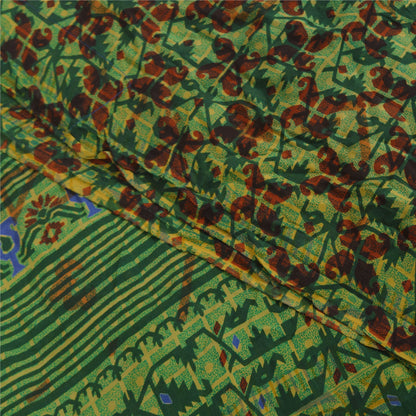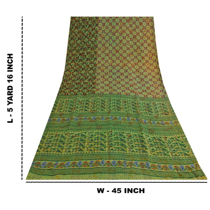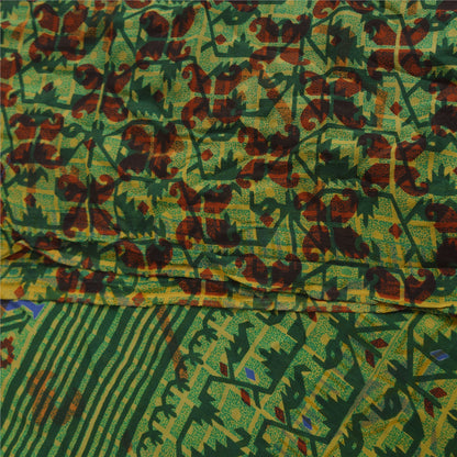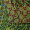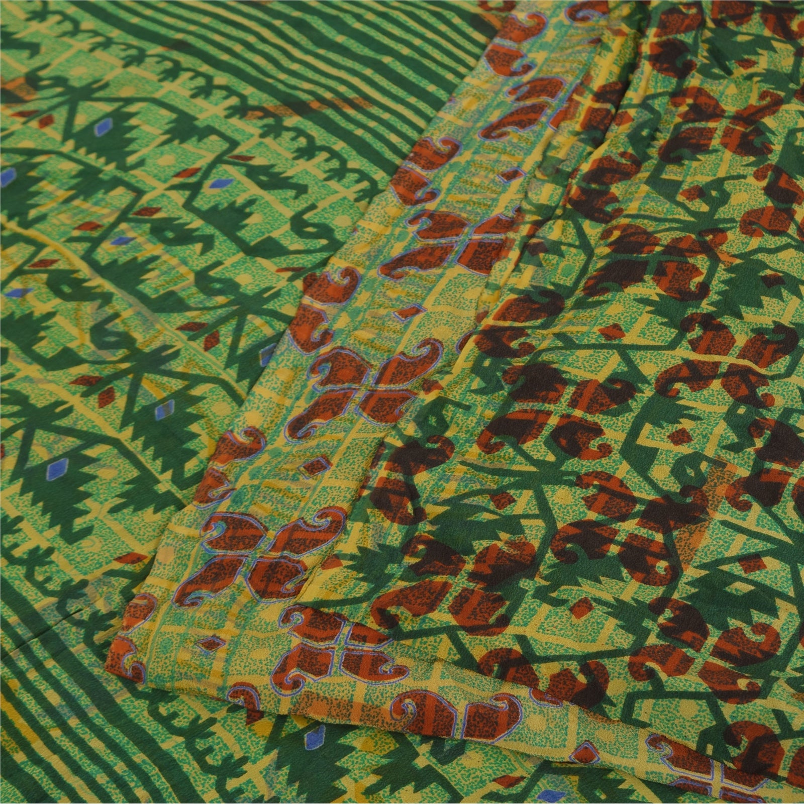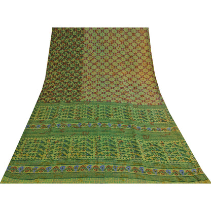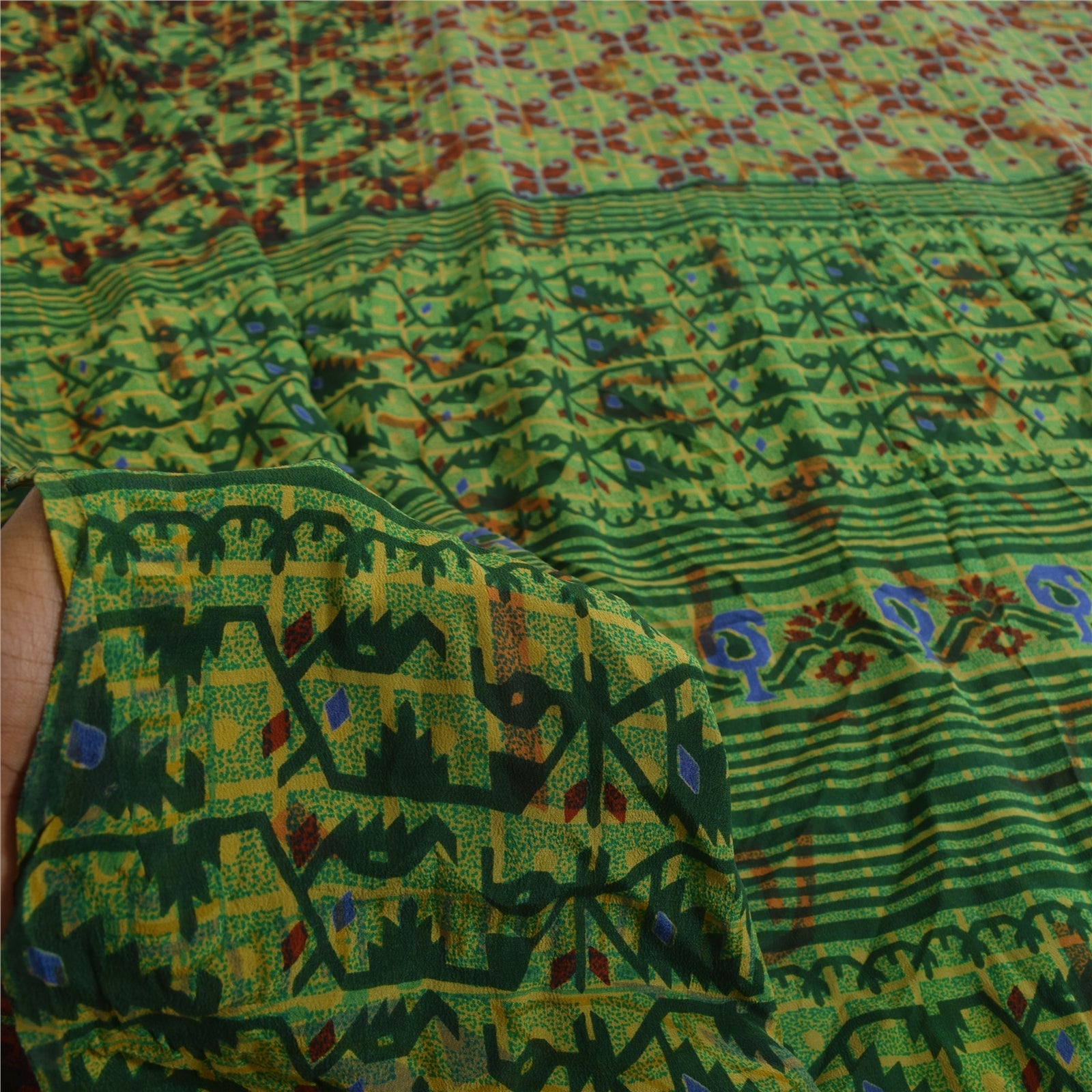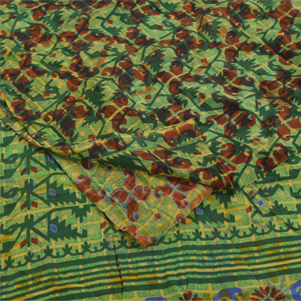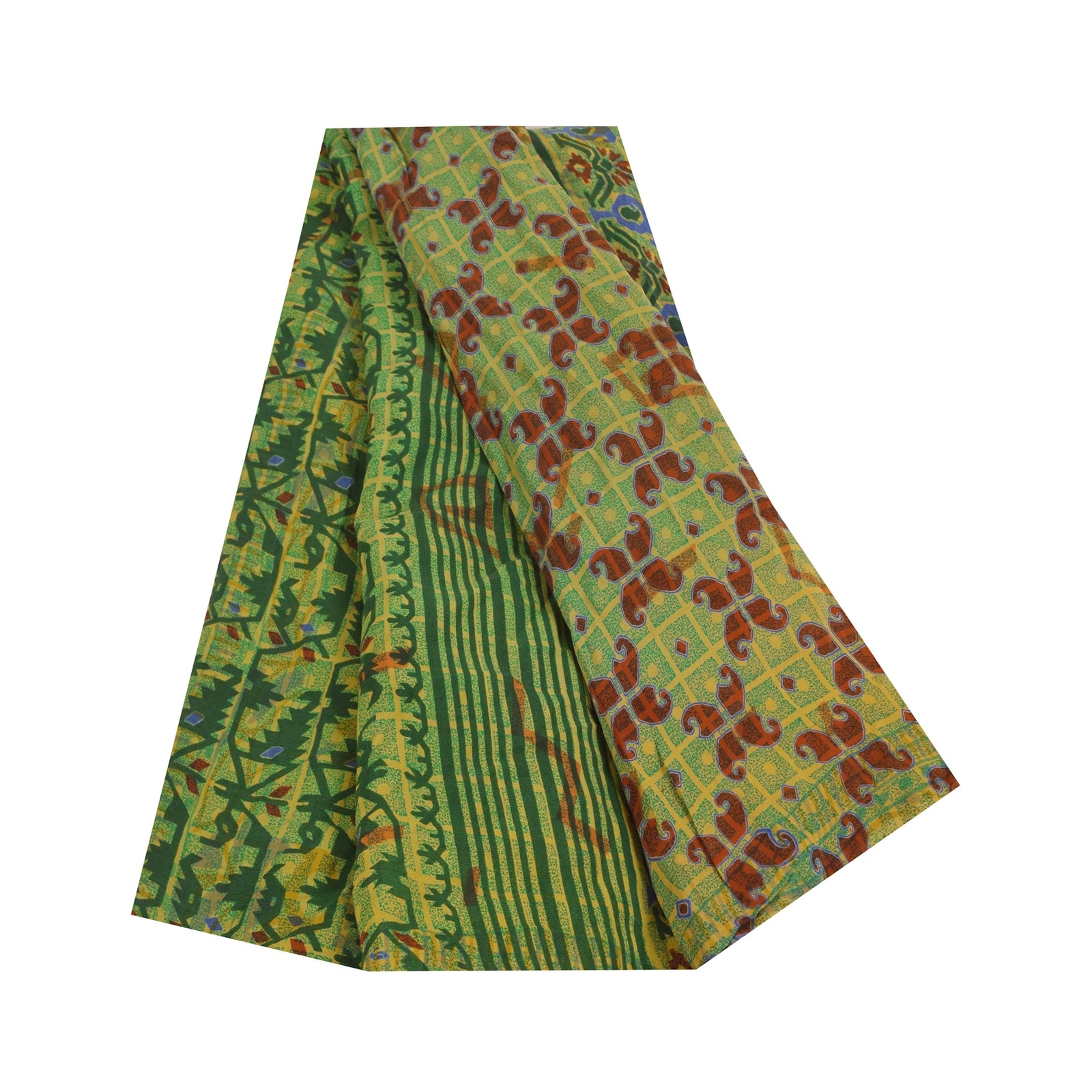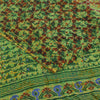 Sanskriti Vintage Sarees Green Jamdani Printed Pure Crepe Sari 5+yd Craft Sustainable Fabric