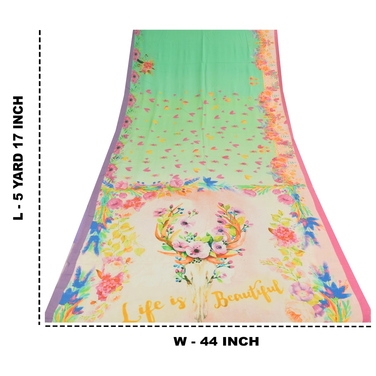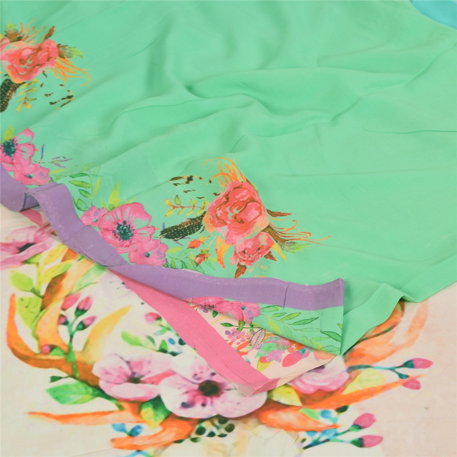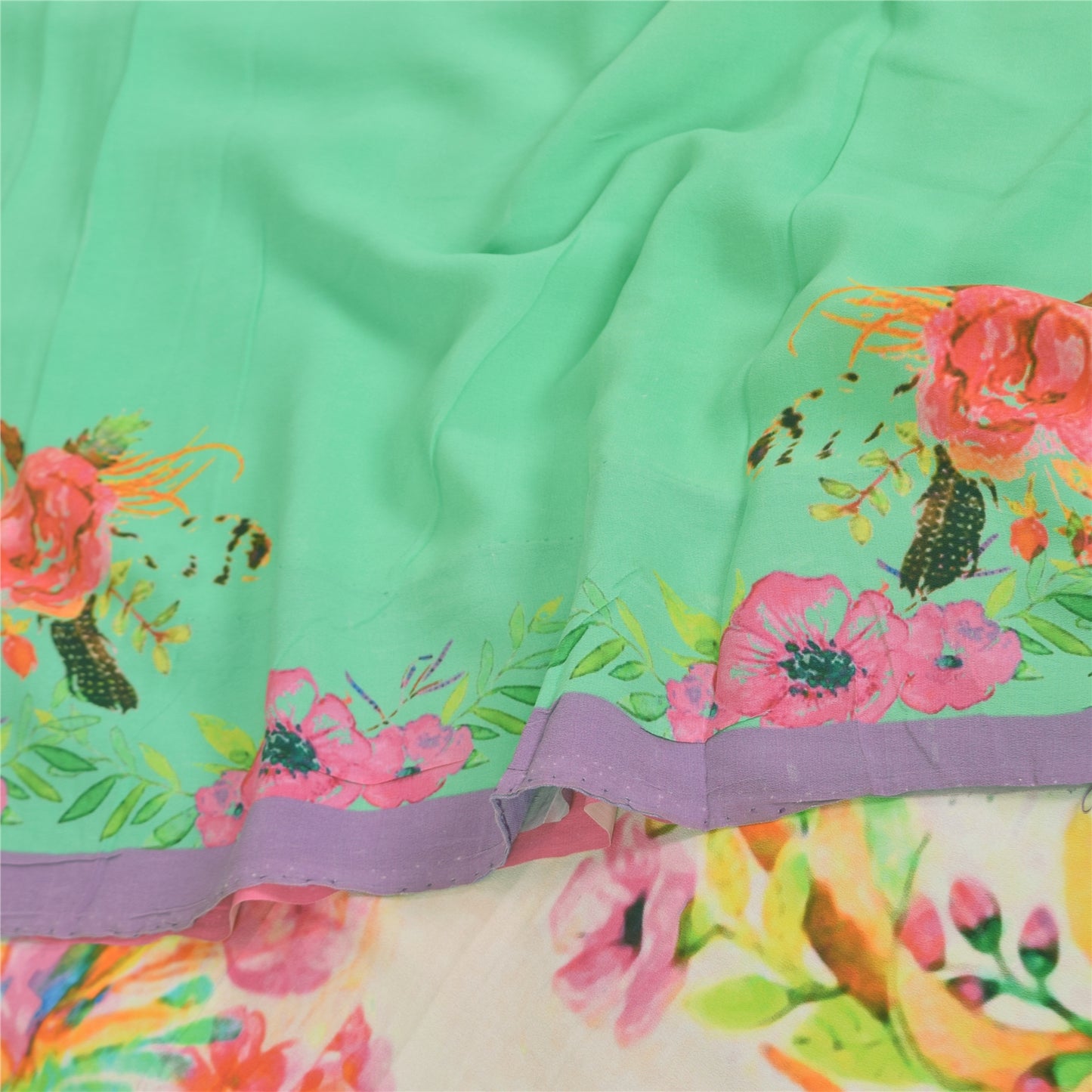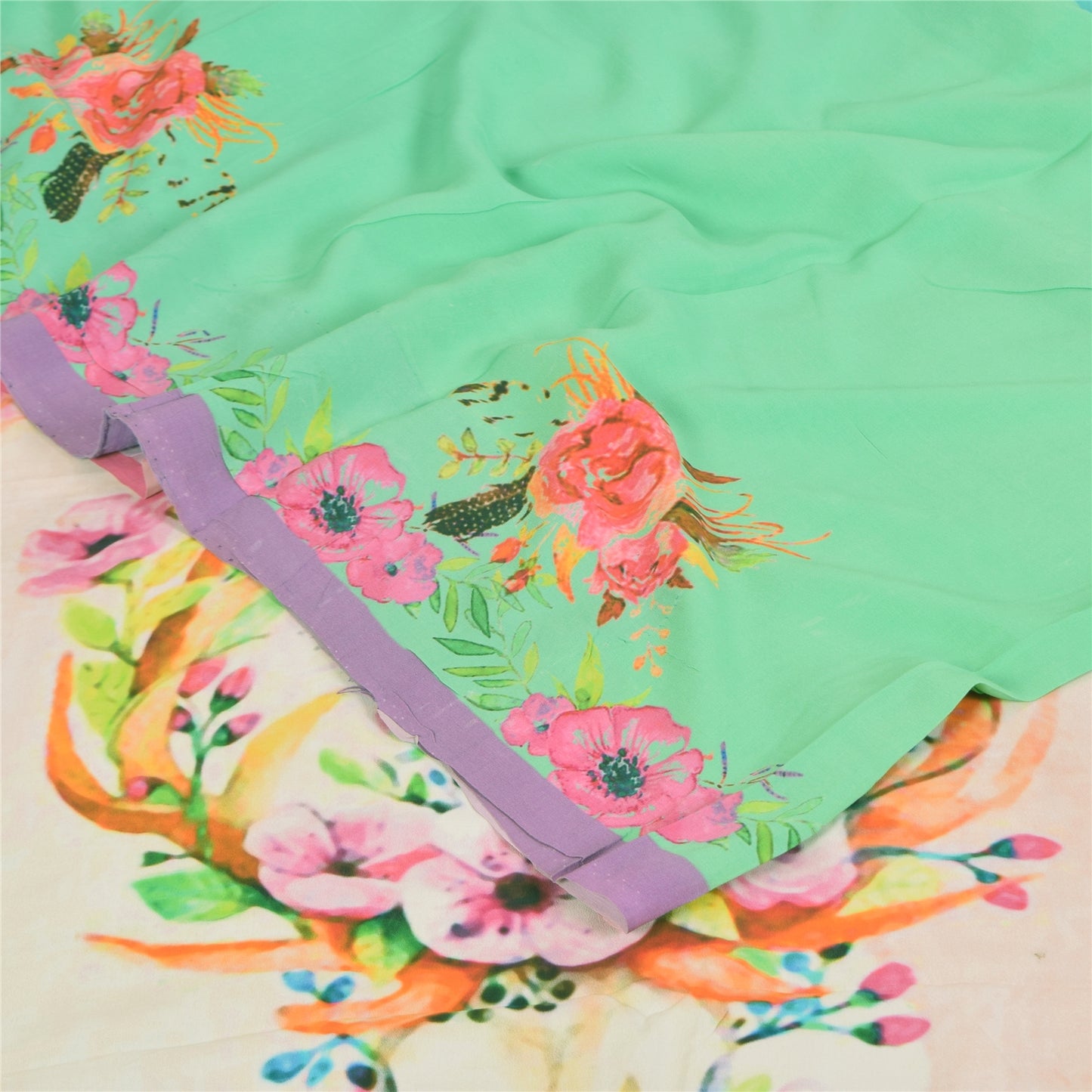 Sanskriti Vintage Sarees Green Pure Georgette Digital Printed Sari 5+yd Sustainable Fabric