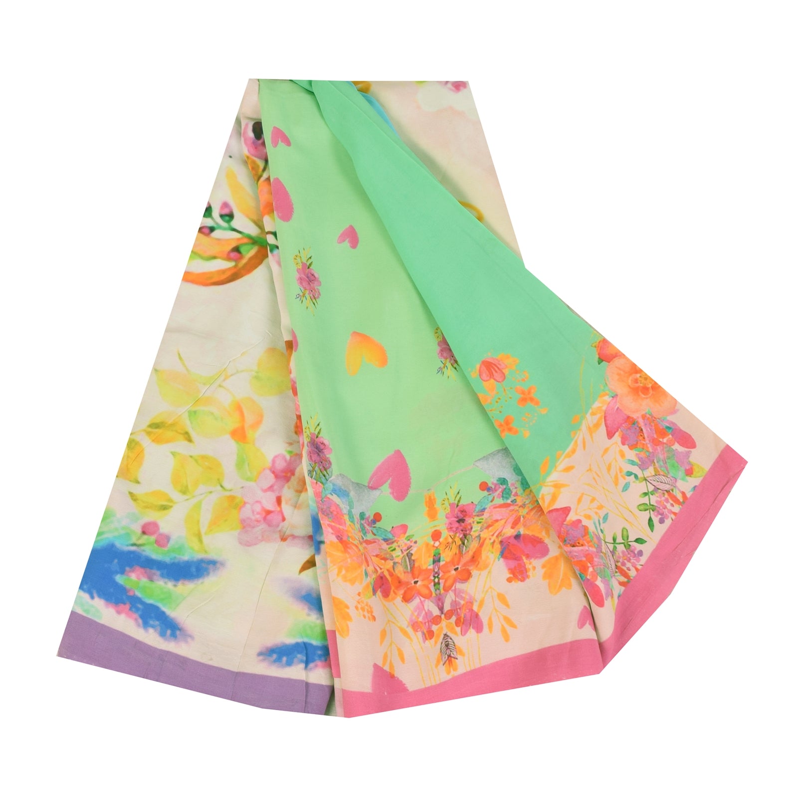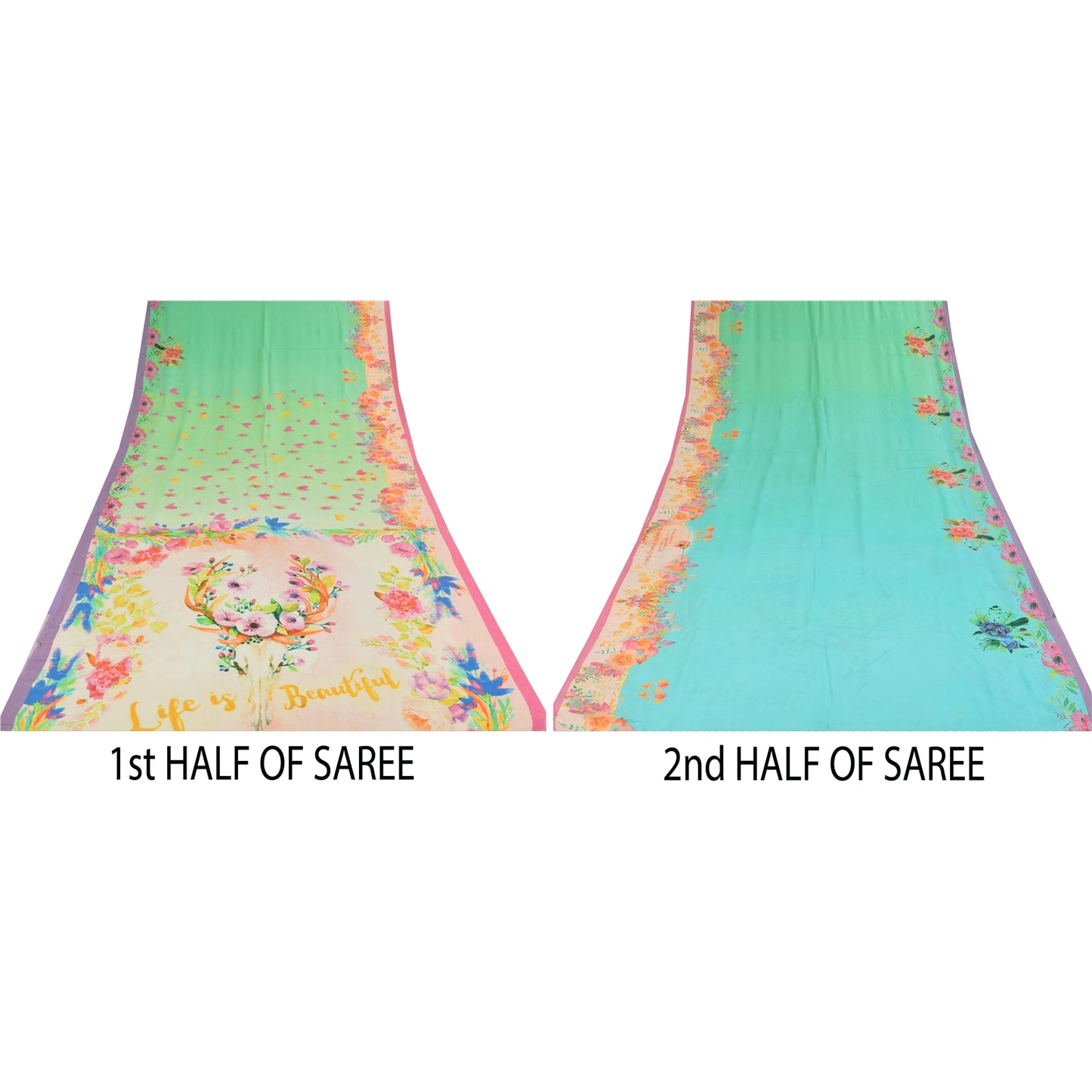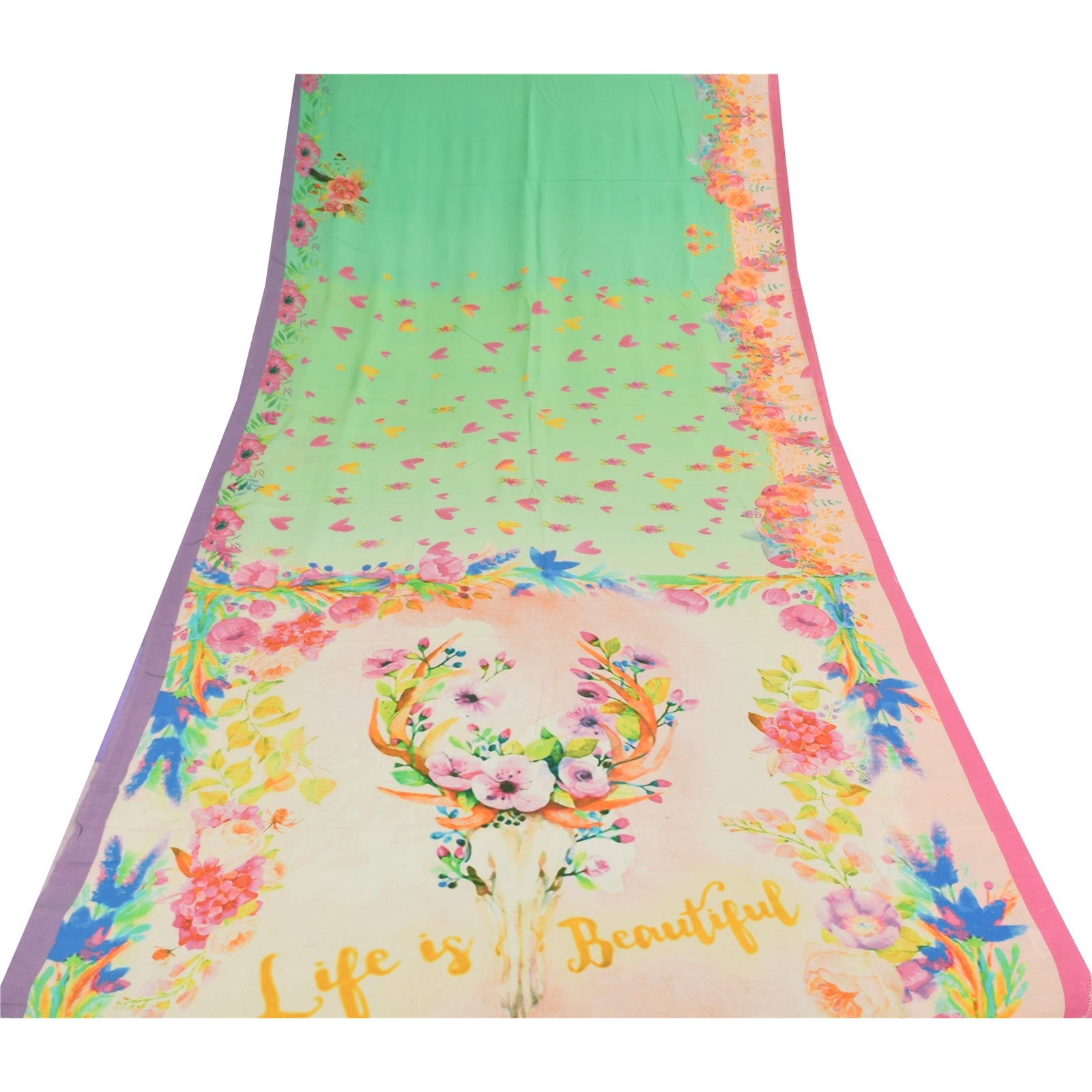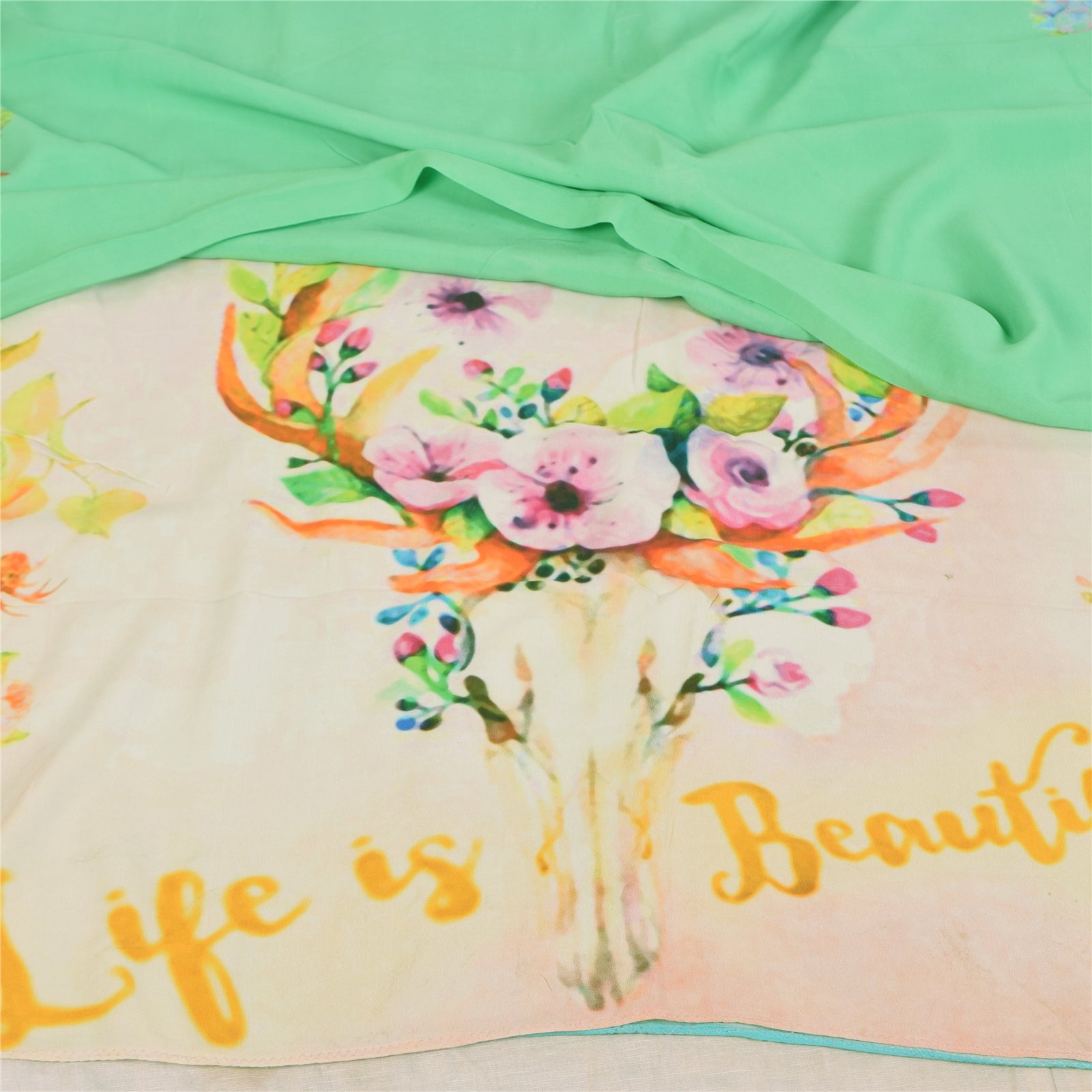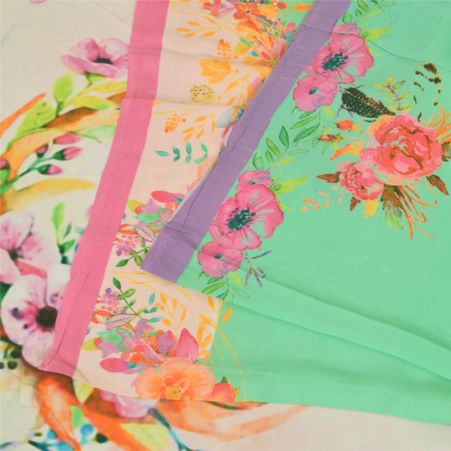 Sanskriti Vintage Sarees Green Pure Georgette Digital Printed Sari 5+yd Sustainable Fabric