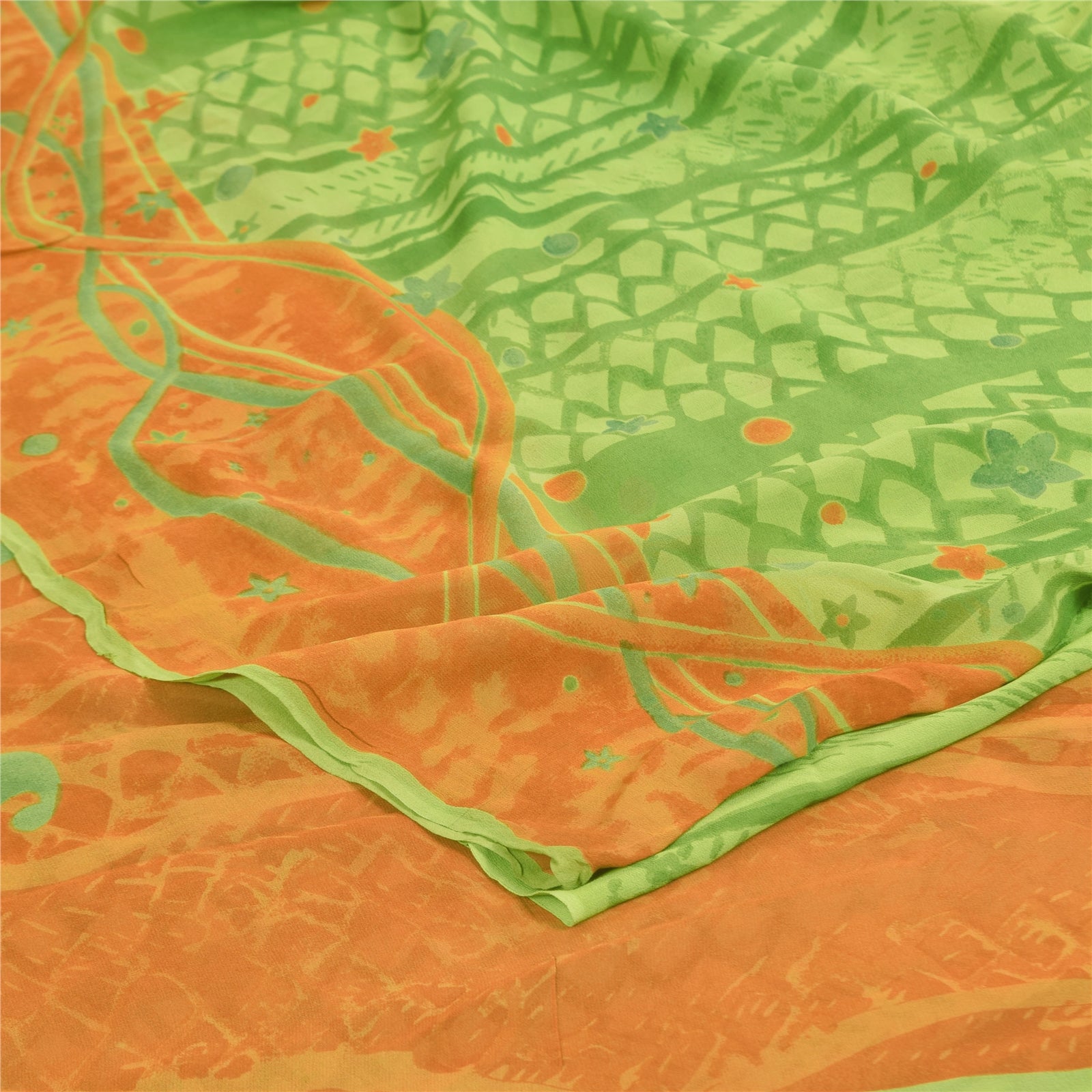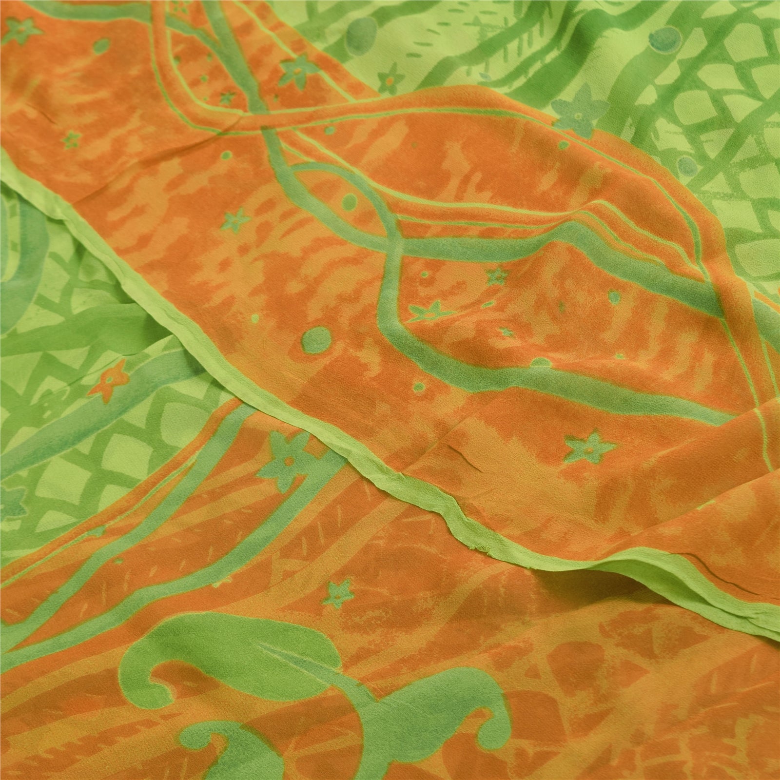 Sanskriti Vintage Sarees Green Pure Georgette Silk Print Sari 5+yd Craft Sustainable Fabric