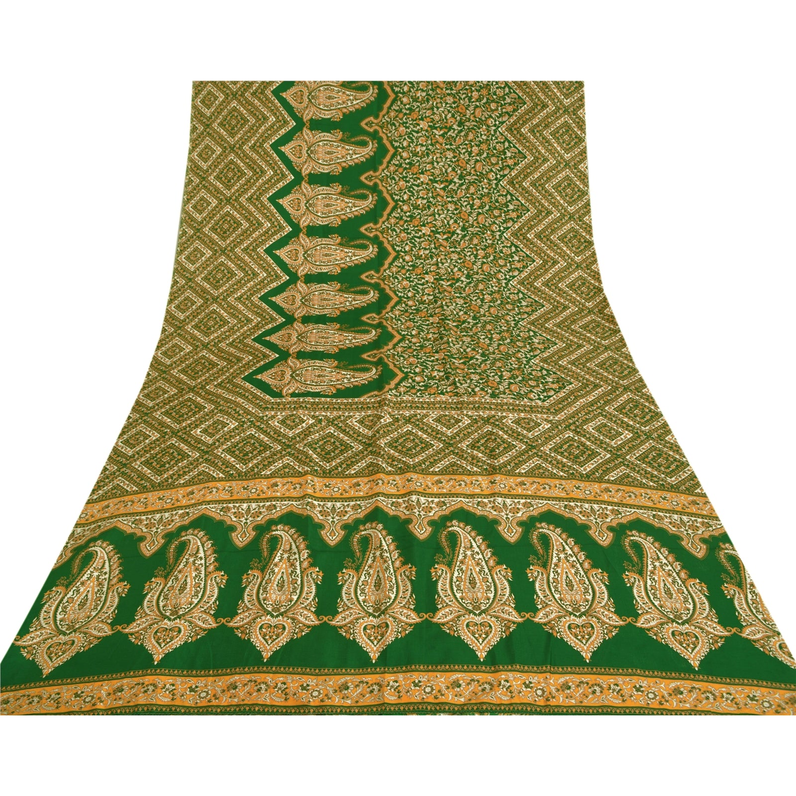 Sanskriti Vintage Sarees Green Pure Silk Indian Printed Sari Floral Craft Sustainable Fabric