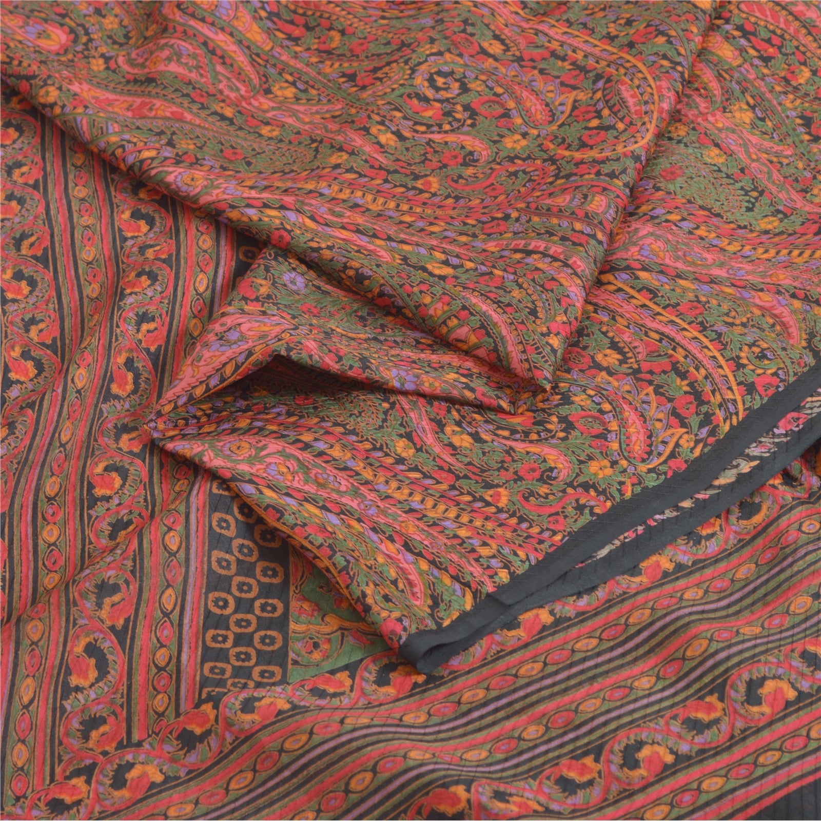 Sanskriti Vintage Sarees Green/Red Indian Blend Silk Print Sari 6yd Craft Sustainable Fabric