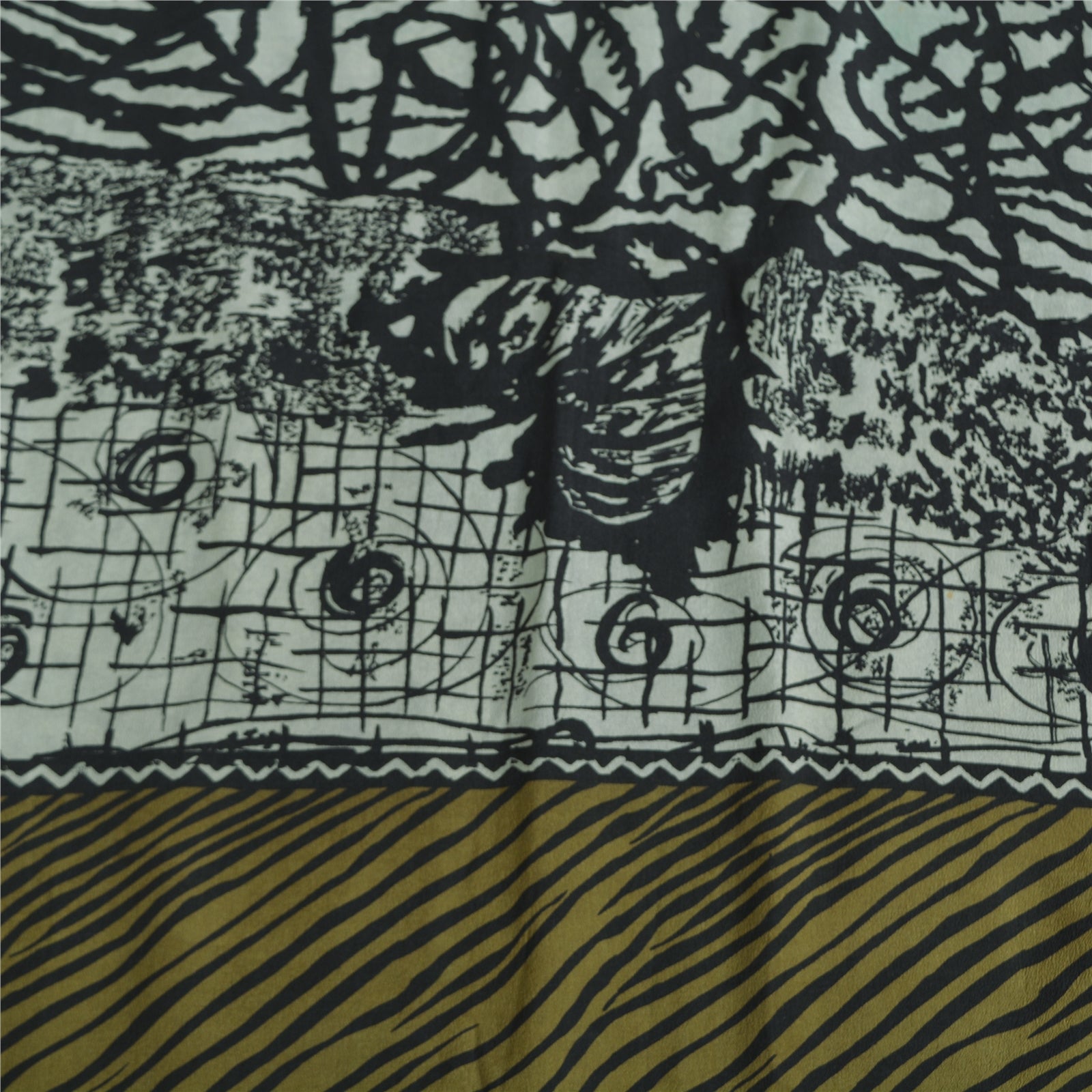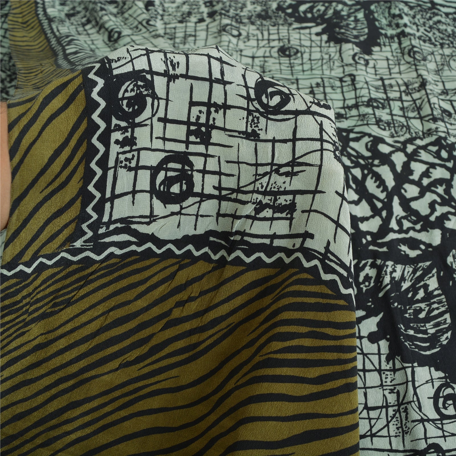 Sanskriti Vintage Sarees Grey Pure Crepe Silk Abstract Printed Sari Craft Sustainable Fabric