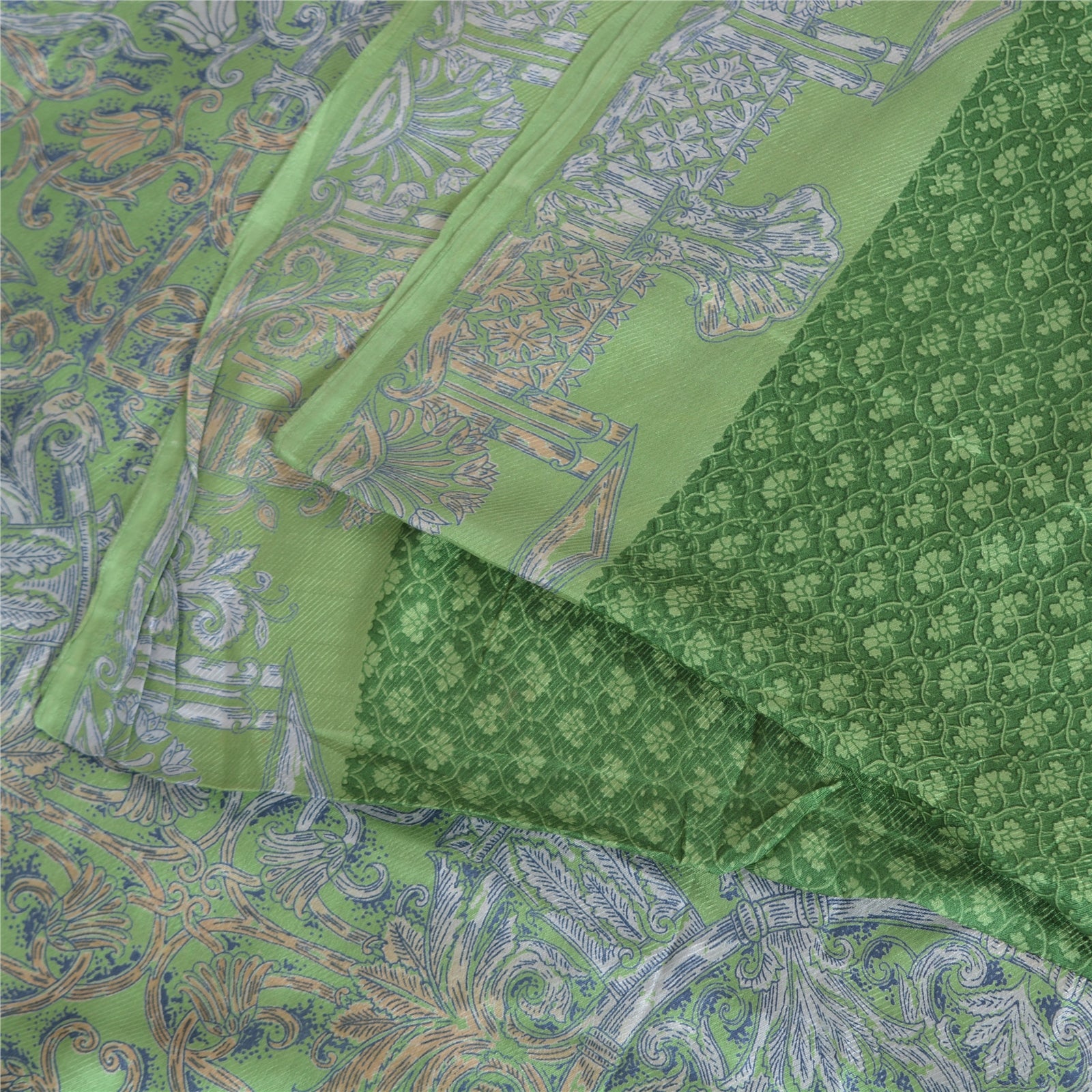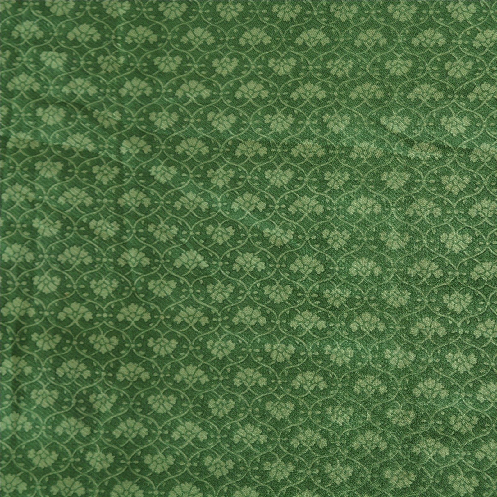 Sanskriti Vintage Sarees Indian Green Pure Silk Printed Sari 5yd Craft Sustainable Fabric