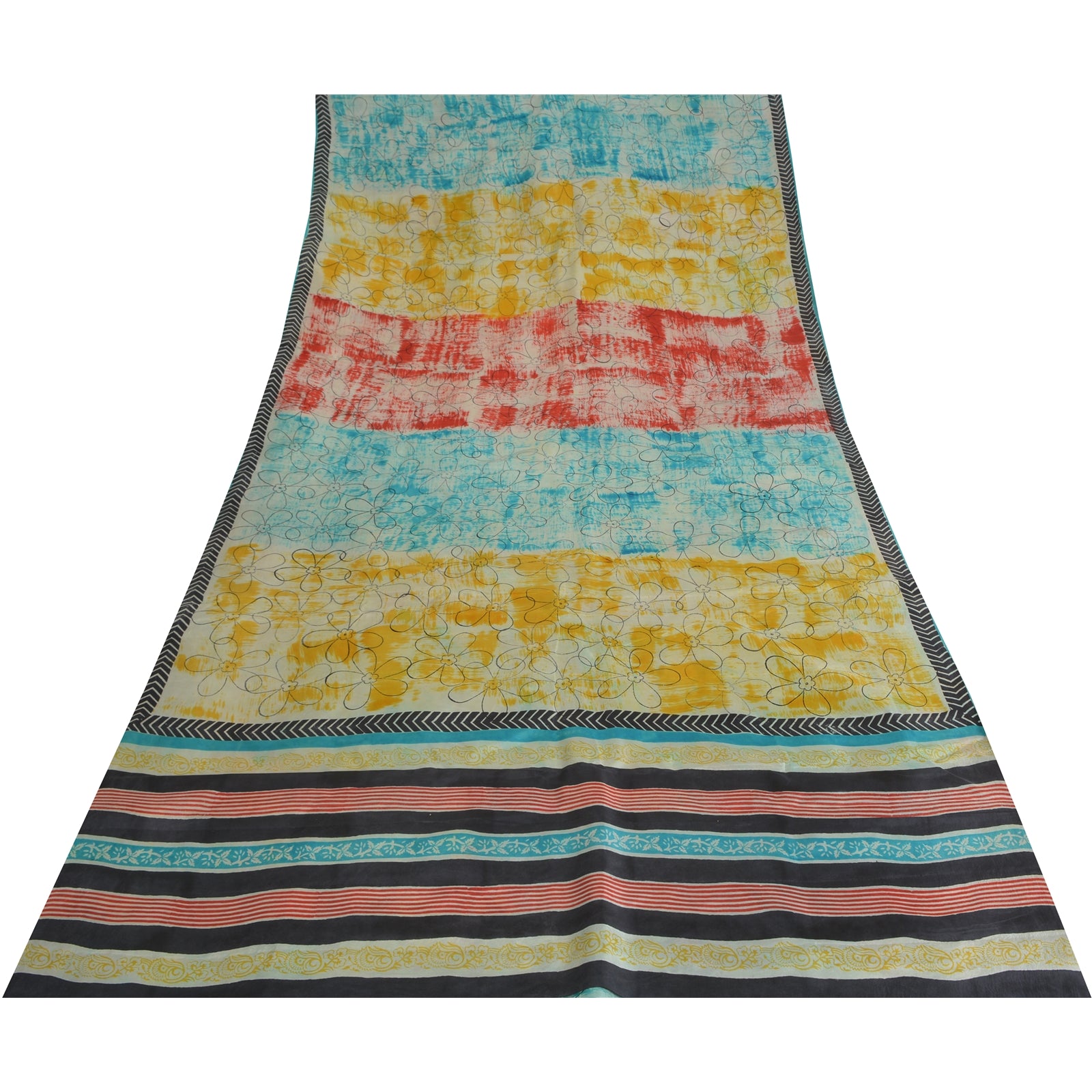 Sanskriti Vintage Sarees Indian Multi Pure Silk Printed Sari Floral Craft Sustainable Fabric
