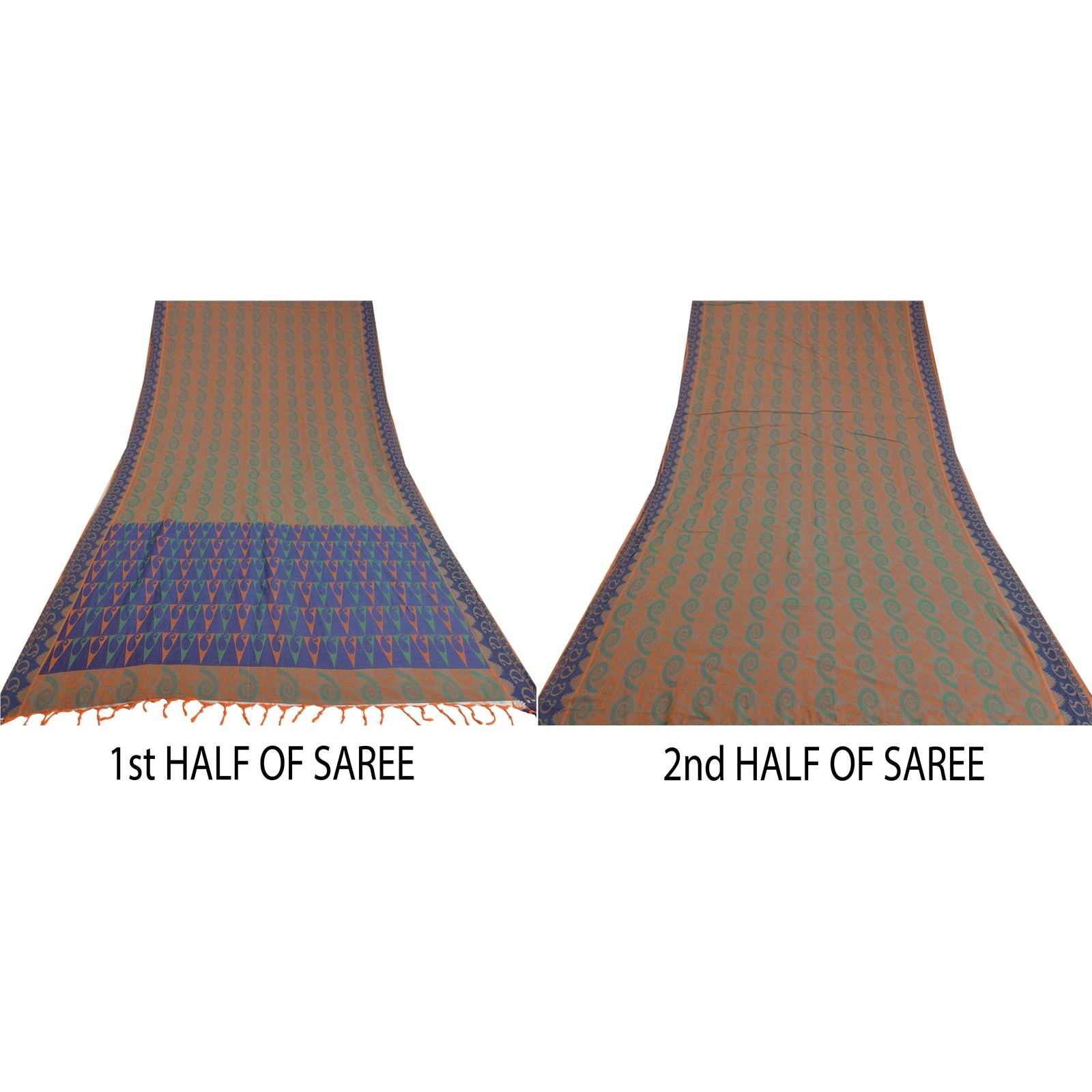 THE ITEM COLOR OR SHADE MAY BE DARKER OR LIGHTER THAN THE PICTURE.' Attractive light peach colored pure cotton woven sari. Pallu & broder has triangle & paisley design with woven work. Similar work in center part of saree. This unique vintage saree can be used for various crafting ideas even if you don't want to use it as a sari. Design a dress, use it as a as window dressing, upholstery, sarongs, throw, dress making and table linen much. International buyers please note: Import duties, taxes, and charges are not included in the item price or postage cost. These charges are the buyer's responsibility. Please check with your country's customs office to determine what these additional costs will be prior to bidding or buying.Buyer will pay custom duty/tax. It is calculated and charged differently by every country. As a seller I do not have any control over it.VAT or sales tax is calculated by the platform at the time of checkout. Customs charge is payable at the time of delivery.