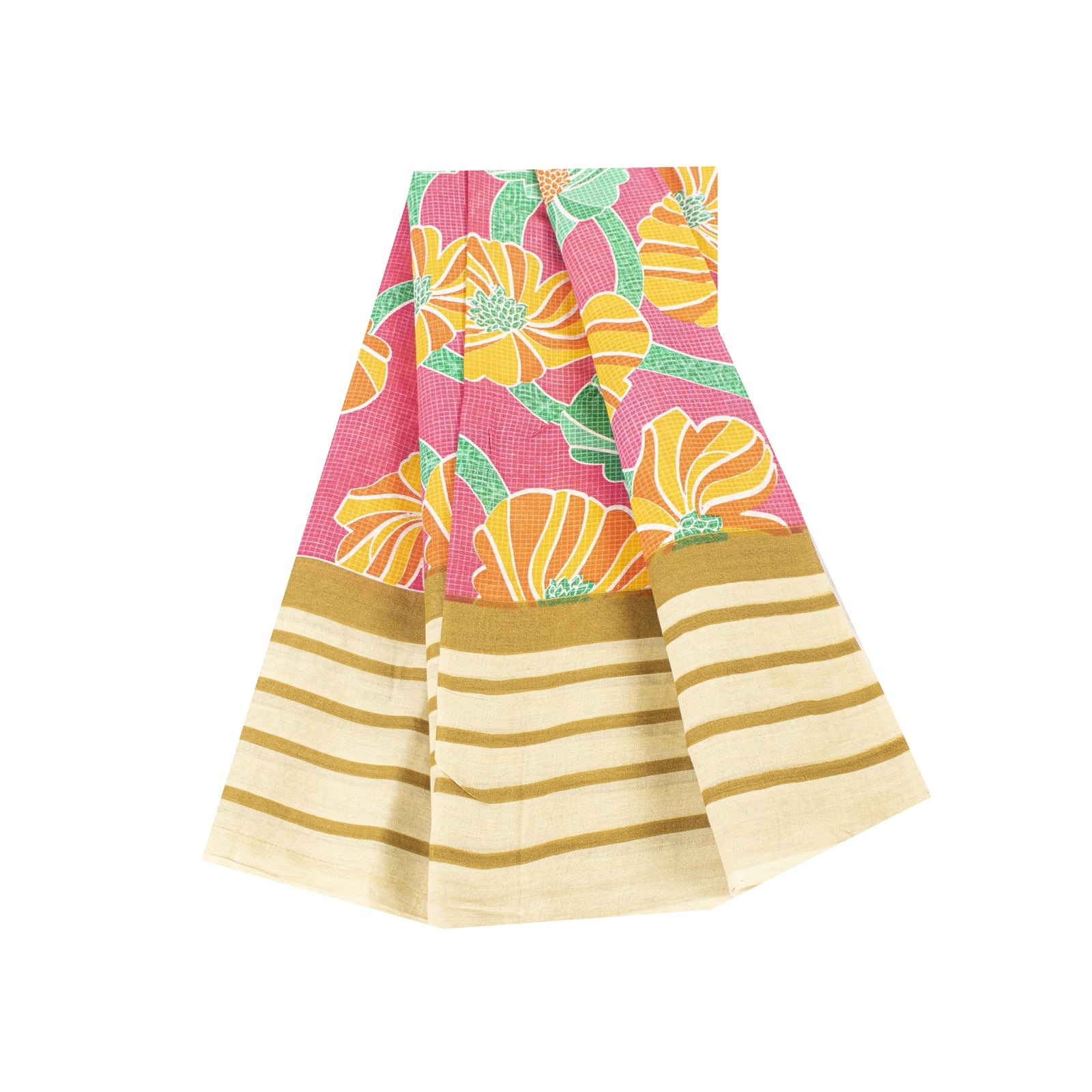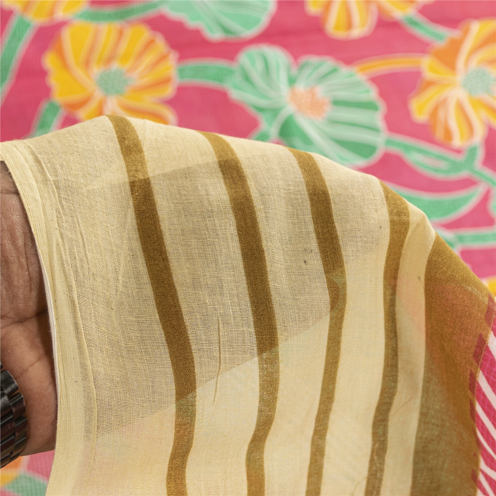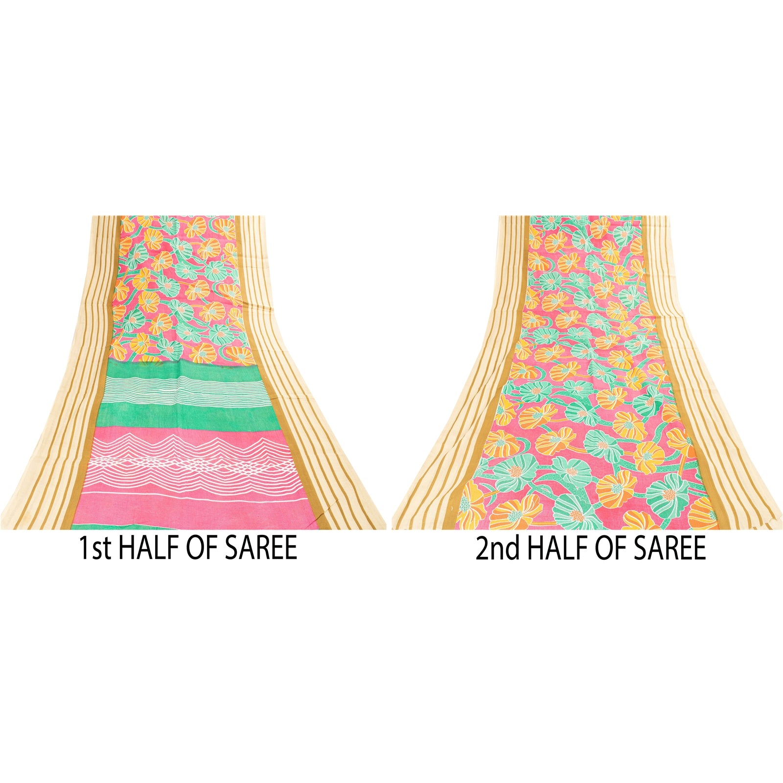 Sanskriti Vintage Sarees Indian Pink Pure Cotton Printed Sari 5+yd Craft Fabric