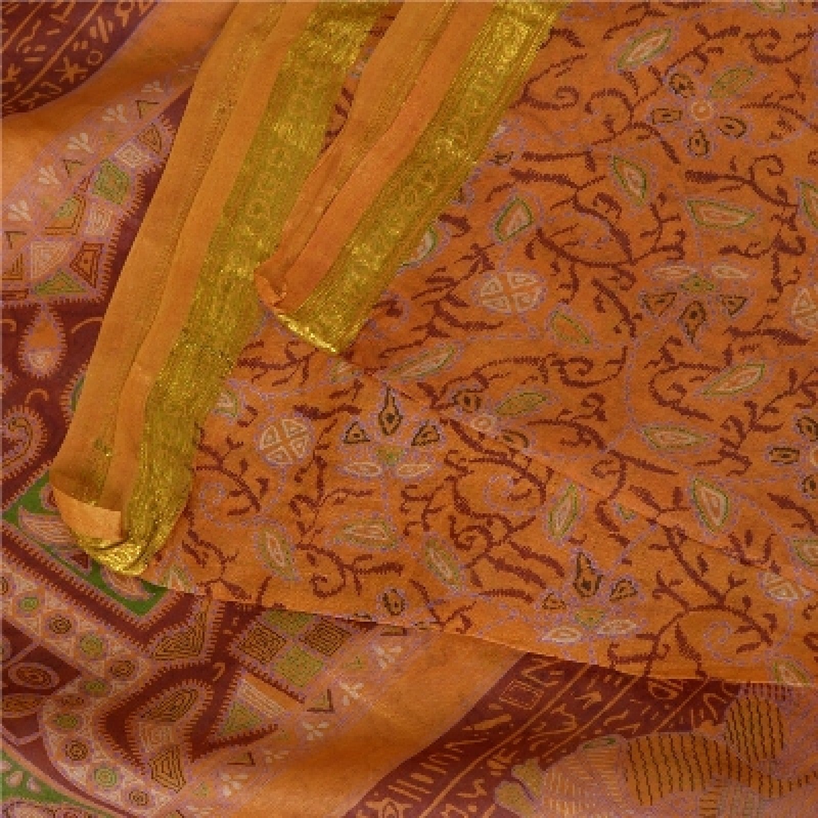 Sanskriti Vintage Sarees Indian Saffron Printed Pure Silk Sari 5yd Craft Sustainable Fabric
