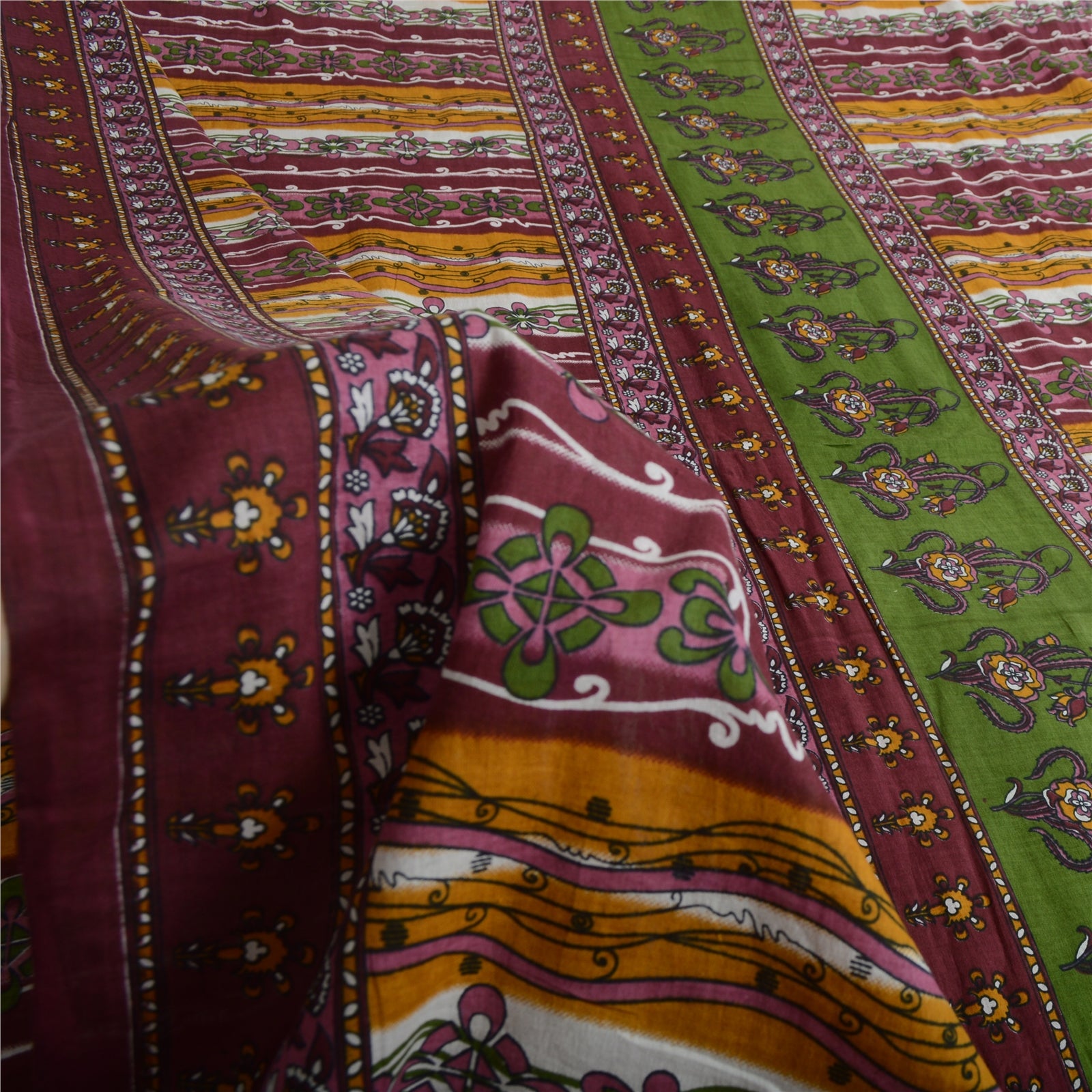 Sanskriti Vintage Sarees Multi Indian Pure Cotton Printed Sari 5yd Craft Sustainable Fabric