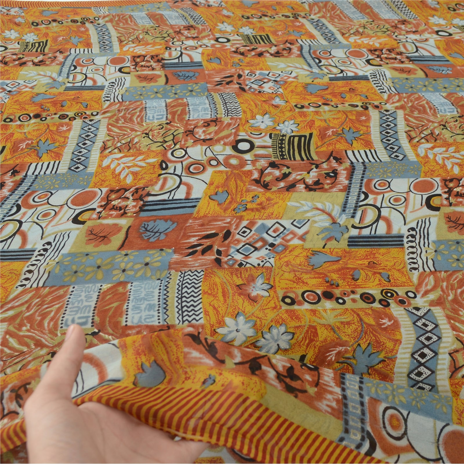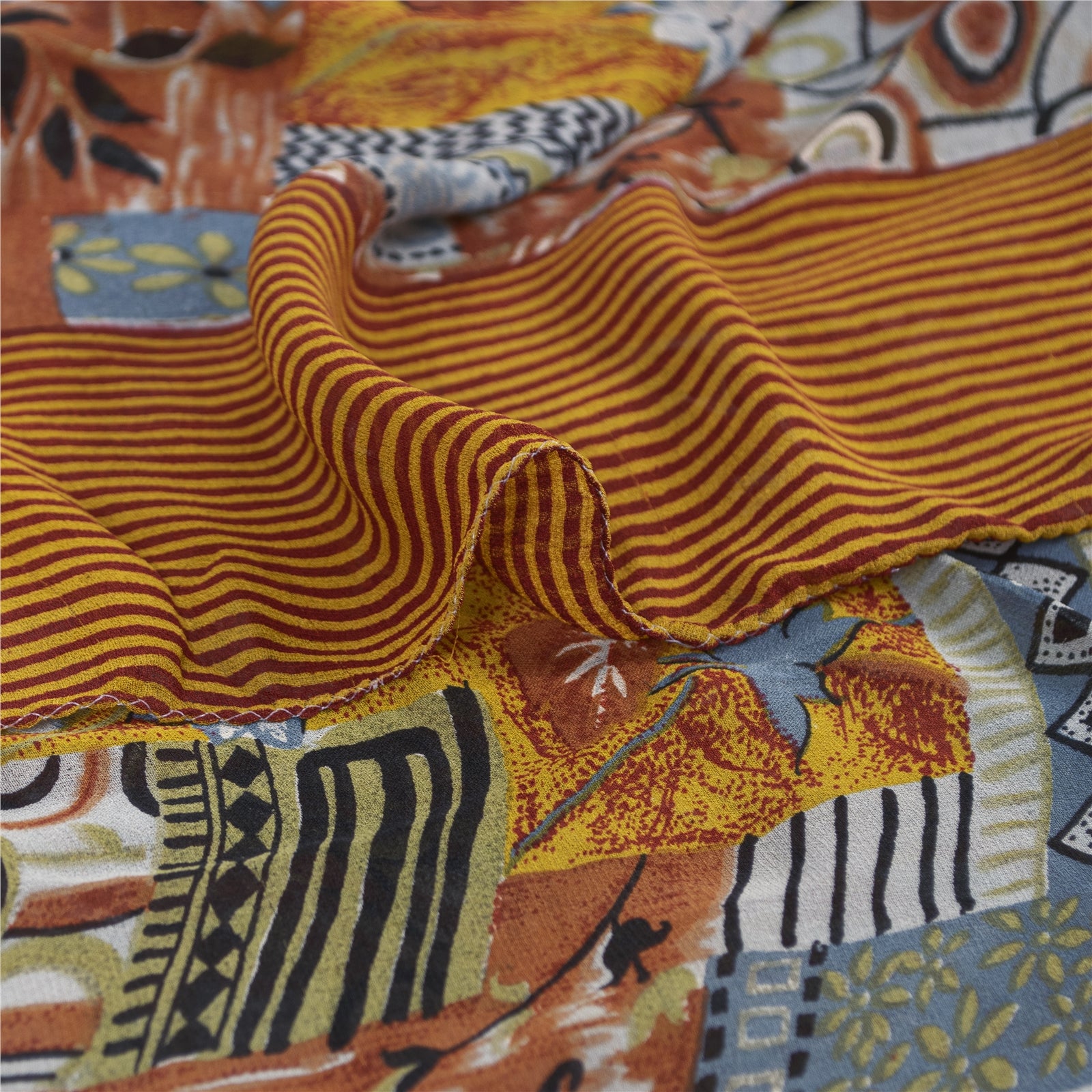 Sanskriti Vintage Sarees Multi Pure Georgette Silk Printed Sari 5yd Craft Fabric