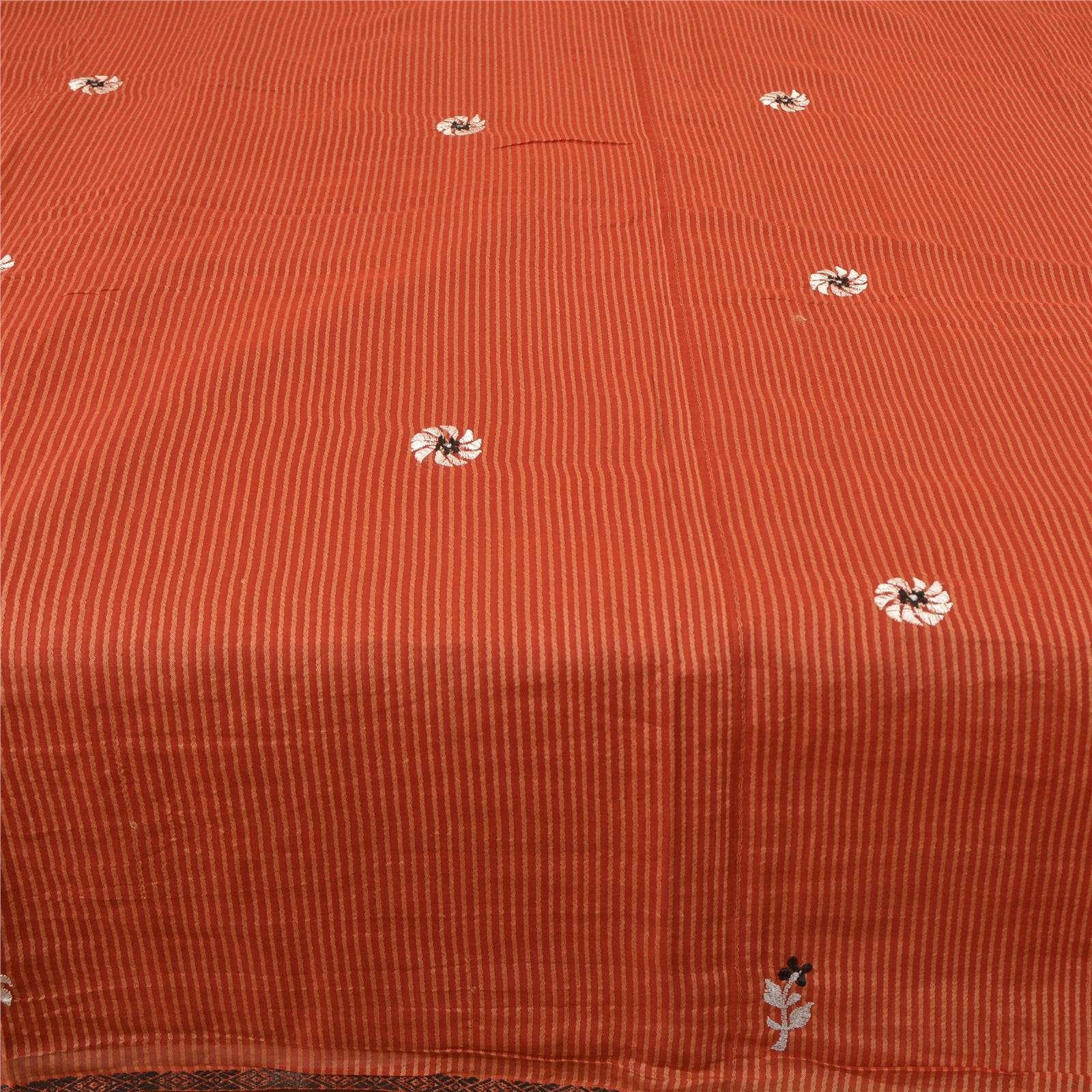 Sanskriti Vintage Sarees Orange Embroidered Pure Cotton Sari Woven Craft Sustainable Fabric