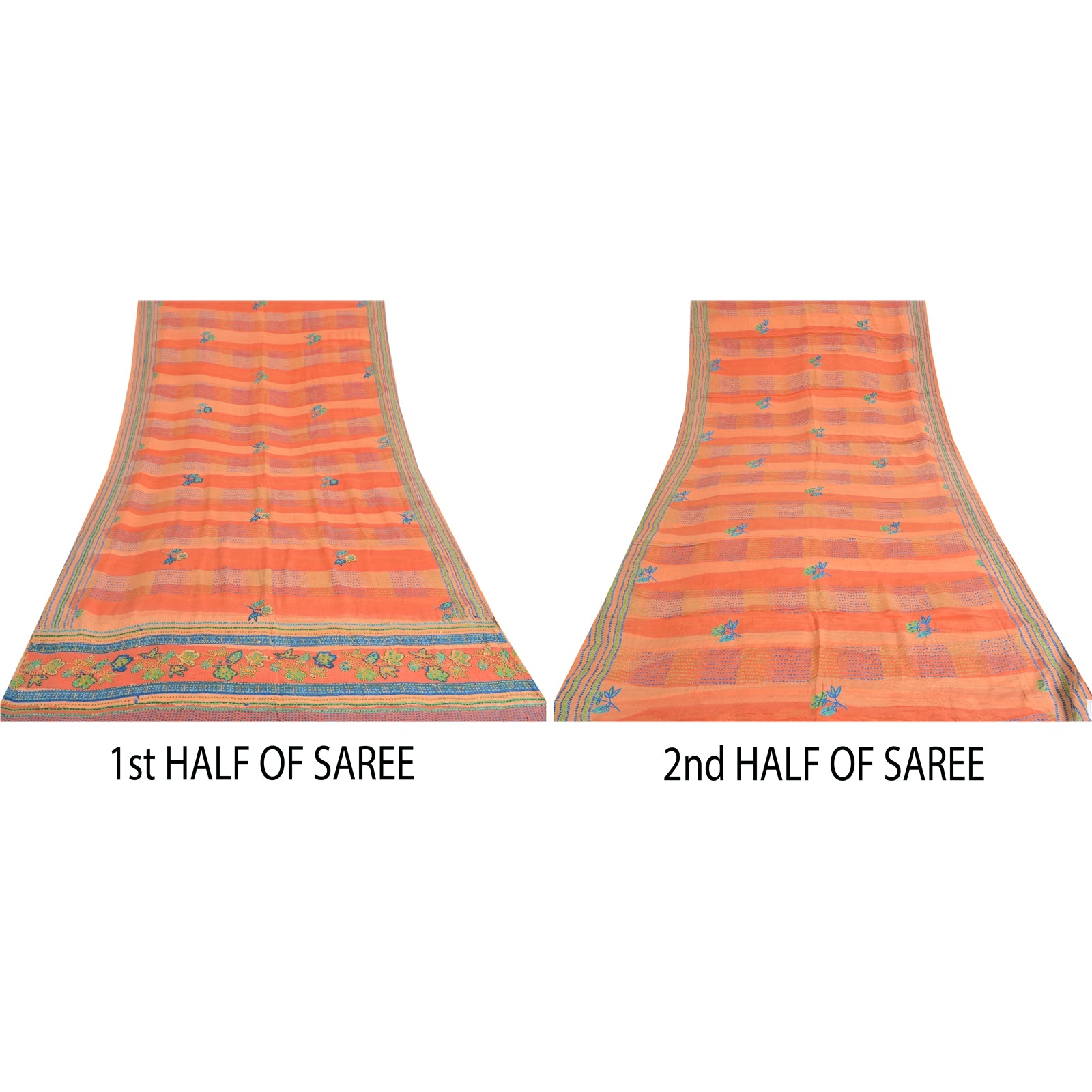 THE ITEM COLOR OR SHADE MAY BE DARKER OR LIGHTER THAN THE PICTURE.' • Beautiful orange & peach colored printed & hand embroidered pure crepe silk saree . • Pallu & Border has printed geometric design with thread & sequins work. • Similar work in center part of sari . This unique vintage saree can be used for various crafting ideas even if you don't want to use it as a sari. Design a dress, use it as a as window dressing, upholstery, sarongs, throw, dress making and table linen much more. Let your creative juices flow and use this decorated Sustainable Fabric in multiple fashion. International buyers please note: Import duties, taxes, and charges are not included in the item price or postage cost. These charges are the buyer's responsibility. Please check with your country's customs office to determine what these additional costs will be prior to bidding or buying.Buyer will pay custom duty/tax. It is calculated and charged differently by every country. As a seller I do not have any control over it. VAT or sales tax is calculated by the platform at the time of checkout. Customs charge is payable at the time of delivery.