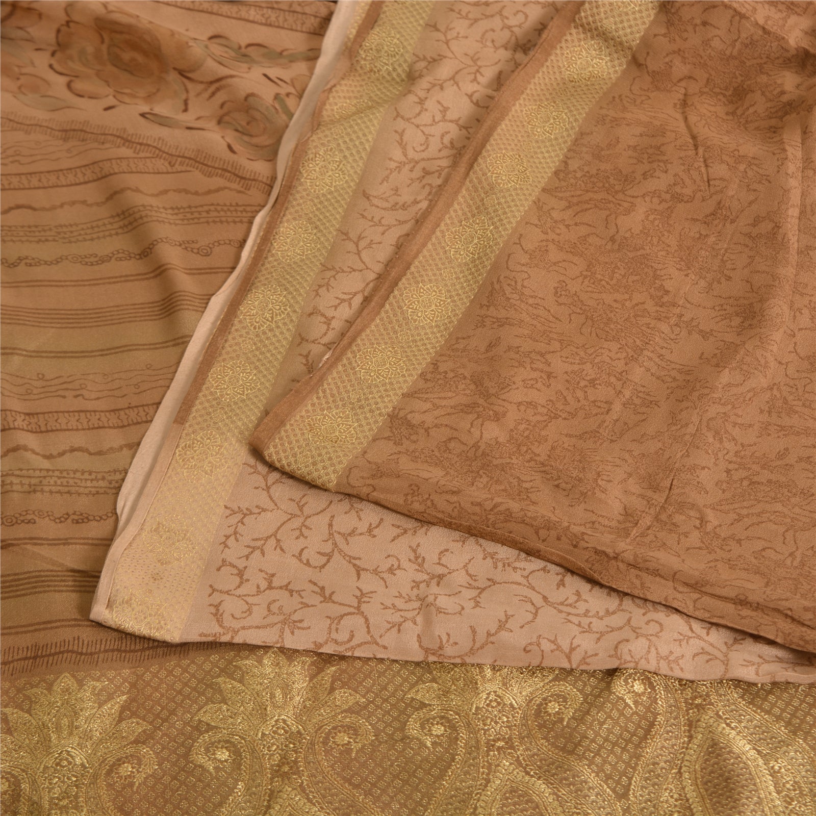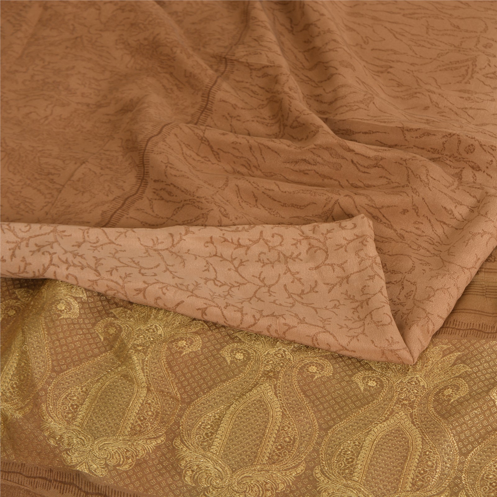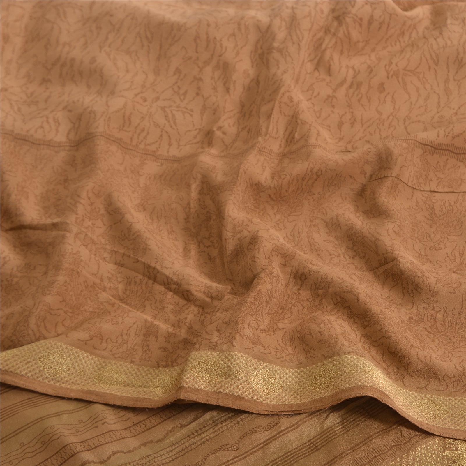 Sanskriti Vintage Sarees Peach Pure Crepe Silk Print Woven Border Sari Sustainable Fabric