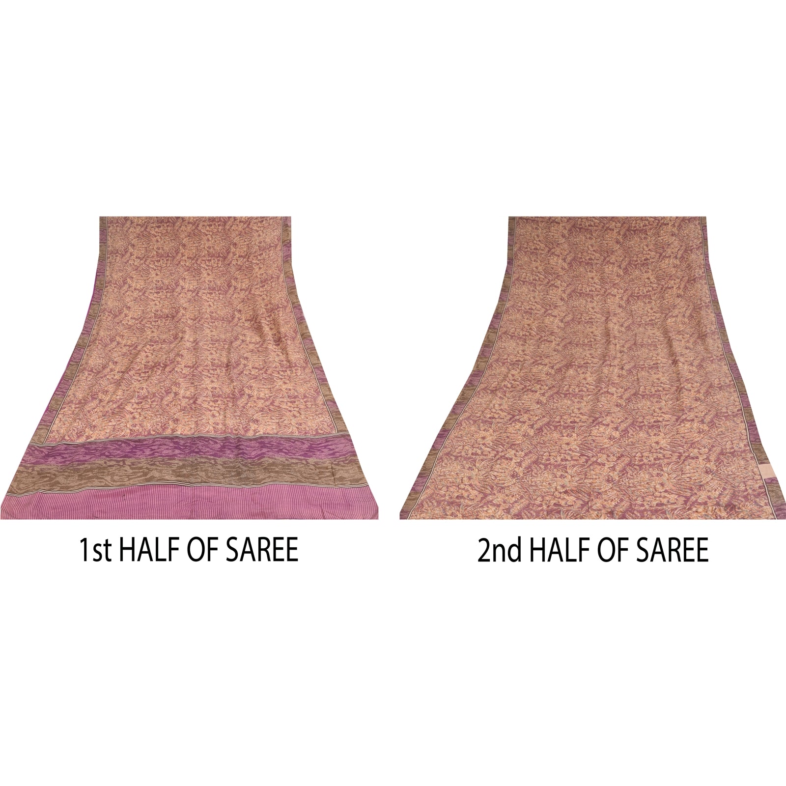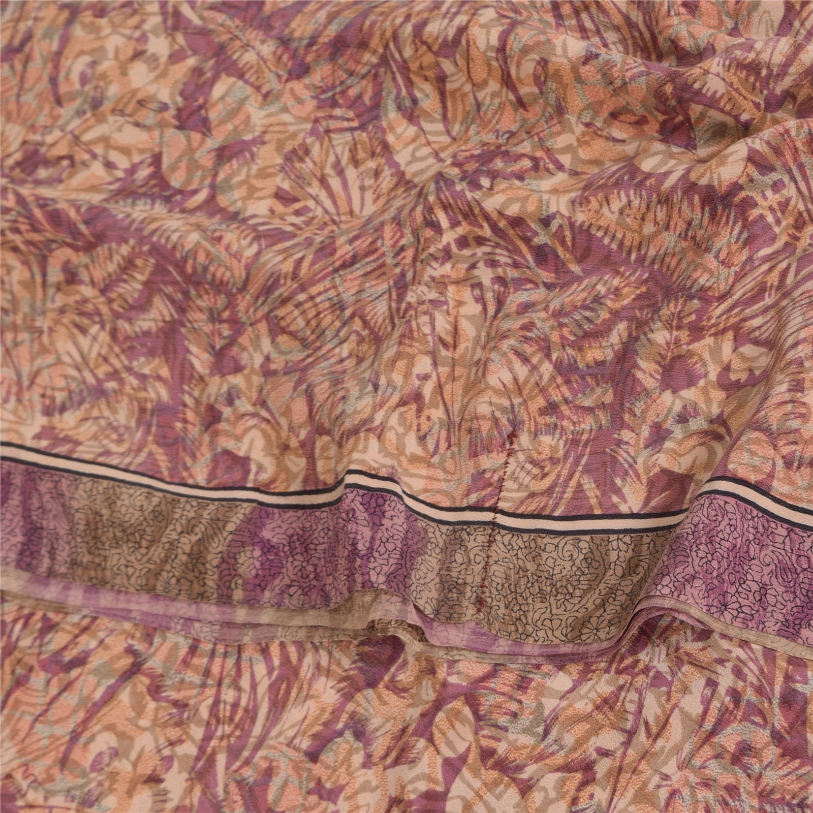 Sanskriti Vintage Sarees Peach/Purple Pure Crepe Print Sari 6yd Craft Sustainable Fabric