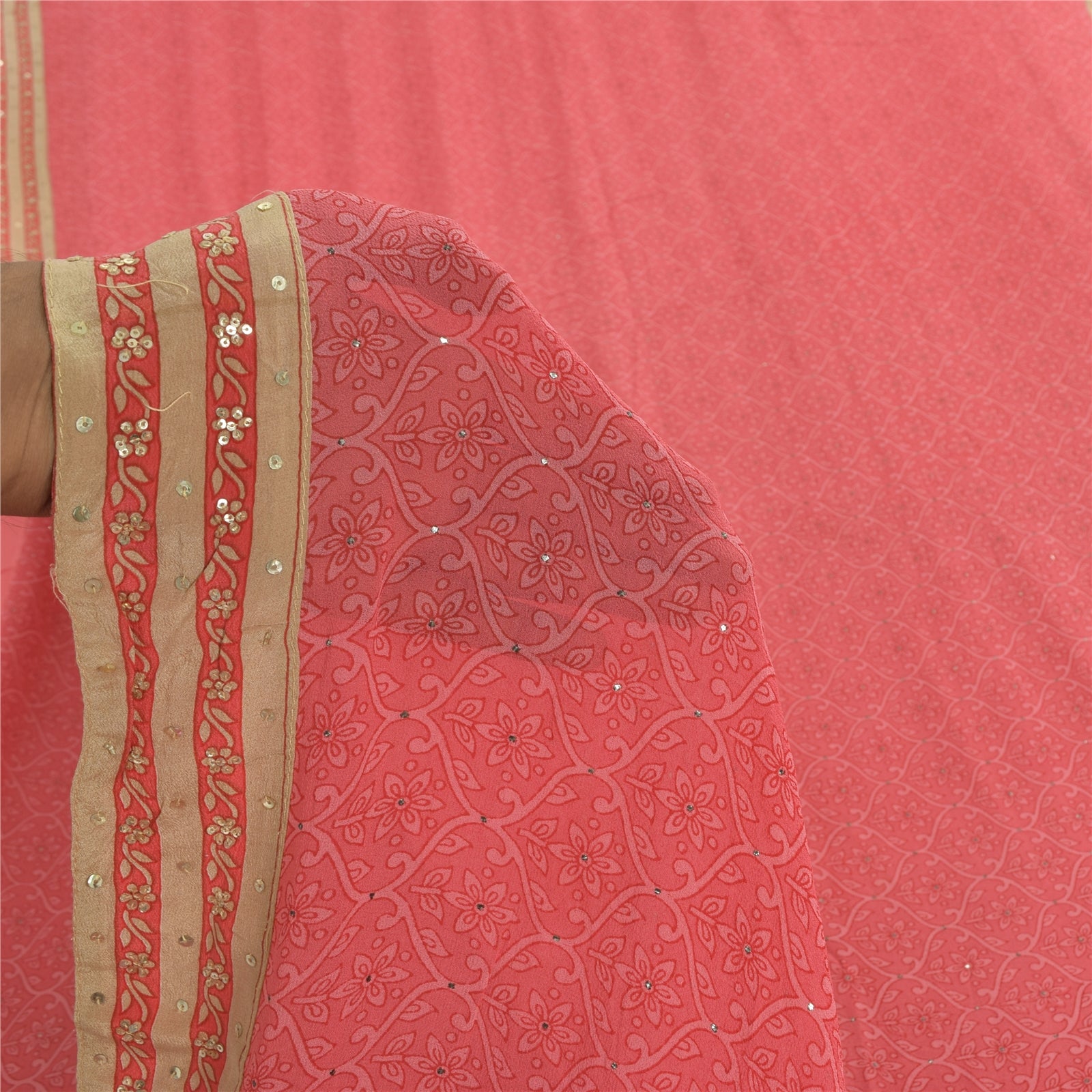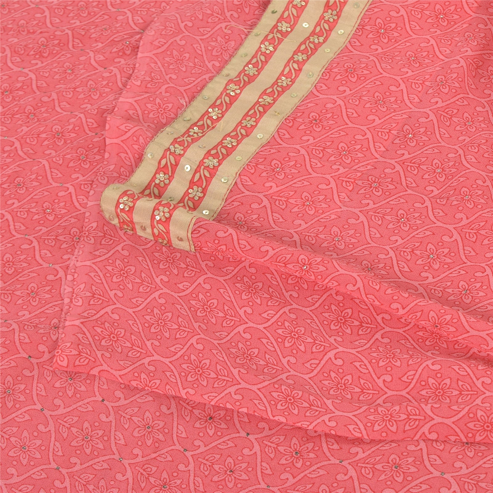 THE ITEM COLOR OR SHADE MAY BE DARKER OR LIGHTER THAN THE PICTURE.' Beautiful pink colored pure georgette silk printed & mukesh work saree. Border has printed floral design with sequins work on Sustainable Fabric patch. Printed floral design & mukesh work in center part of saree. What is special about this saree? Brilliant design on soft Sustainable Fabric is really enhancing the beauty of the saree. This unique vintage saree can be used for various crafting ideas even if you don't want to use it as a sari. Design a dress, use it as a as window dressing, upholstery, sarongs, throw, dress making and table linen much more. Let your creative juices flow and use this decorated Sustainable Fabric in multiple fashion. International buyers please note: Import duties, taxes, and charges are not included in the item price or postage cost. These charges are the buyer's responsibility. Please check with your country's customs office to determine what these additional costs will be prior to bidding or buying.Buyer will pay custom duty/tax. It is calculated and charged differently by every country. As a seller I do not have any control over it. VAT or sales tax is calculated by the platform at the time of checkout. Customs charge is payable at the time of delivery. PRG-14204