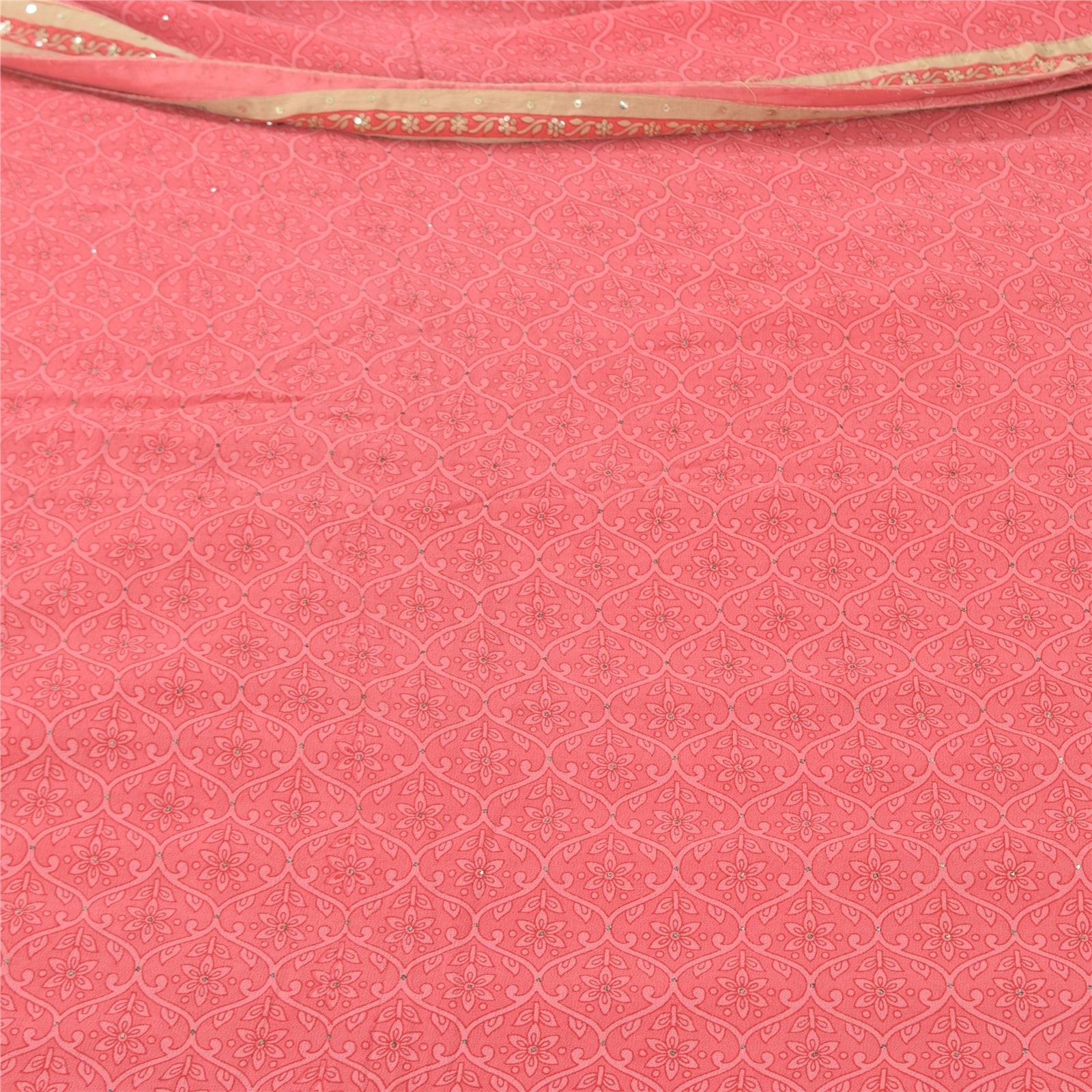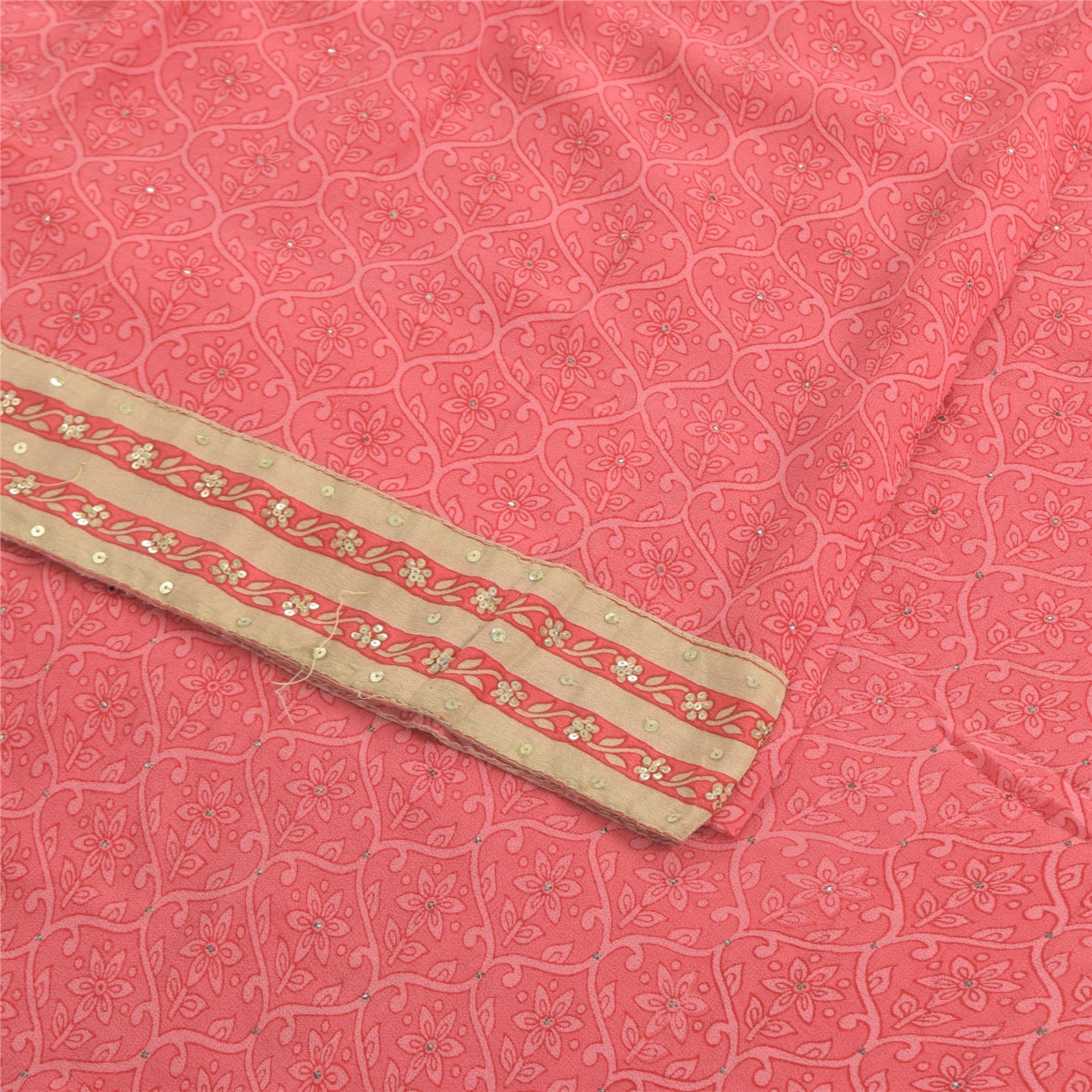 Sanskriti Vintage Sarees Pink Mukesh Pure Georgette Silk Print Sari Craft Sustainable Fabric