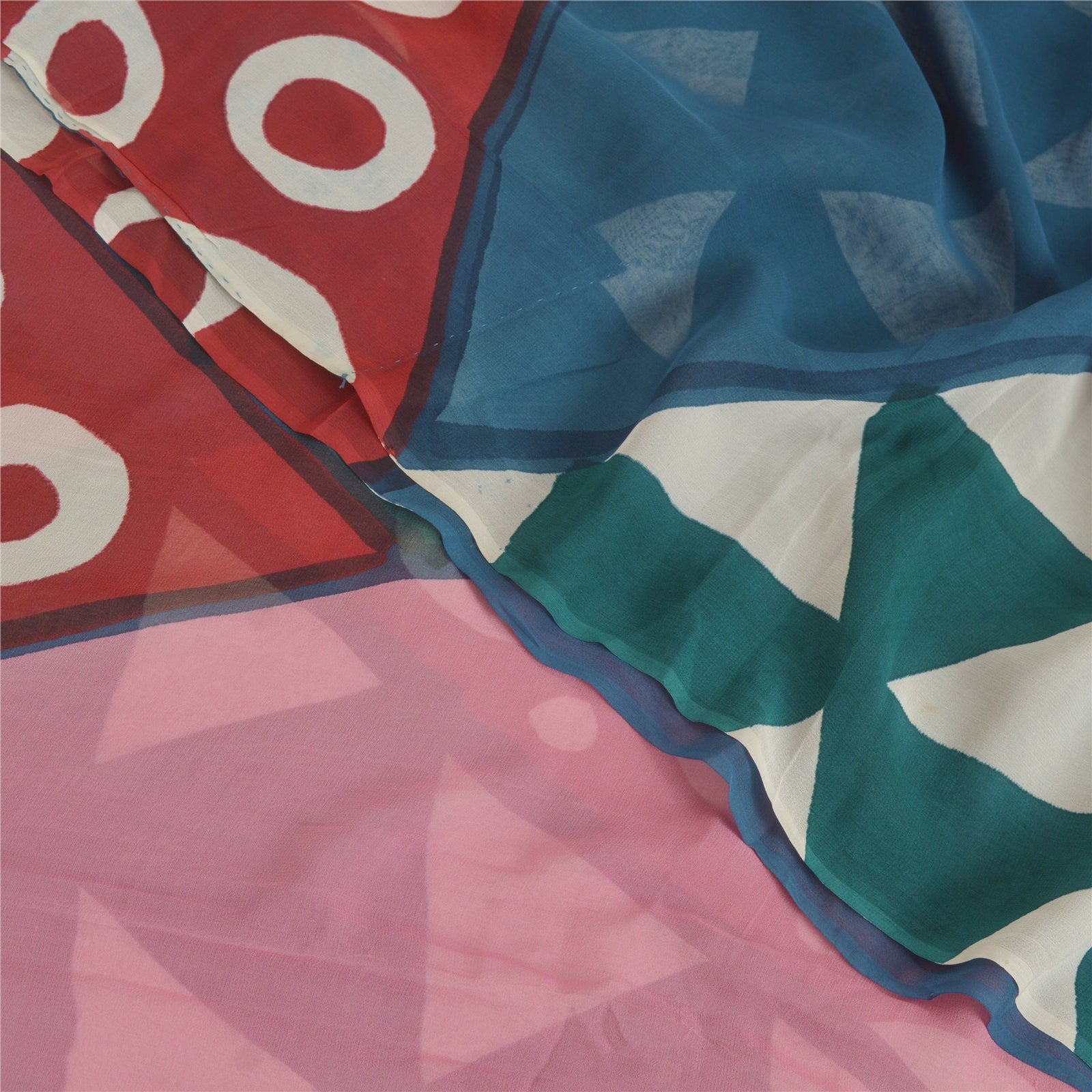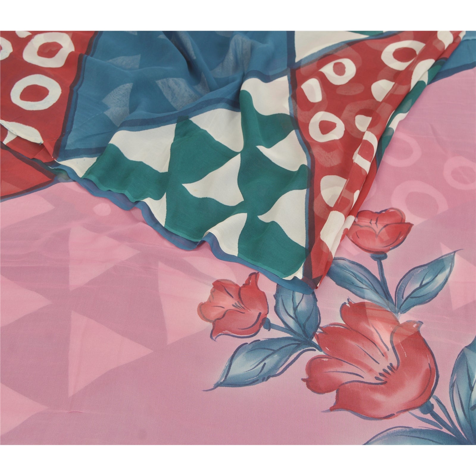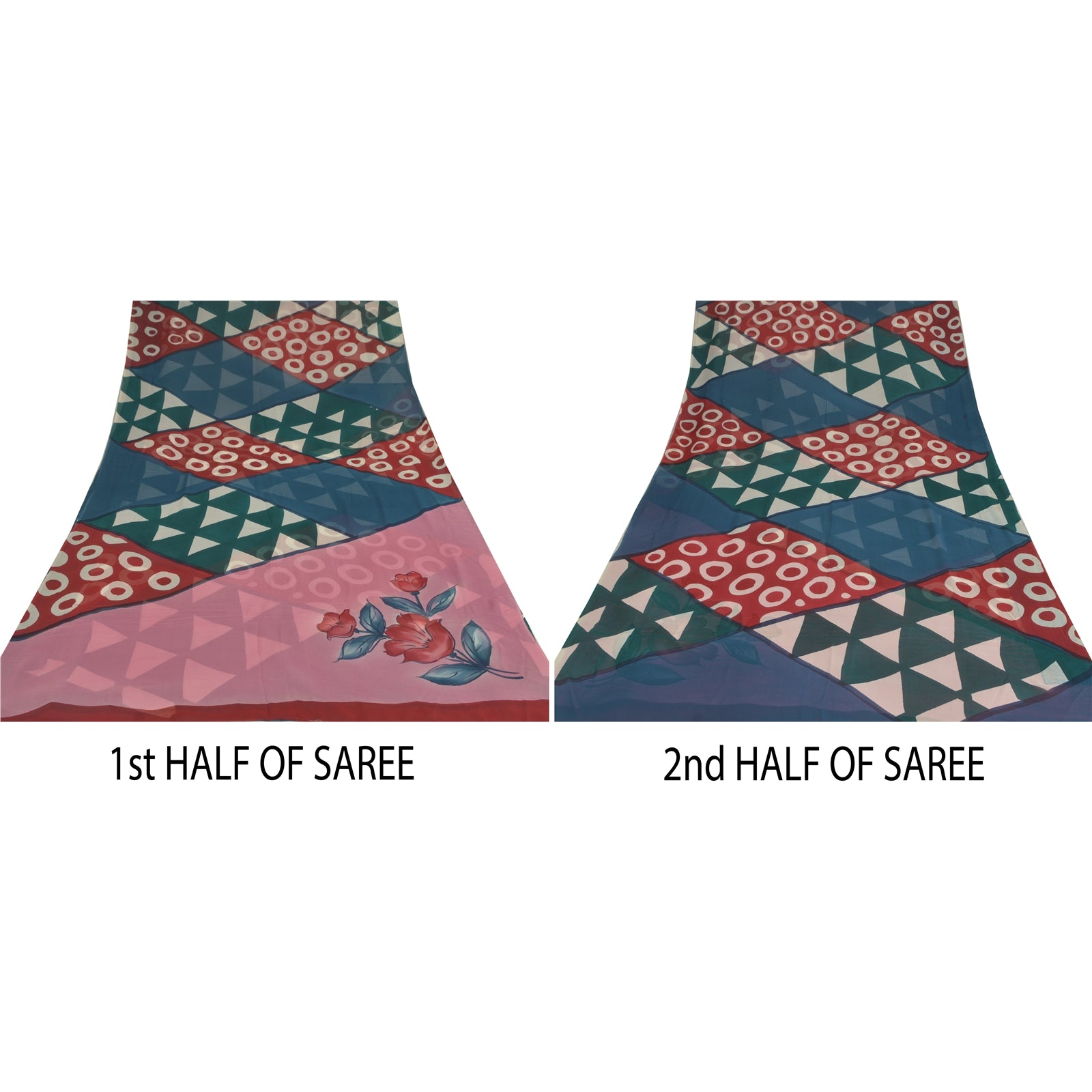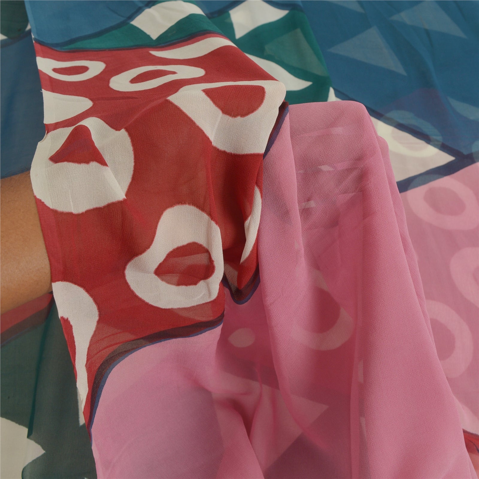 Sanskriti Vintage Sarees Printed Sari Pure Georgette Silk 5YD Soft Craft Sustainable Fabric