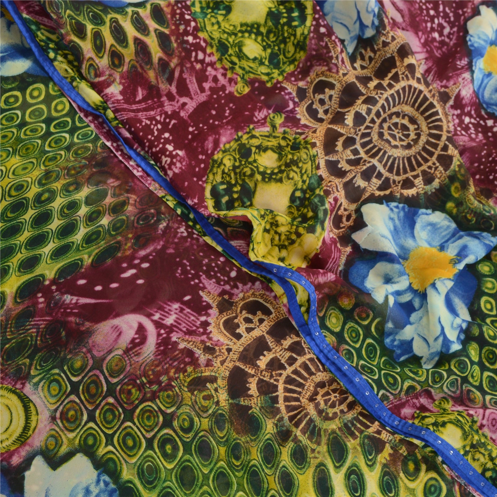'THE ITEM COLOR OR SHADE MAY BE DARKER OR LIGHTER THAN THE PICTURE.' • Beautiful purple & green colored digital printed poly georgette saree . • All over sari printed floral & abstract design . • Border has blue fabric patch work with silver sequins work. This unique vintage saree can be used for various crafting ideas even if you don't want to use it as a sari. Design a dress, use it as a throw, as window dressing, beachwear, sarongs, table linen and much more. Let your creative juices flow and use this decorated fabric in multiple fashion. 'International buyers please note: Import duties, taxes, and charges are not included in the item price or postage cost. These charges are the buyer's responsibility. Please check with your country's customs office to determine what these additional costs will be prior to bidding or buying. Buyer will pay custom duty/tax. It is calculated and charged differently by every country. As a seller I do not have any control over it. VAT or sales tax is calculated by the platform at the time of checkout. Customs charge is payable at the time of delivery.'