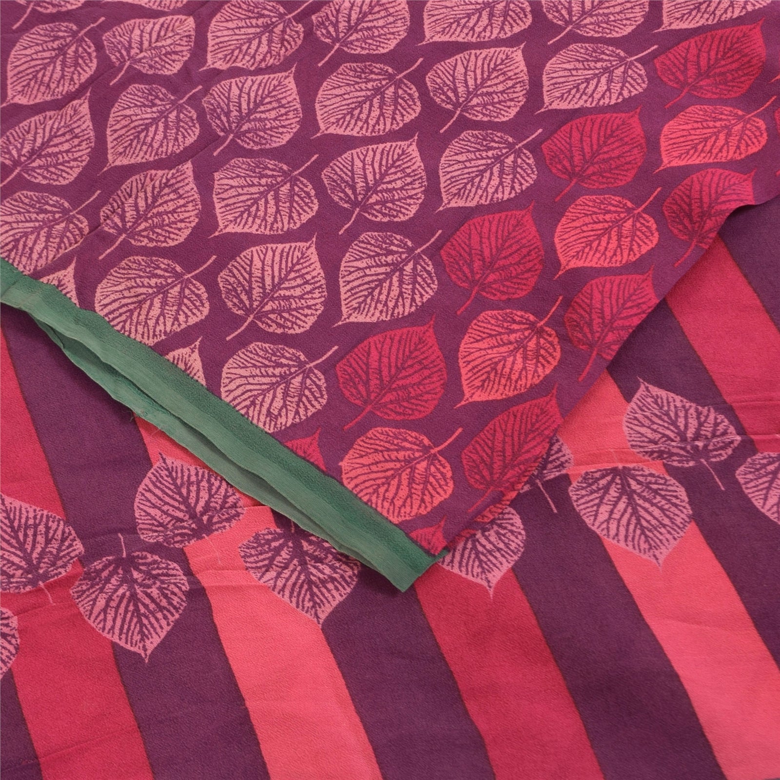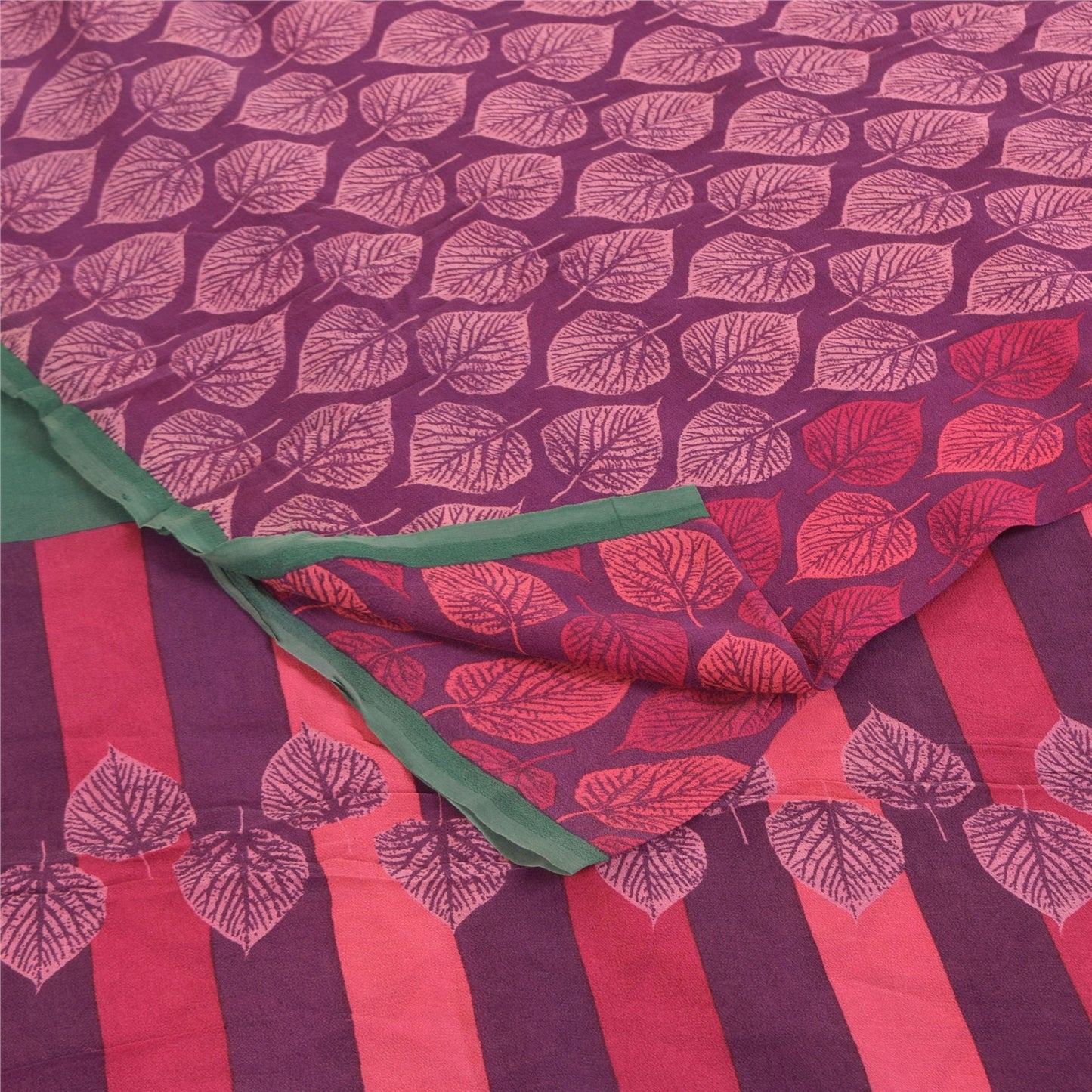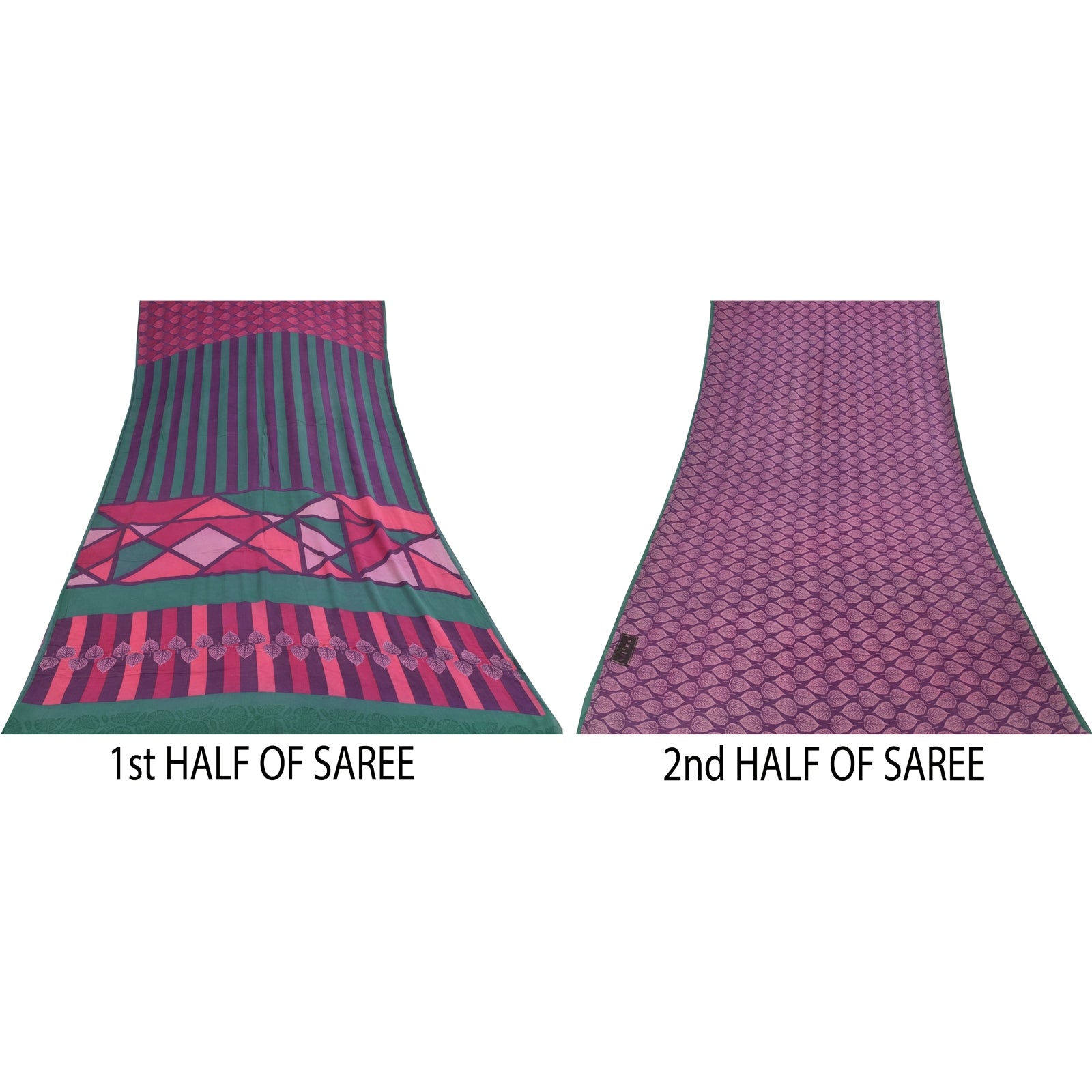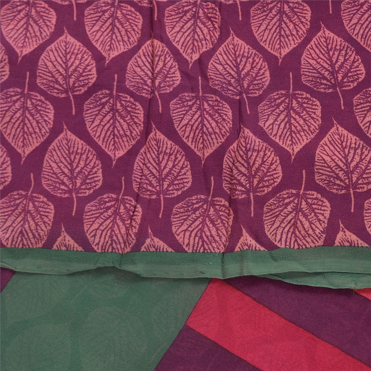 Sanskriti Vintage Sarees Purple Pure Georgette Silk Print Sari 5+yd Craft Sustainable Fabric