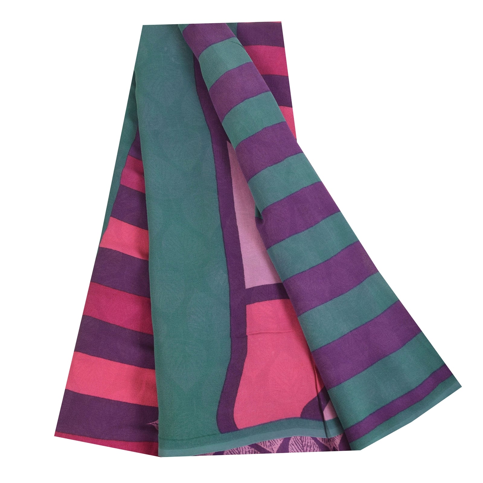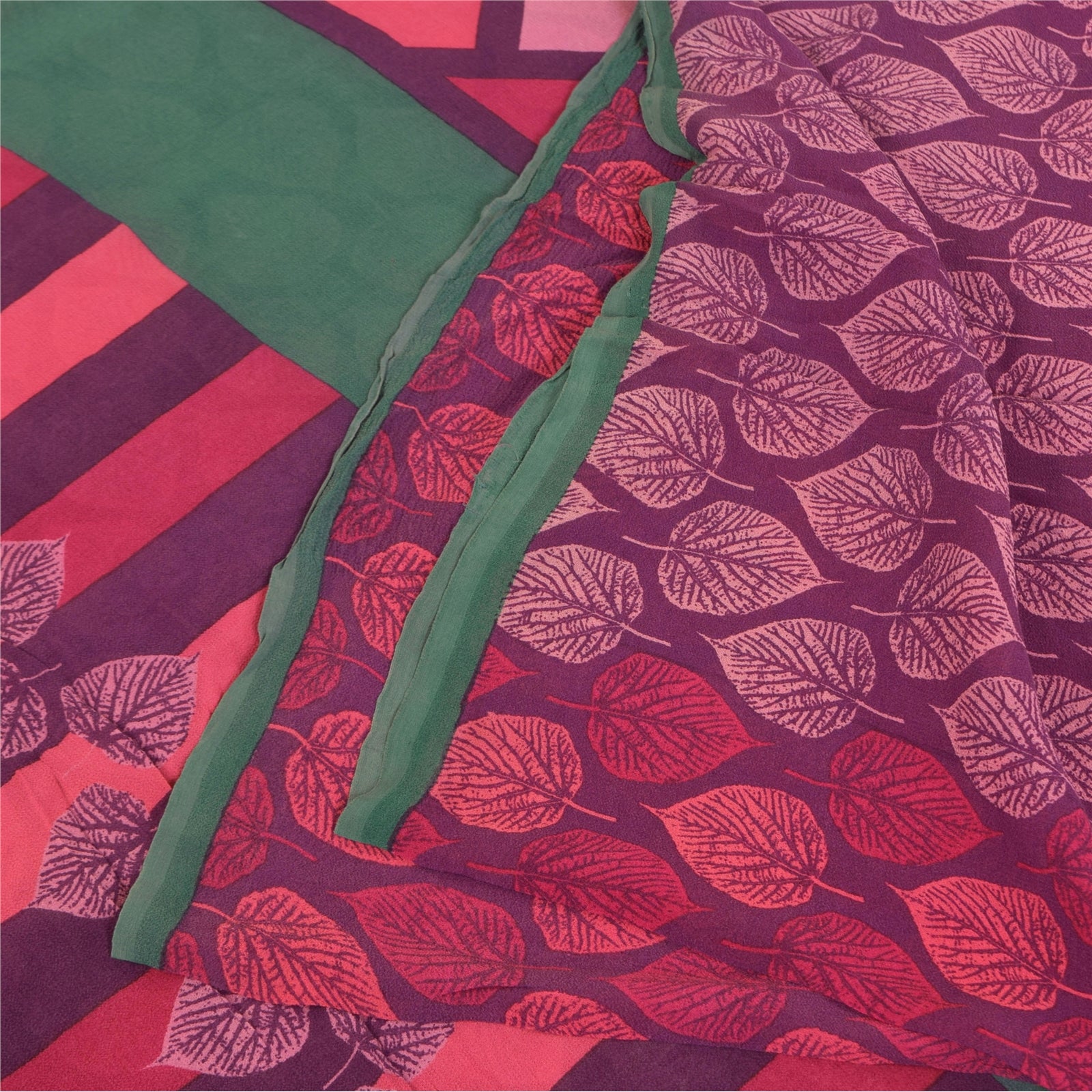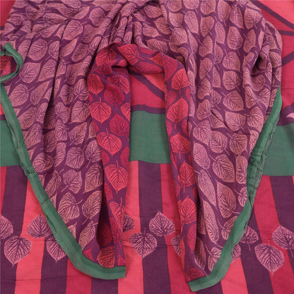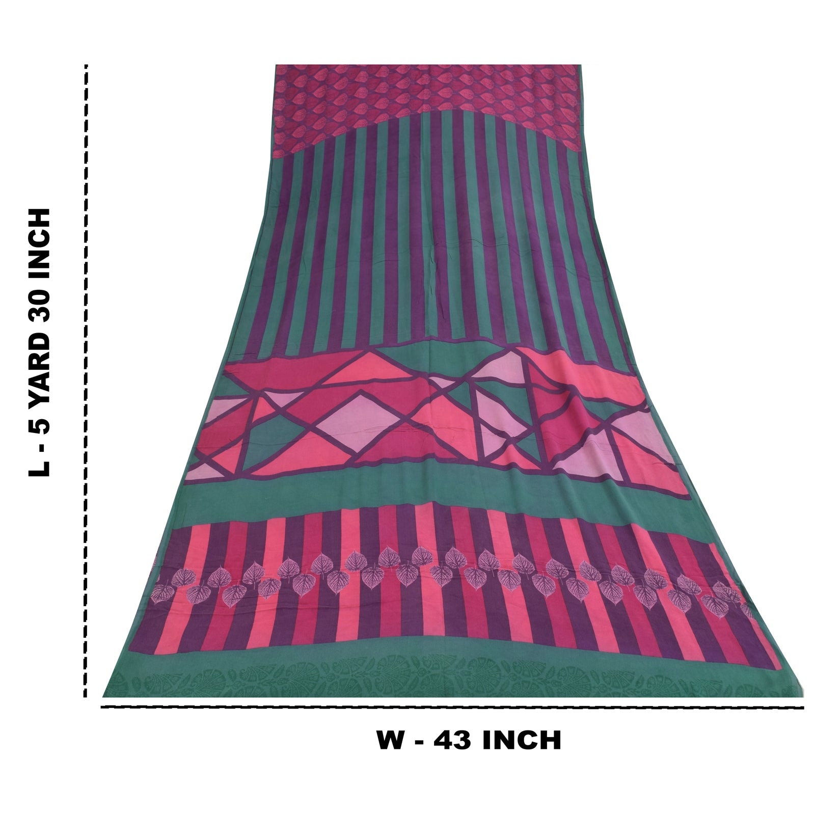 Sanskriti Vintage Sarees Purple Pure Georgette Silk Print Sari 5+yd Craft Sustainable Fabric