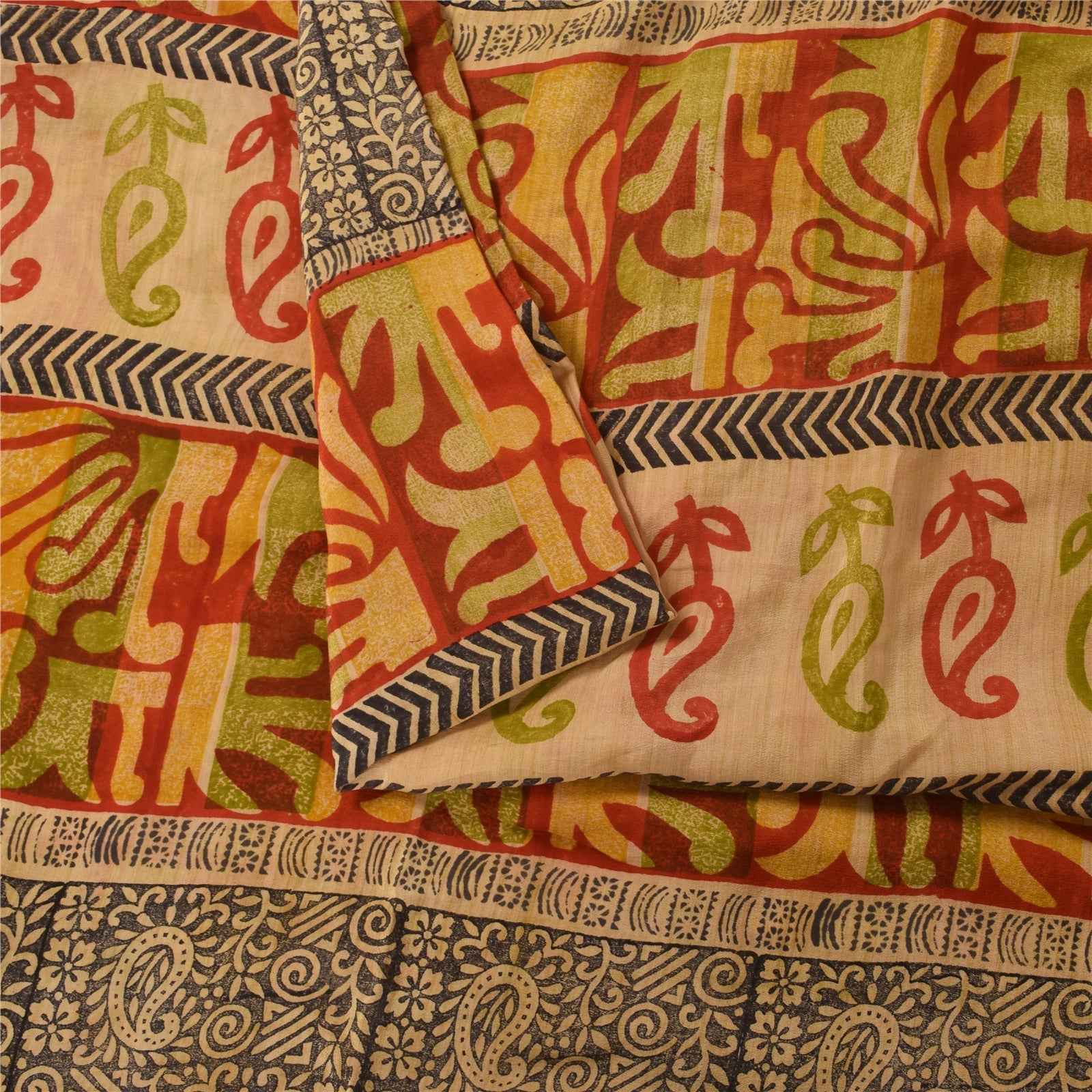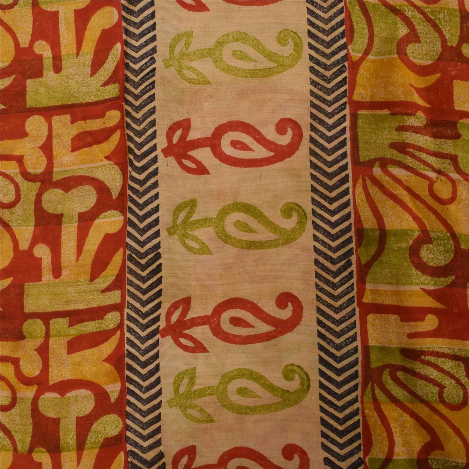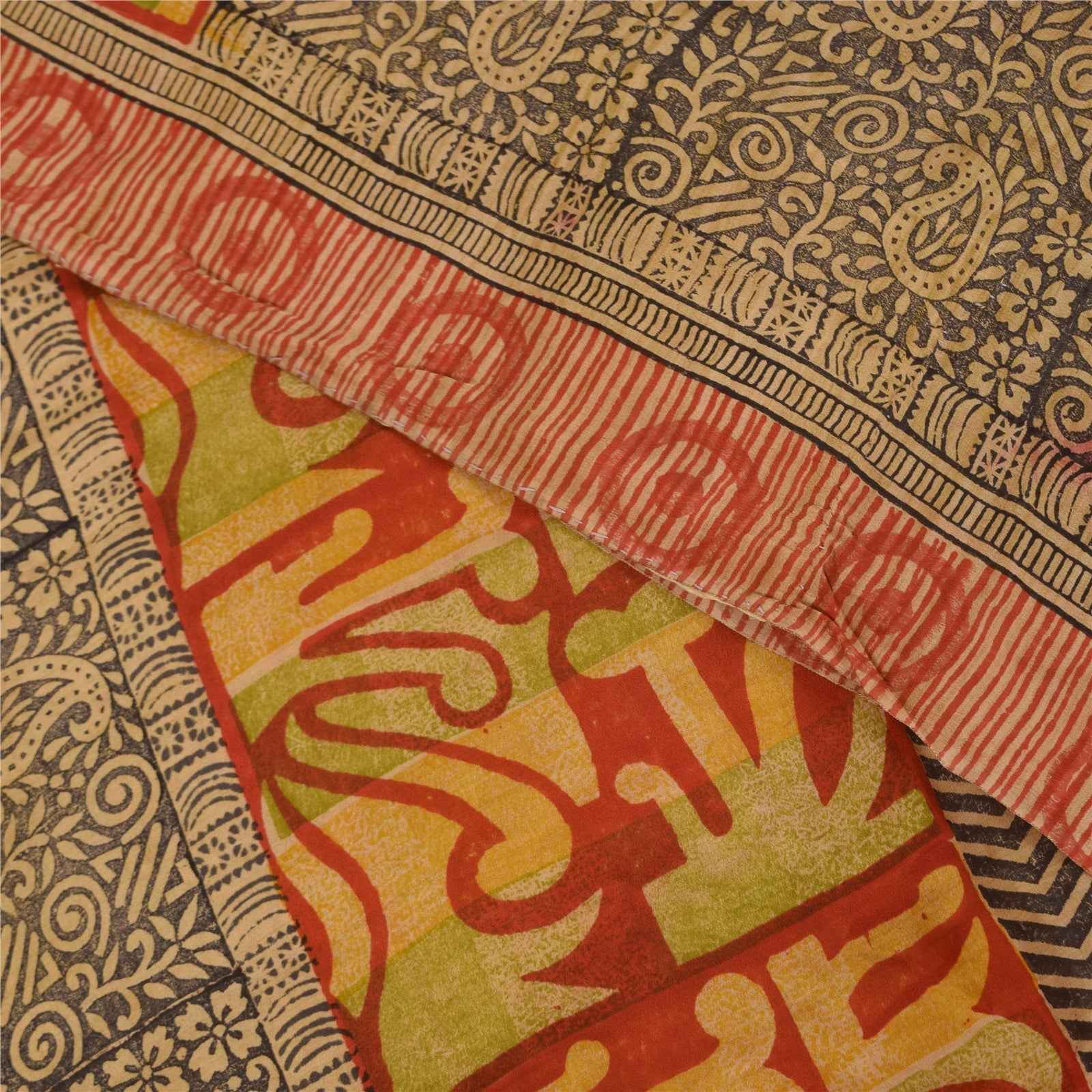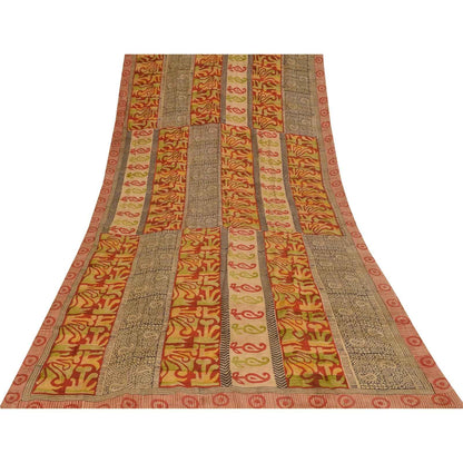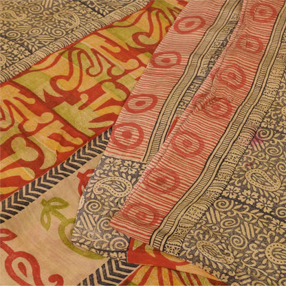 Sanskriti Vintage Sarees Red 100% Pure Crepe Silk Printed Sari 5+yd Craft Sustainable Fabric